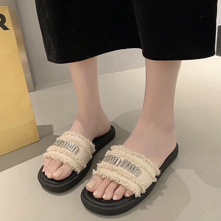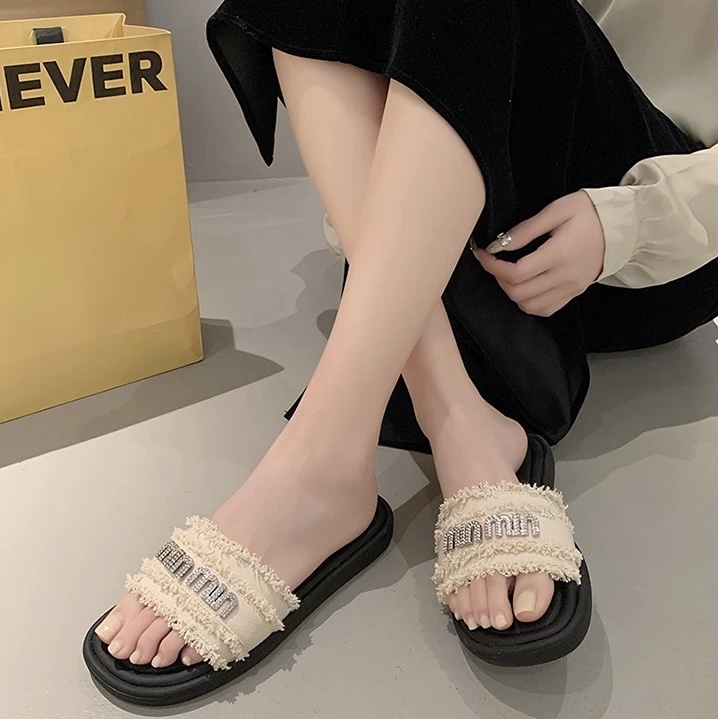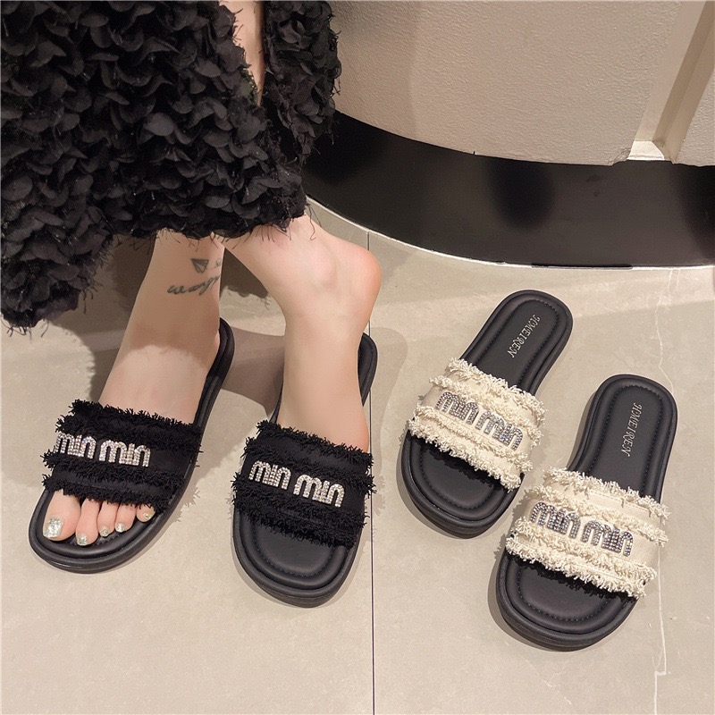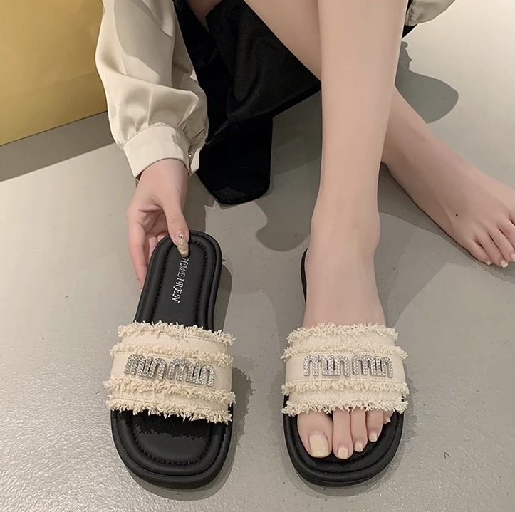 【GZ】无忧购法式小香风一字平底外穿凉拖鞋H33-3(截单后3-5天发货)