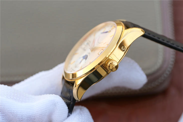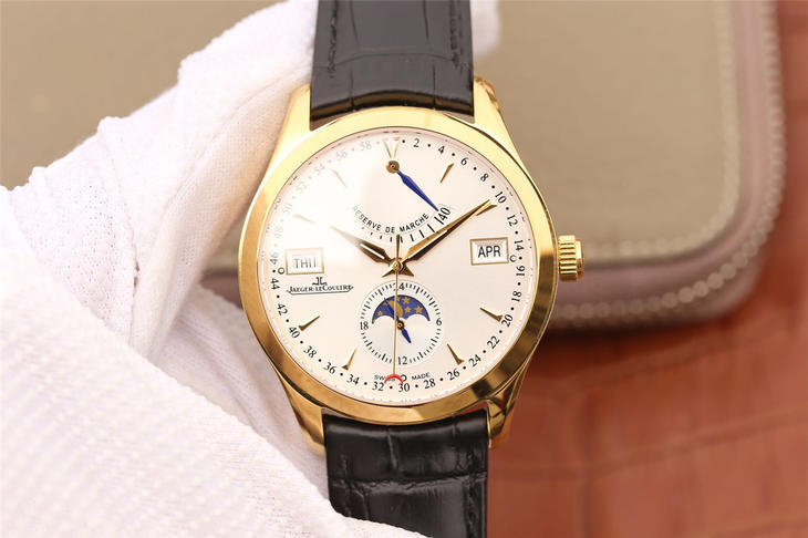 N积家大师系列Q151242A,chaoji复刻机械腕表。 汇集动力 星期 月份 月相 功能同正品一致 超薄表径41×11mm 双卜蓝宝石镜面 原装折叠扣 意大利进口牛皮 搭载进口9100改cal.924(机芯稳定零返修 振频28800 绝非市场廉价国产机芯加夹板 )壳套比例1:1原版复刻 历时数月钻研不断调试改进 力求完美呈现 ,越欣赏 越懂欣赏。