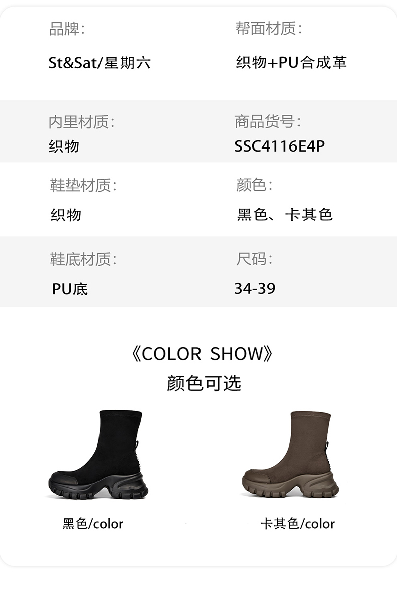 星期六通勤百搭拼接增高厚底瘦瘦靴SSC4116E4P