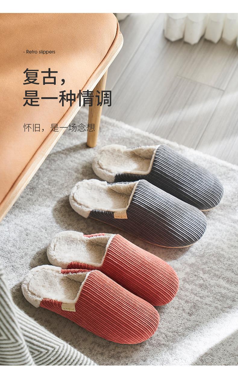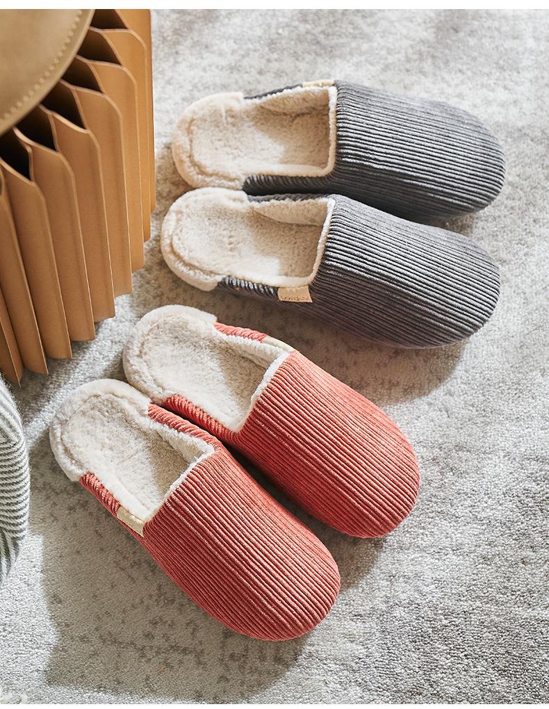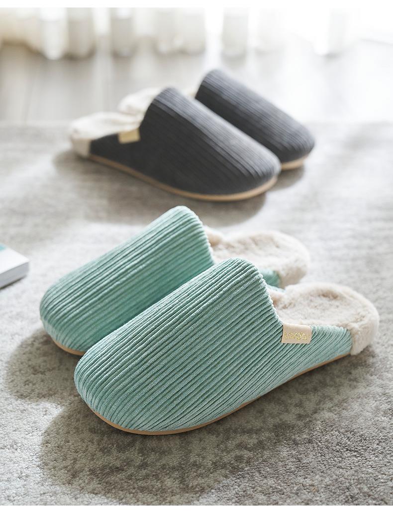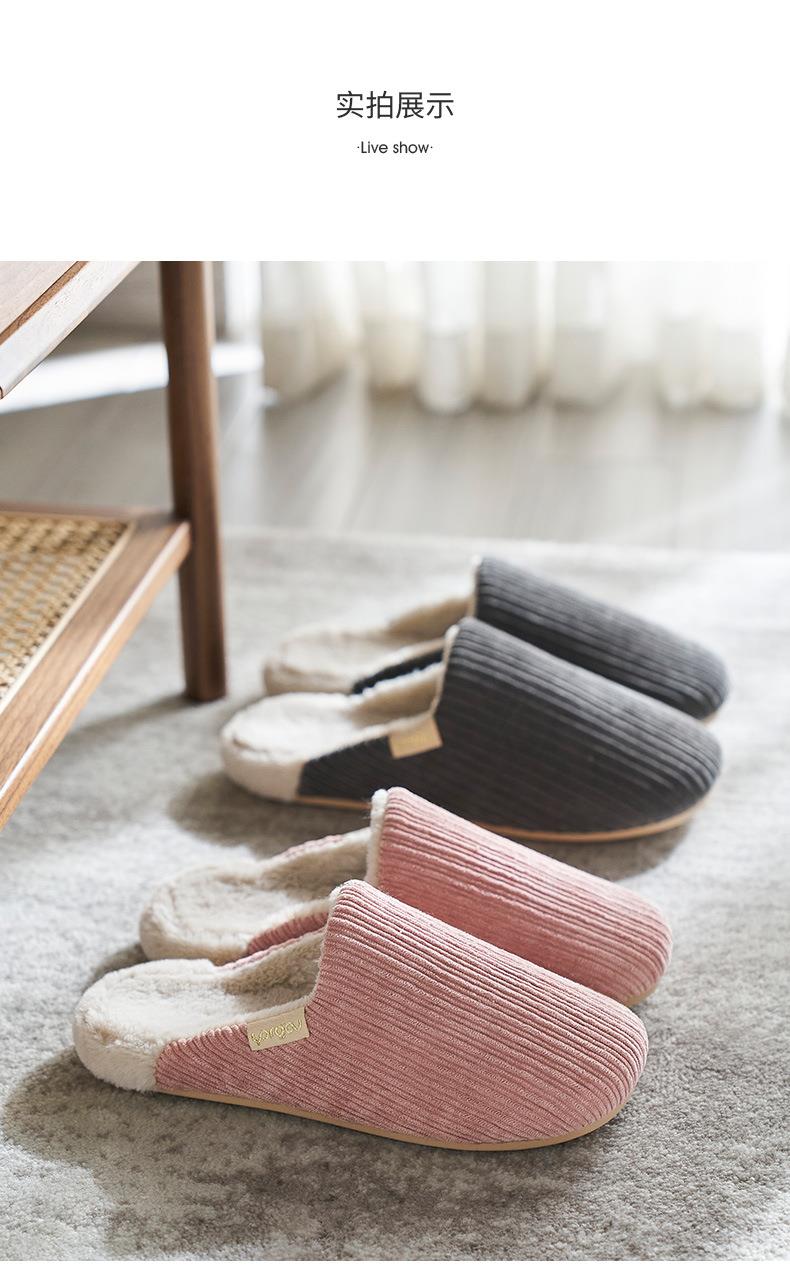 远港灯芯绒棉拖鞋家用保暖室内防滑情侣居家厚底毛绒拖鞋冬天批发