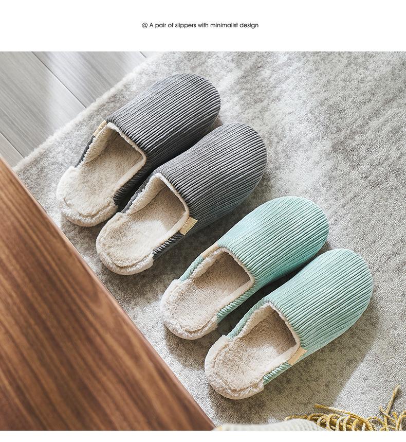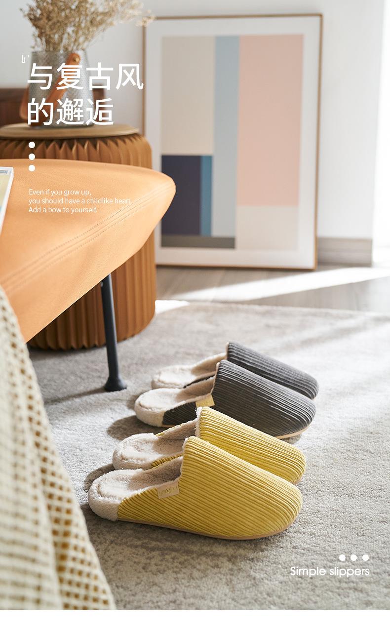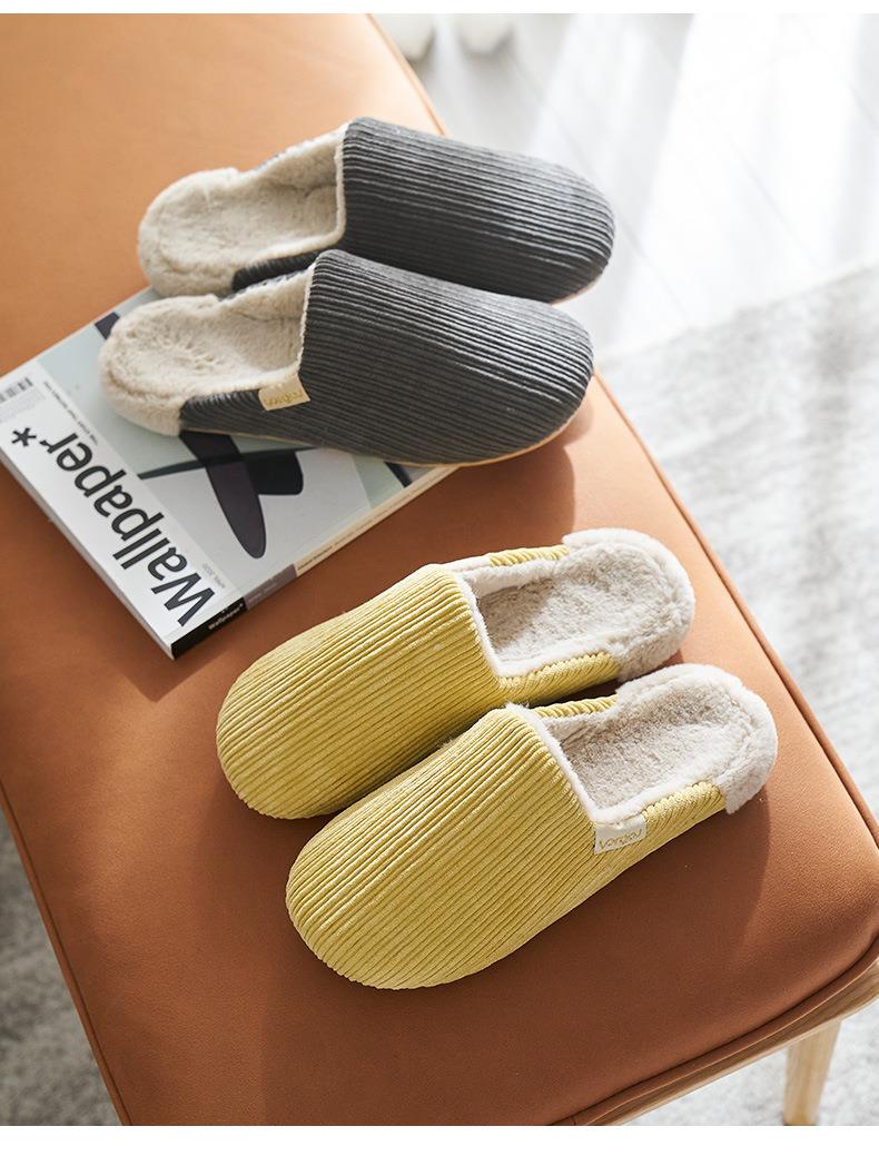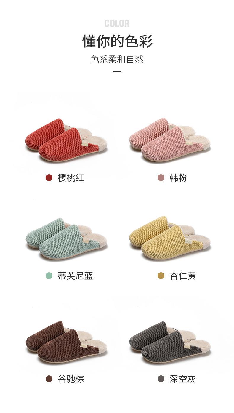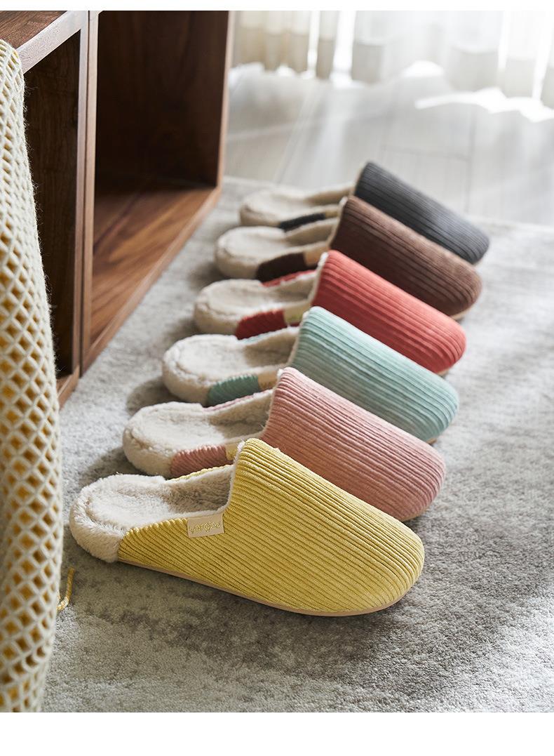 远港灯芯绒棉拖鞋家用保暖室内防滑情侣居家厚底毛绒拖鞋冬天批发