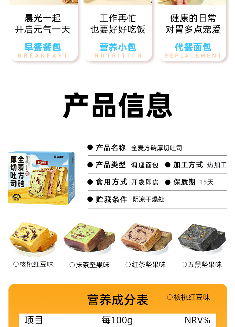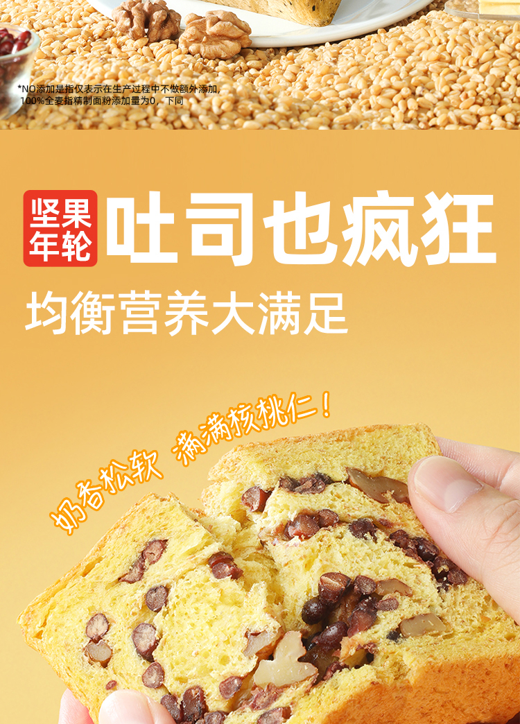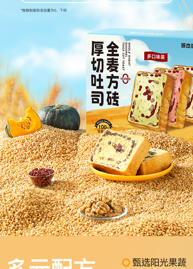 哥本优选™全麦方砖厚切吐司(五黑坚果、多口味)【不可用券】