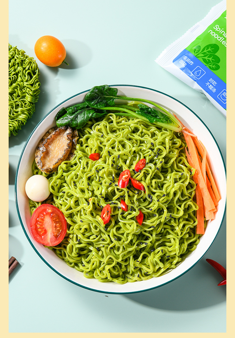 【肪波菜面,代餐的健康理想主食】粤聚德非油炸菠菜方便面,韧性Q弹不糊汤顺滑有嚼劲,蔬菜面整箱面条食堂早餐速食挂面代餐主食QQ