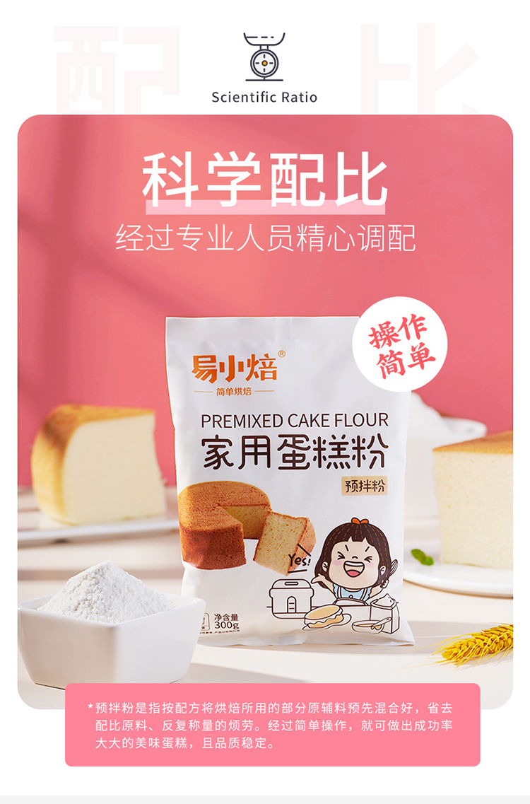 易小焙家用蛋糕粉300g电饭煲免打发自制低筋小麦粉烘焙蛋糕预拌粉