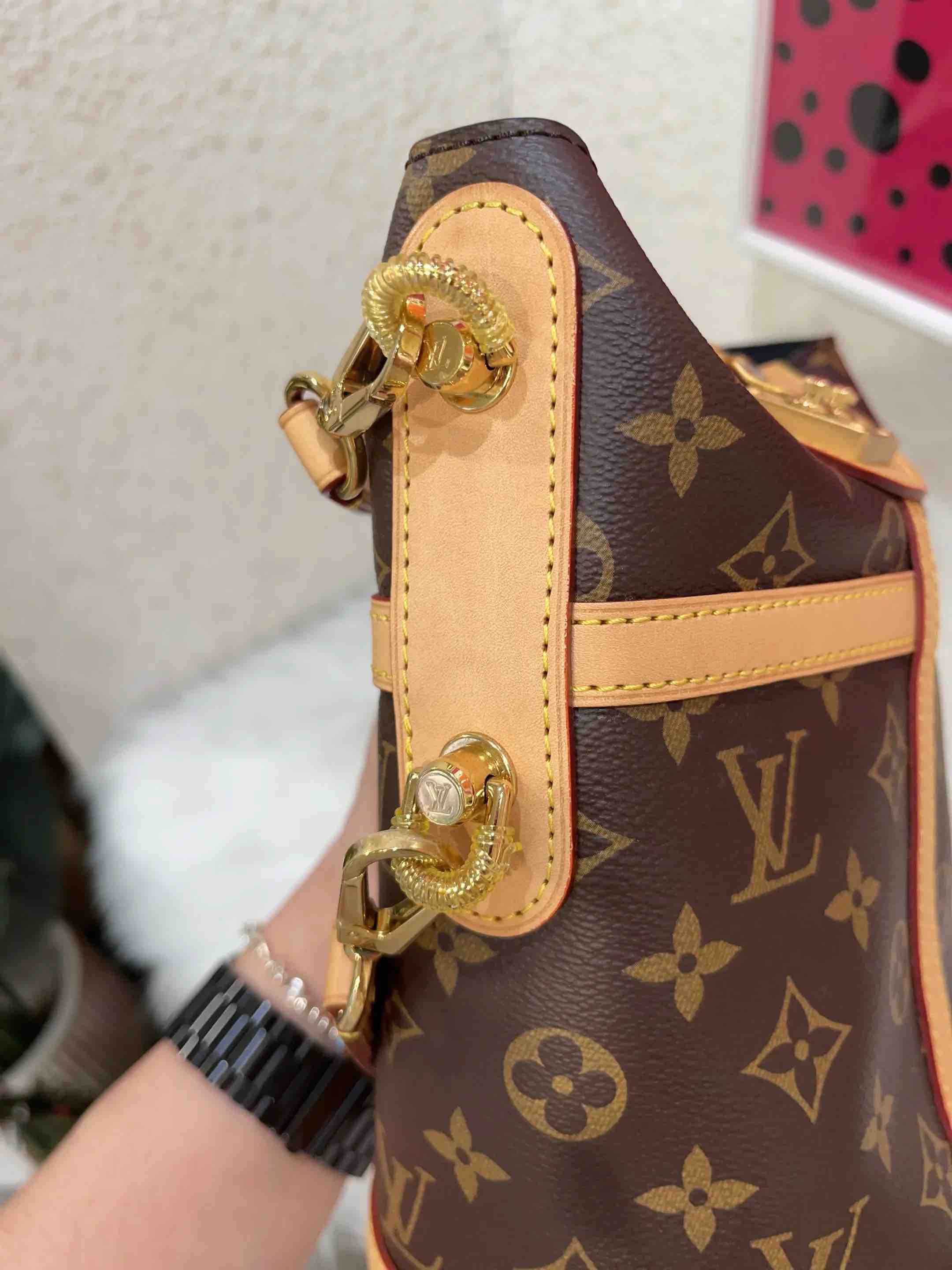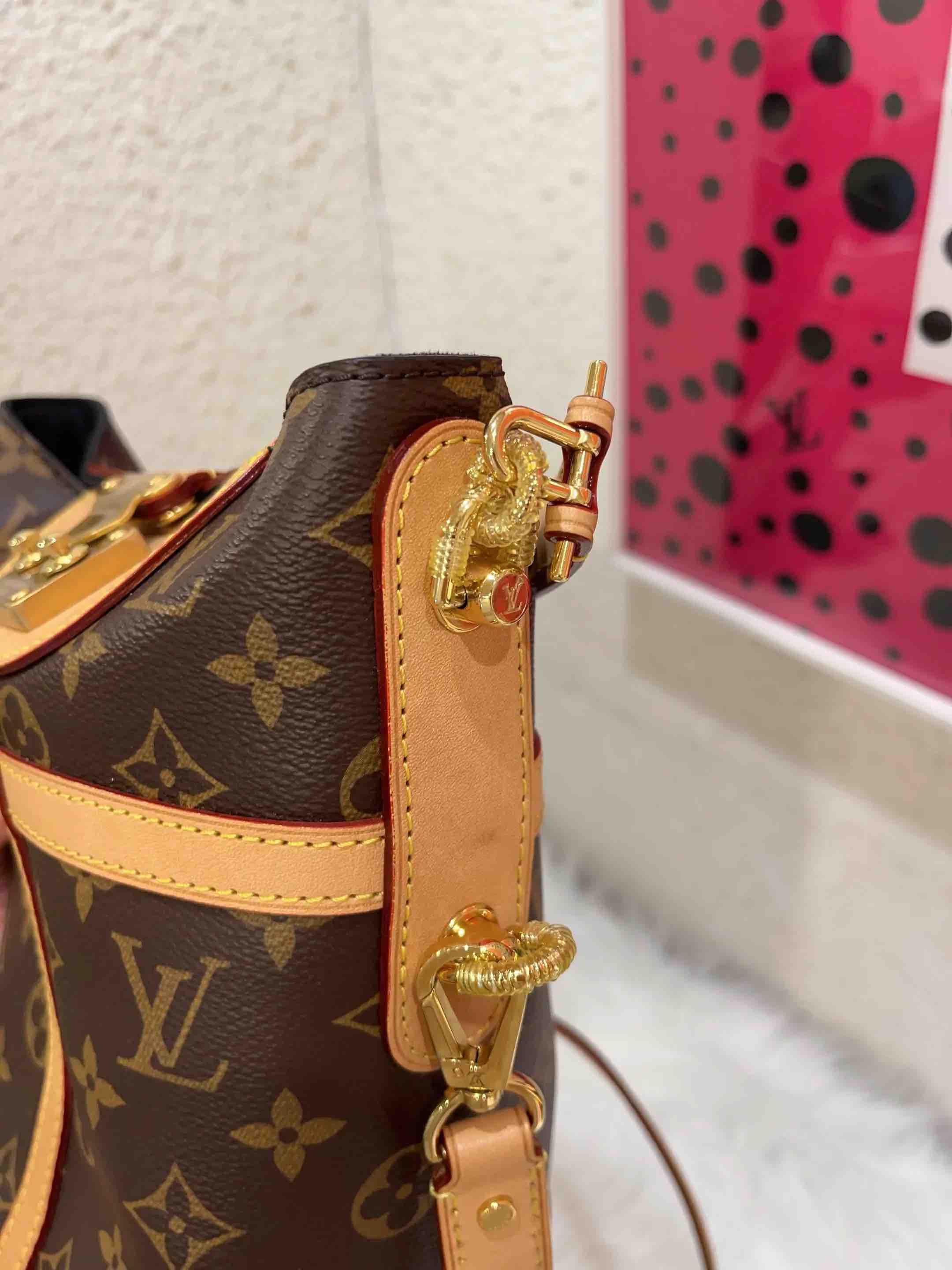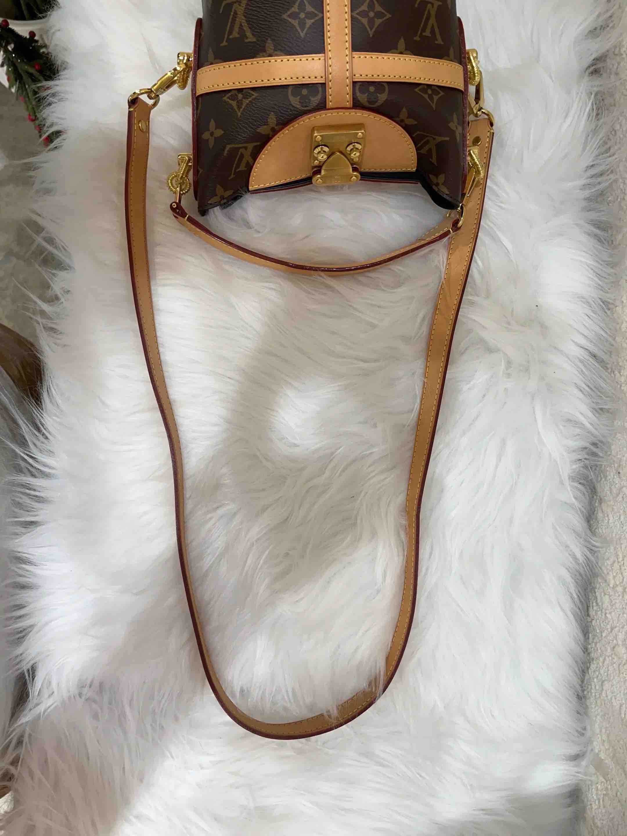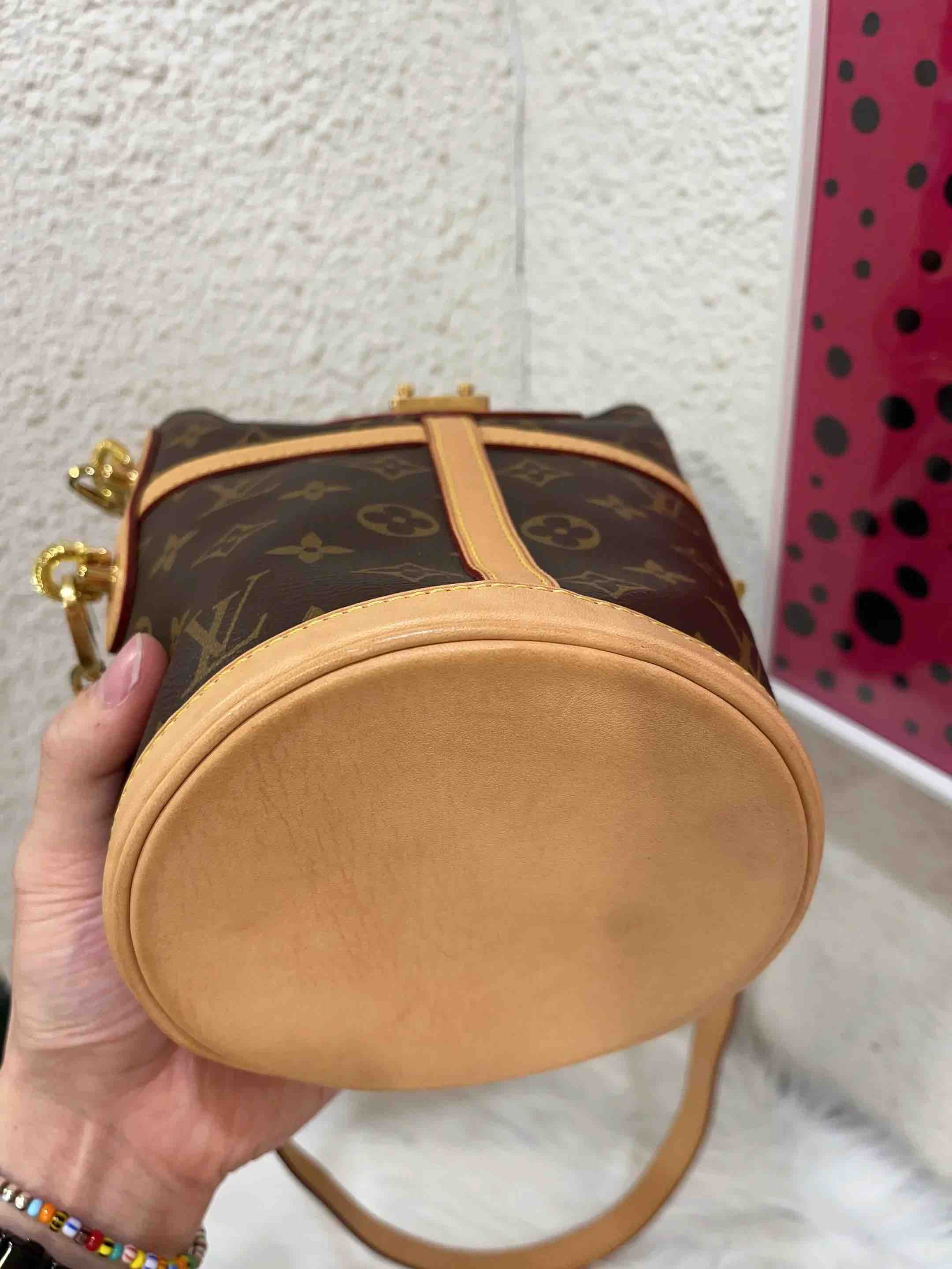 【商品详情】正品二手 LV Duffle 老花 大号 手提 薯条包🍟95新 22×14 芯片款 配件:手提柄 肩带 防尘袋 盒子。植鞣革正常使用感。大号薯条巨能装 好看蜜色