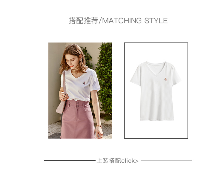 OLrain欧芮儿红色设计感V领T恤女夏季2025年新款修身显瘦套头上衣