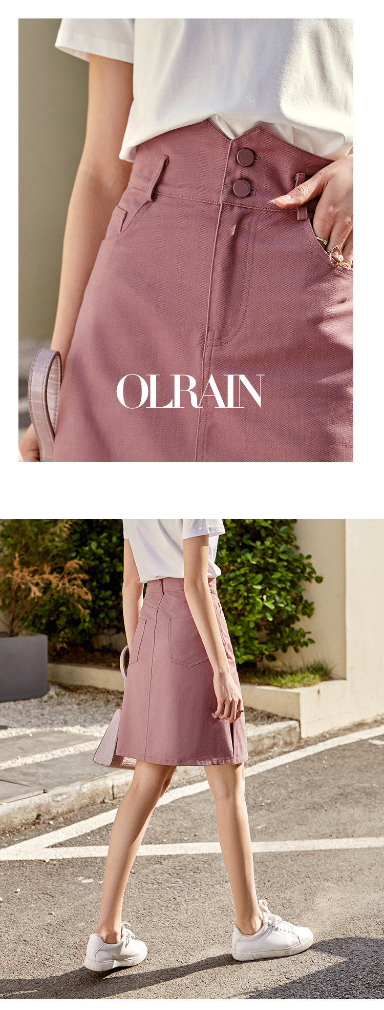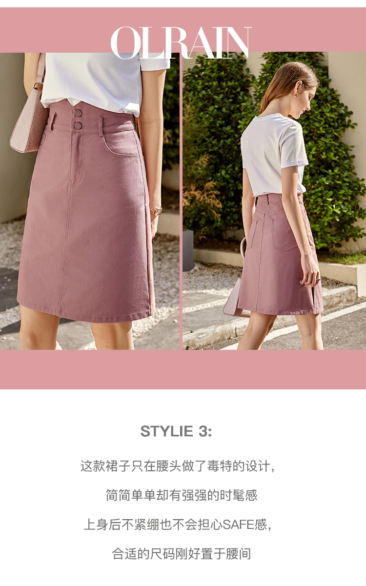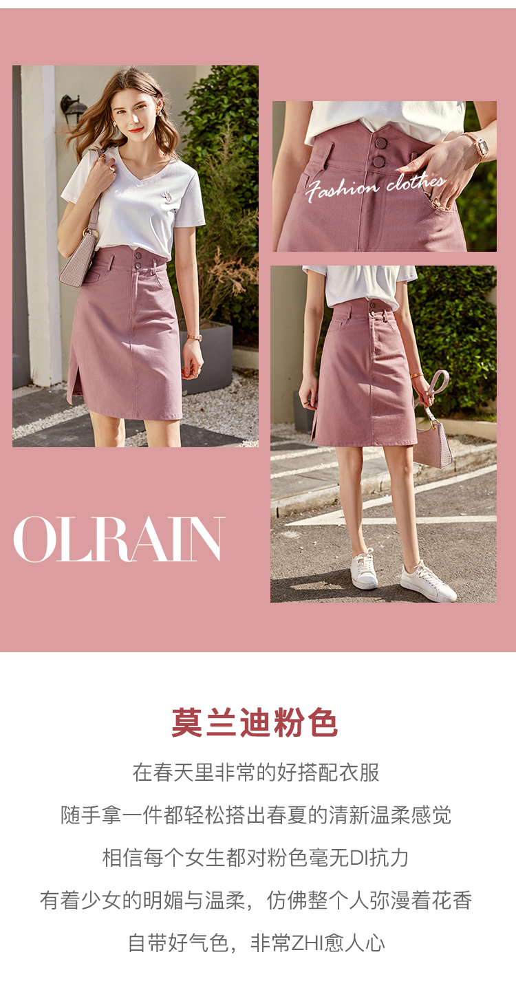欧芮儿牛仔半身裙2021春夏新款高腰显瘦时尚减龄开衩小个子A字裙