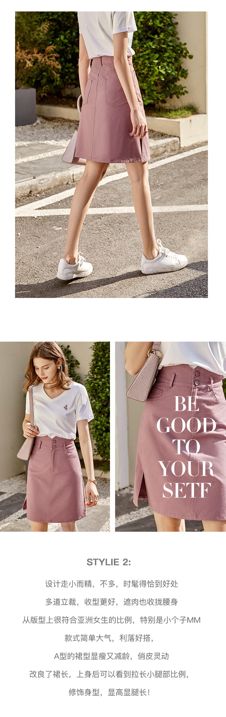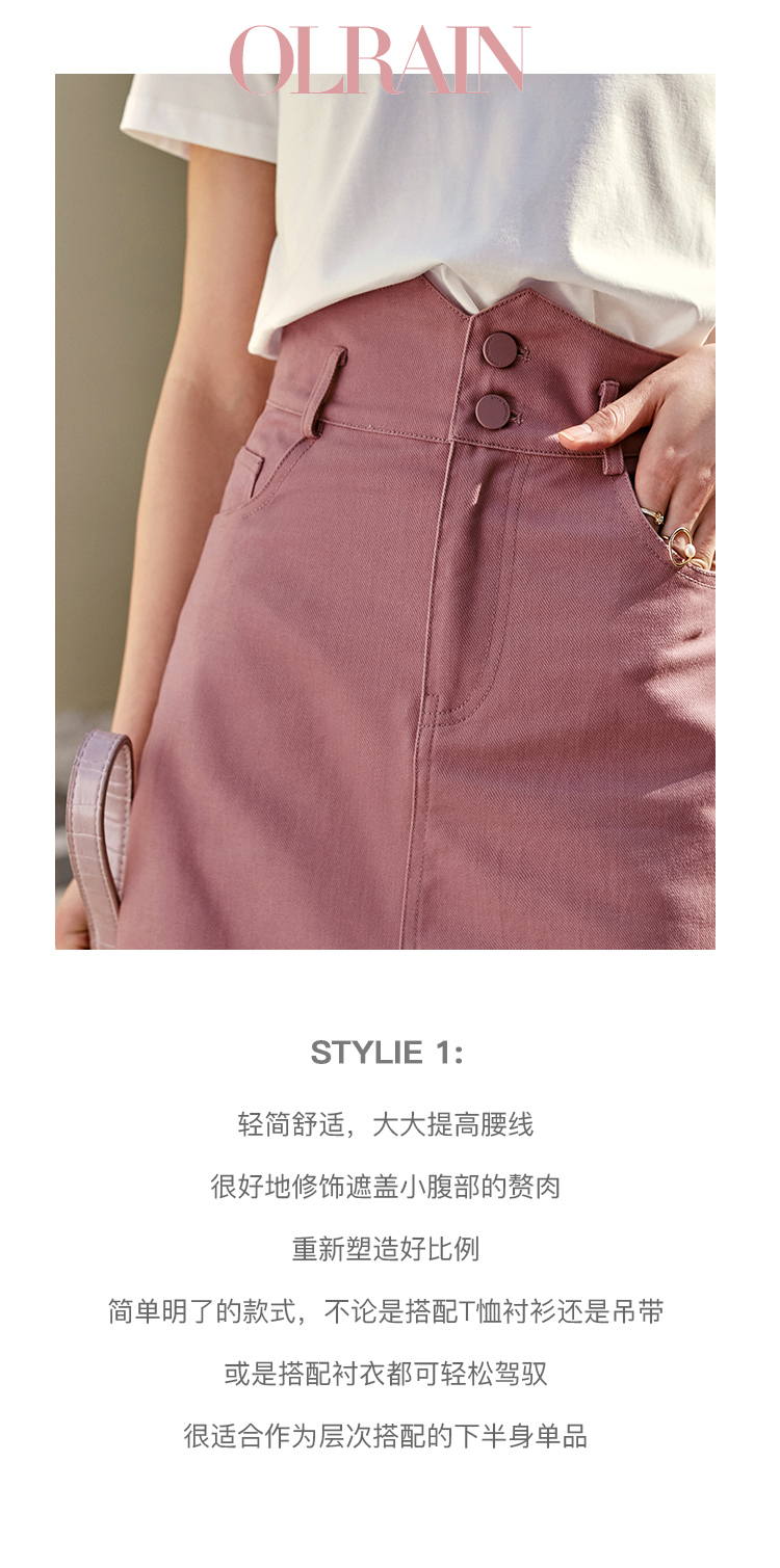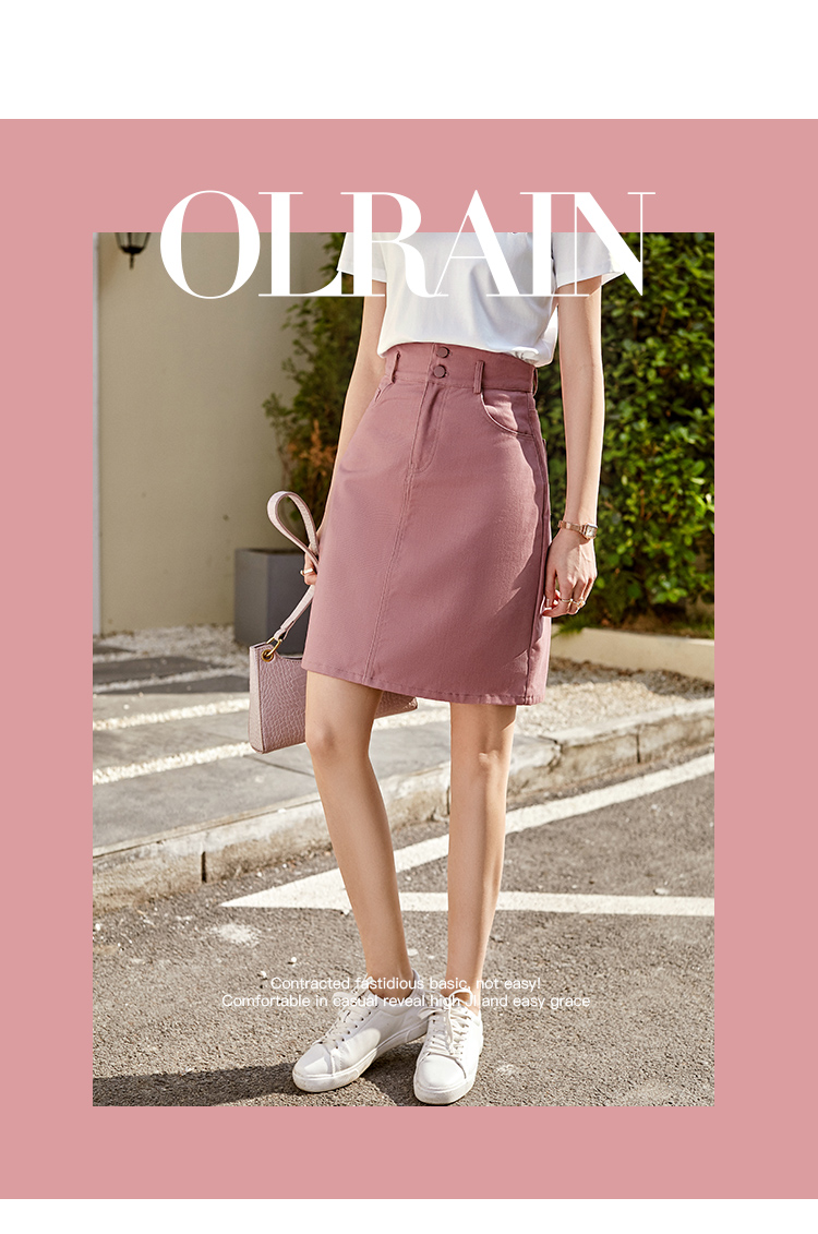 欧芮儿牛仔半身裙2021春夏新款高腰显瘦时尚减龄开衩小个子A字裙