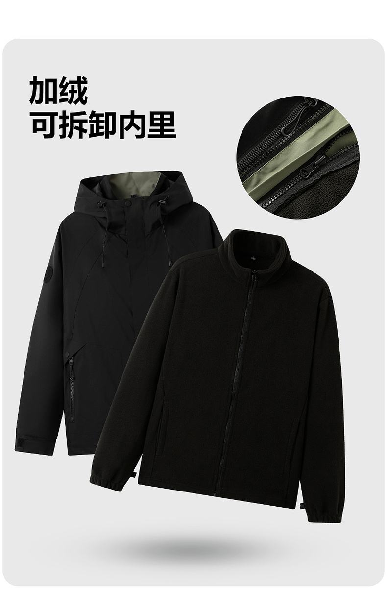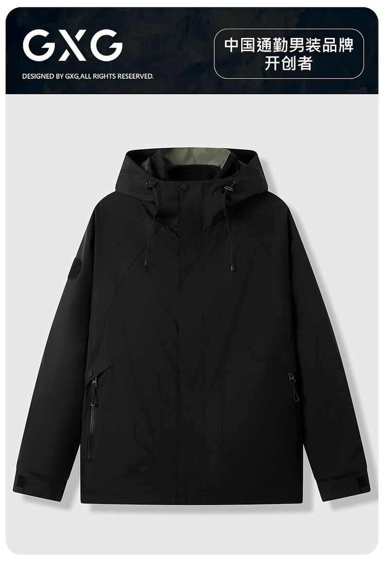 GXG男装户外山系防水防风三合一宽松休闲男式连帽夹克外套K&C