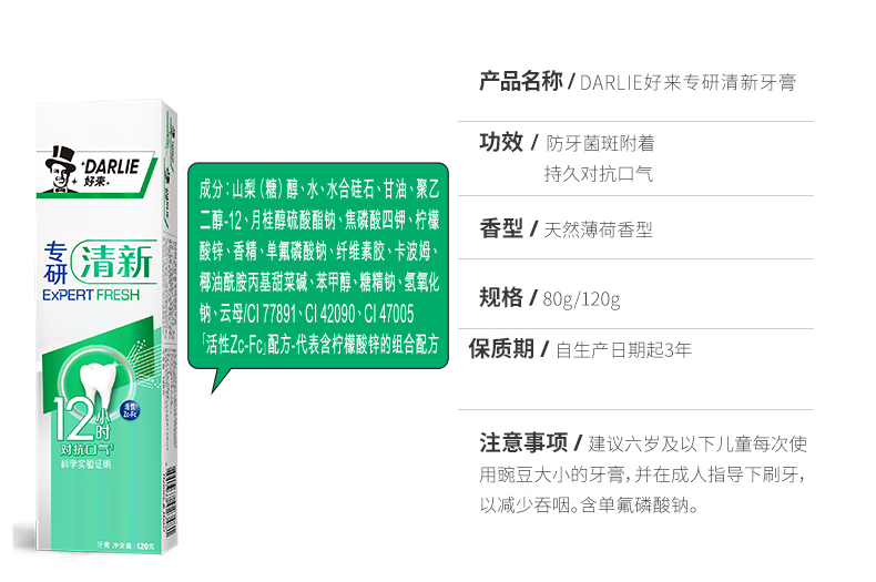 好来专研清新牙膏120g
