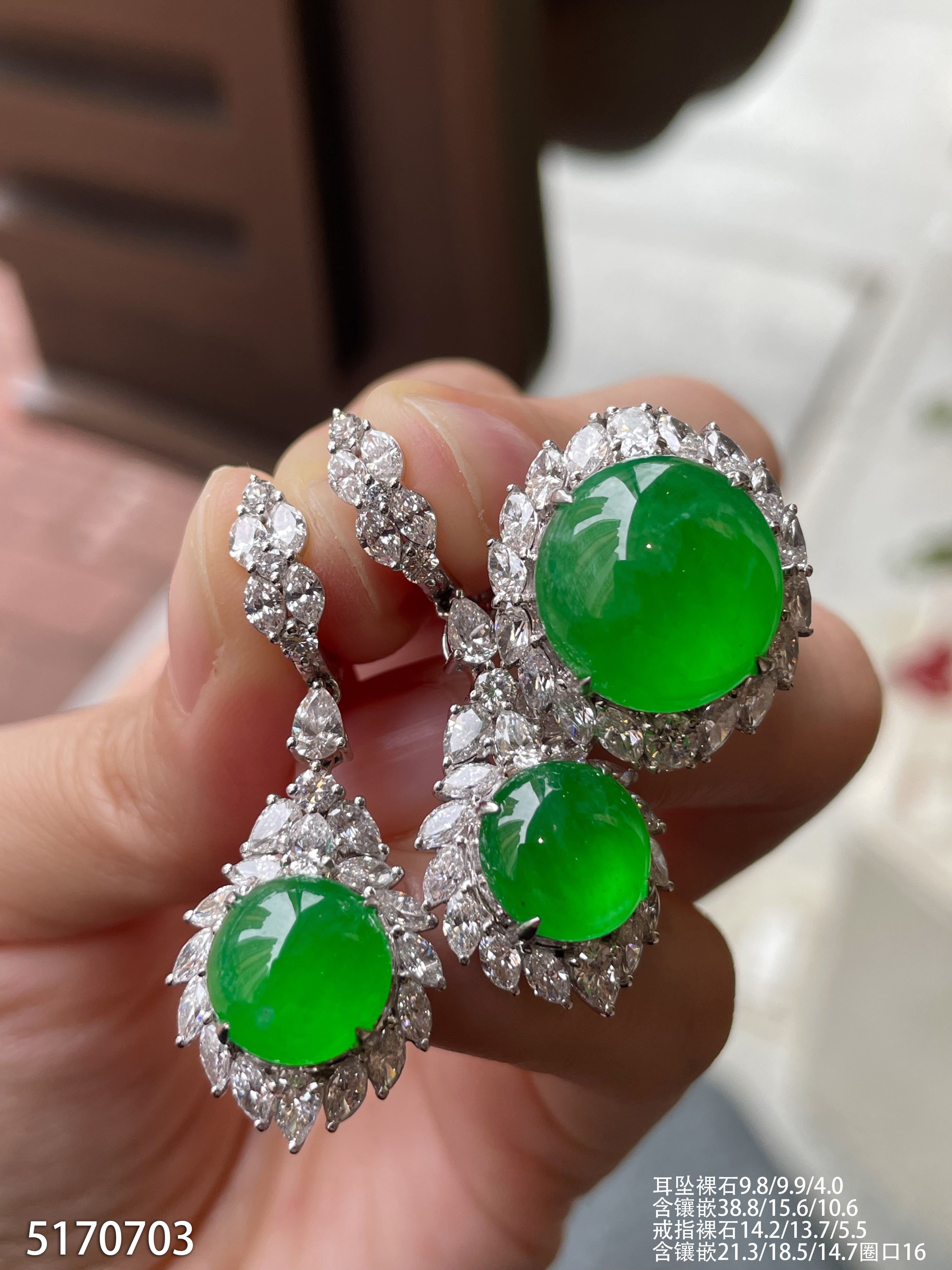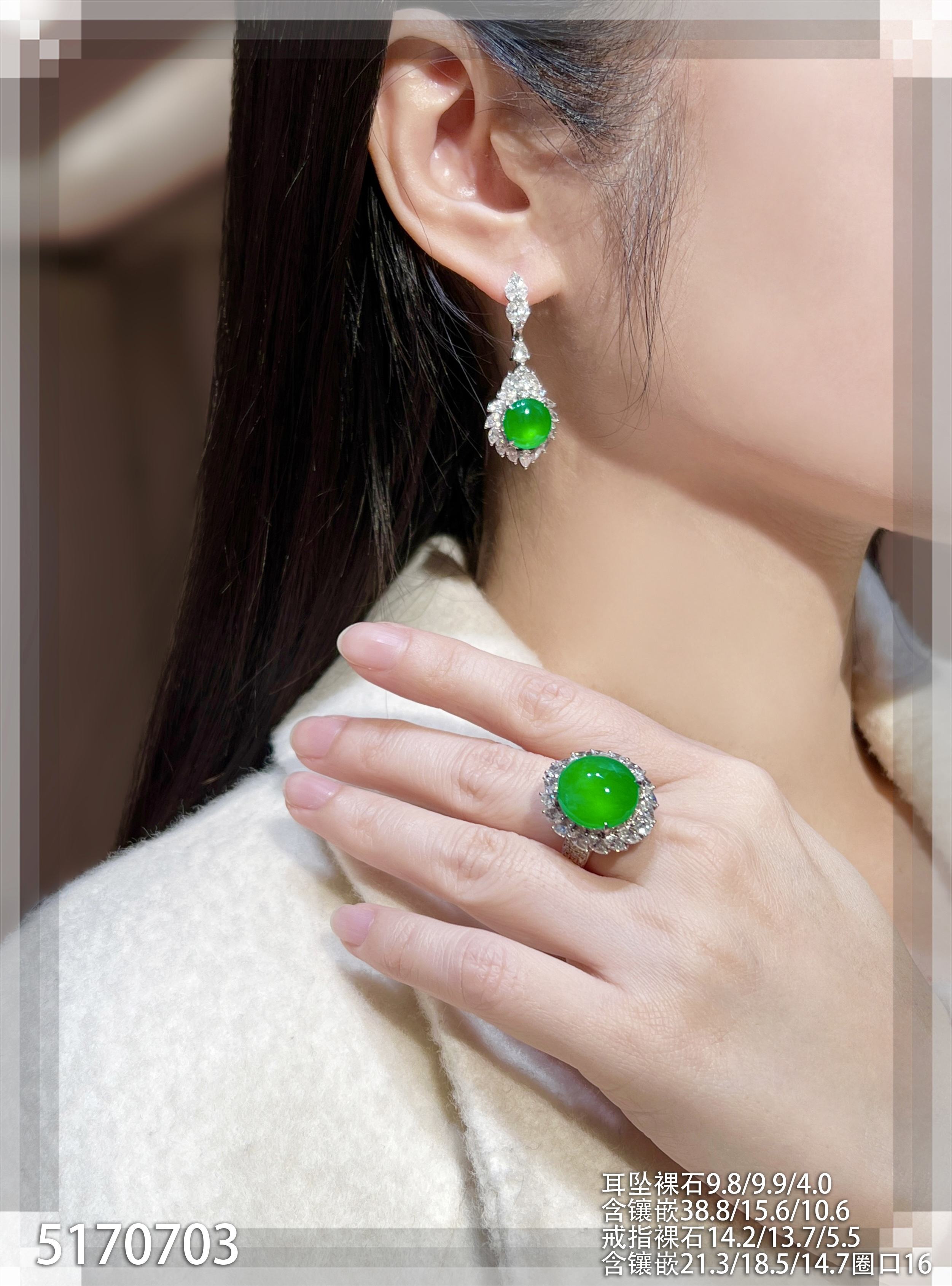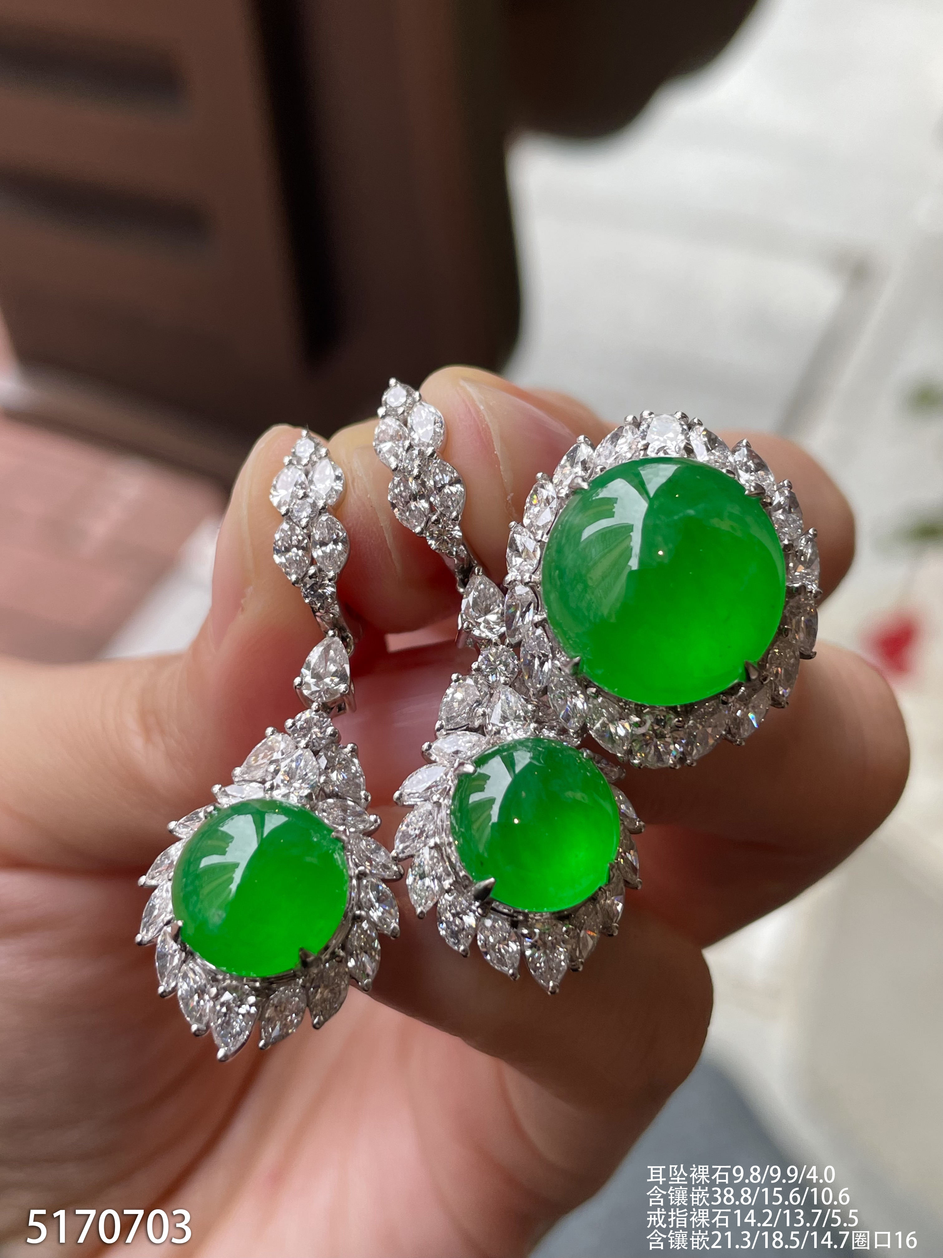 玻璃种阳艳绿蛋面套装【5170703】具体价格微信咨询
