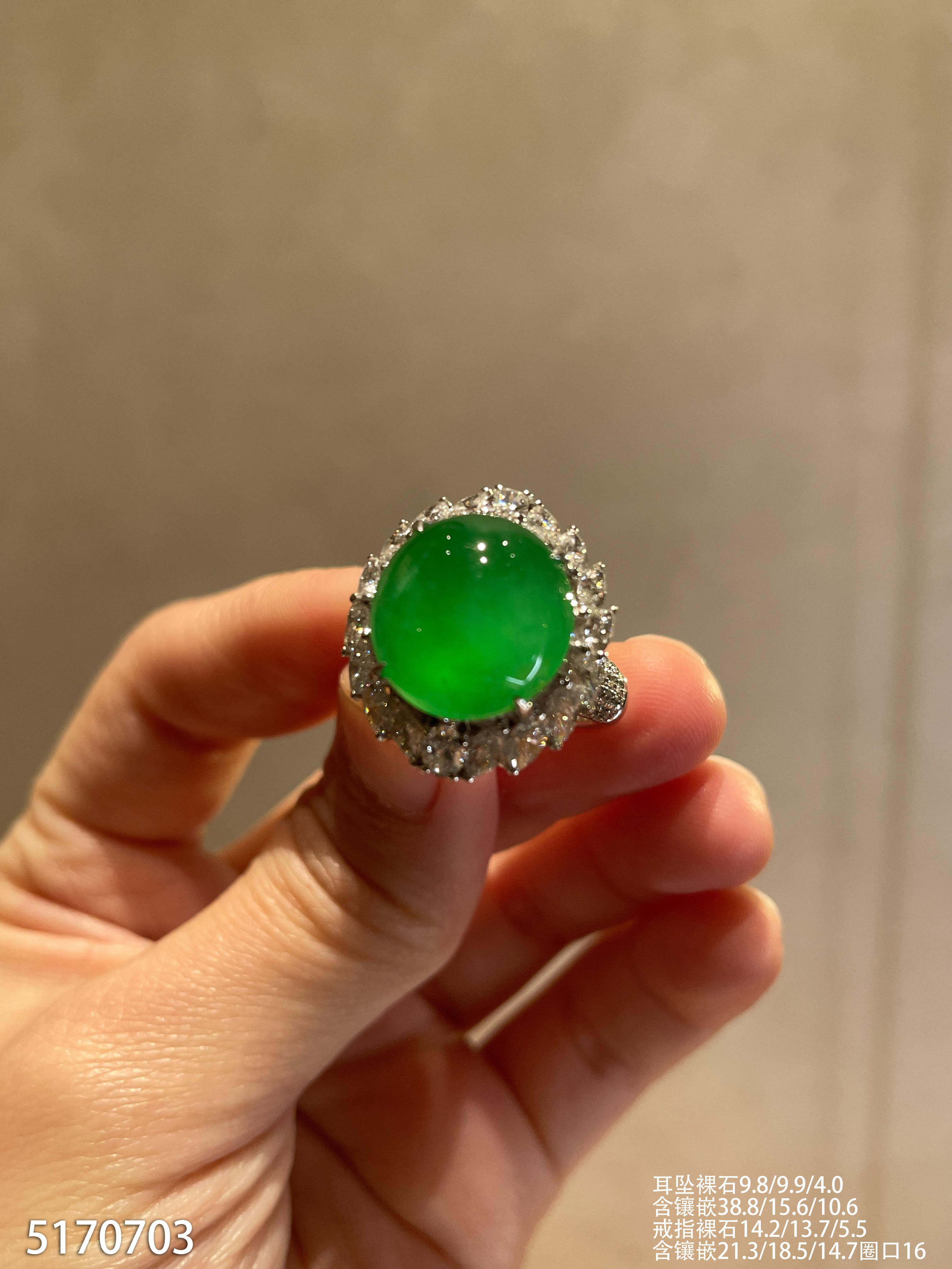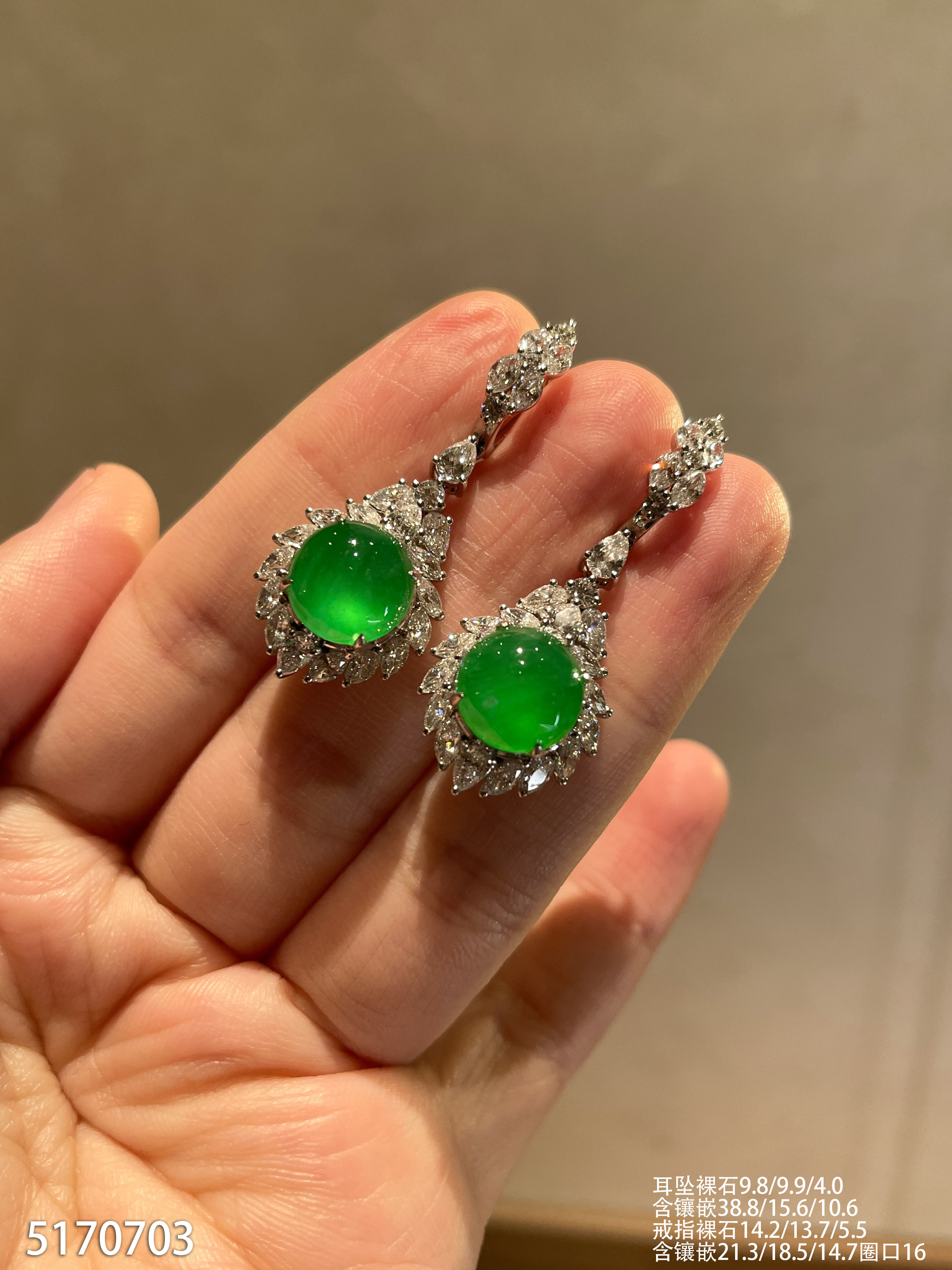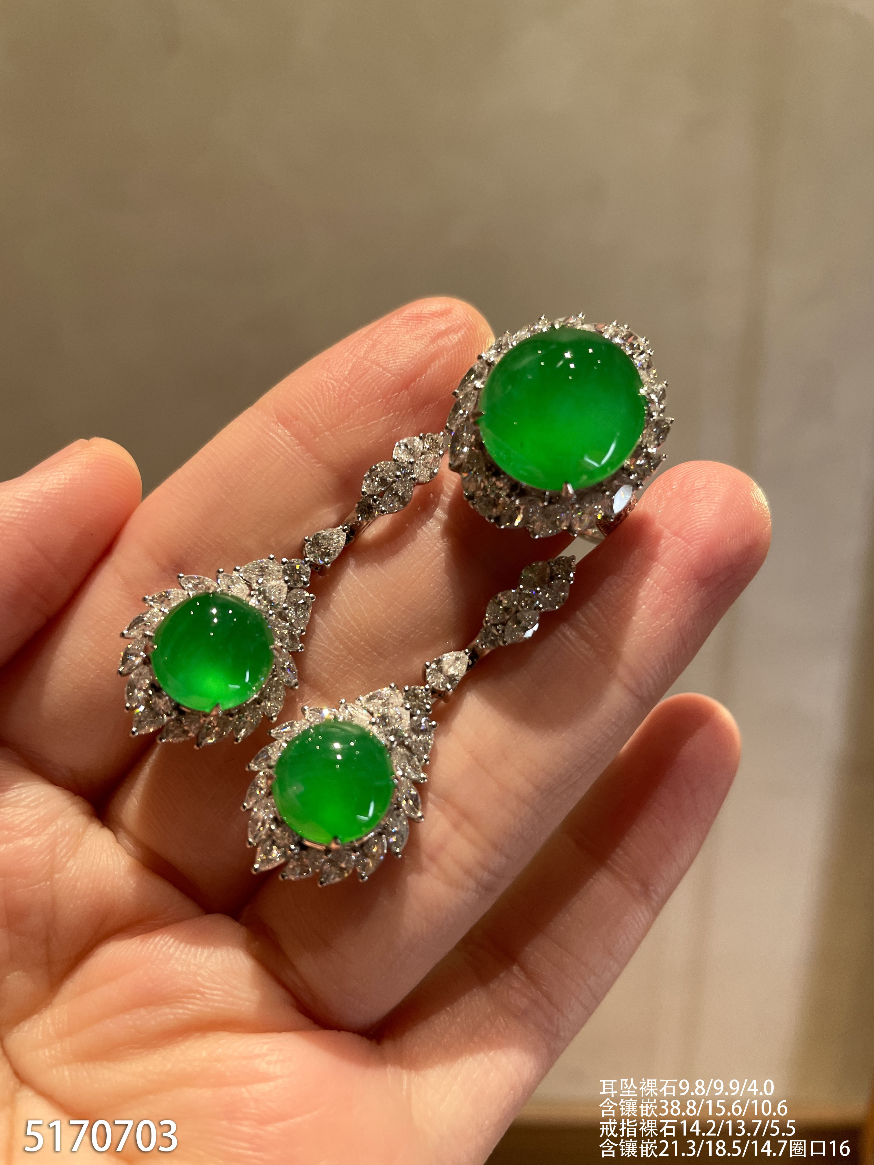 玻璃种阳艳绿蛋面套装【5170703】具体价格微信咨询