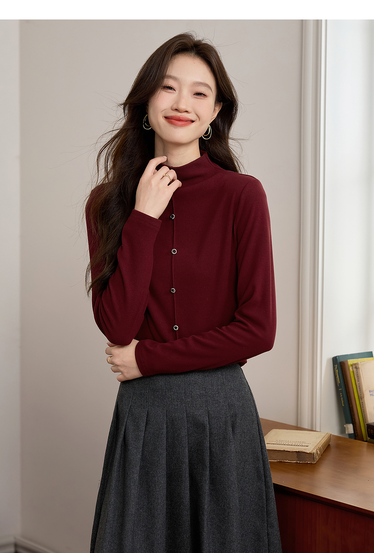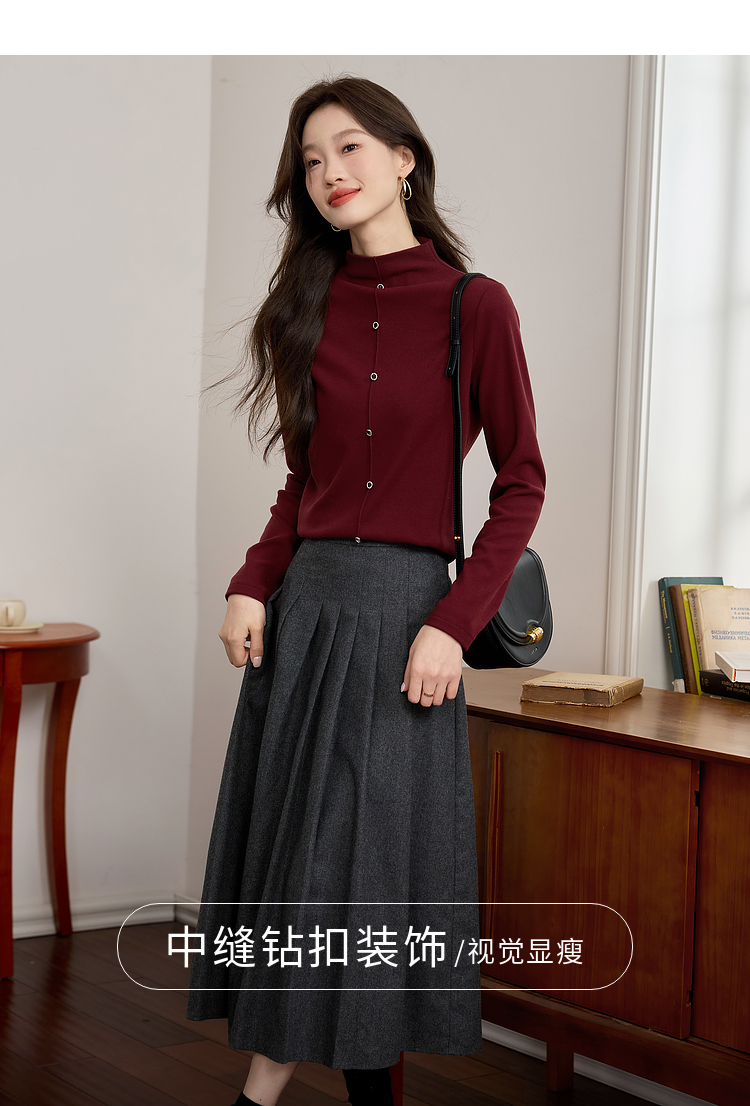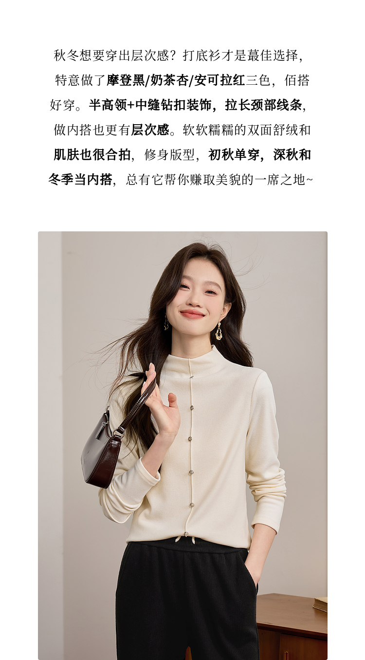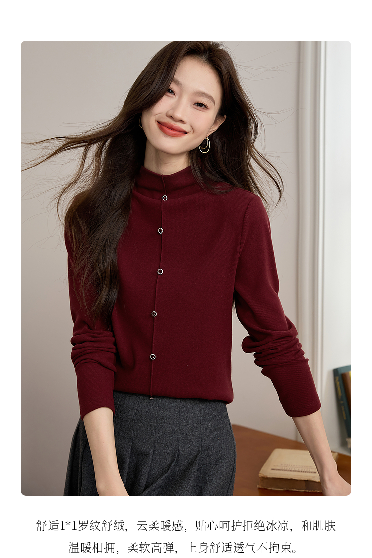 【年终特卖】熙世界安可拉红德绒半高领打底衫女2025秋冬新款内搭保暖t恤上衣