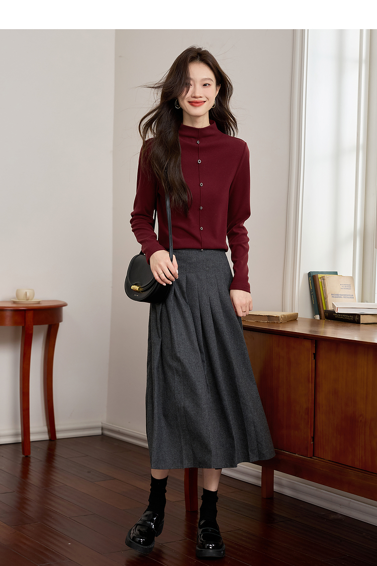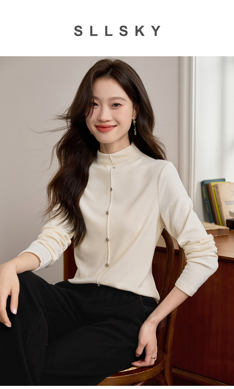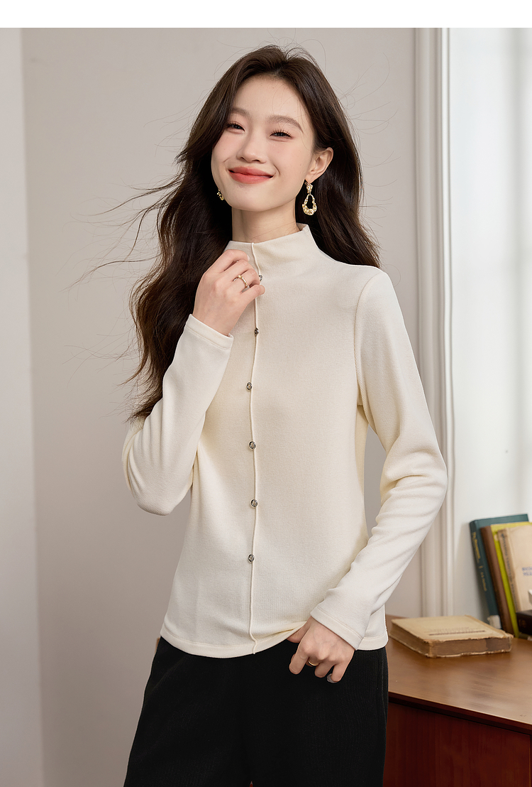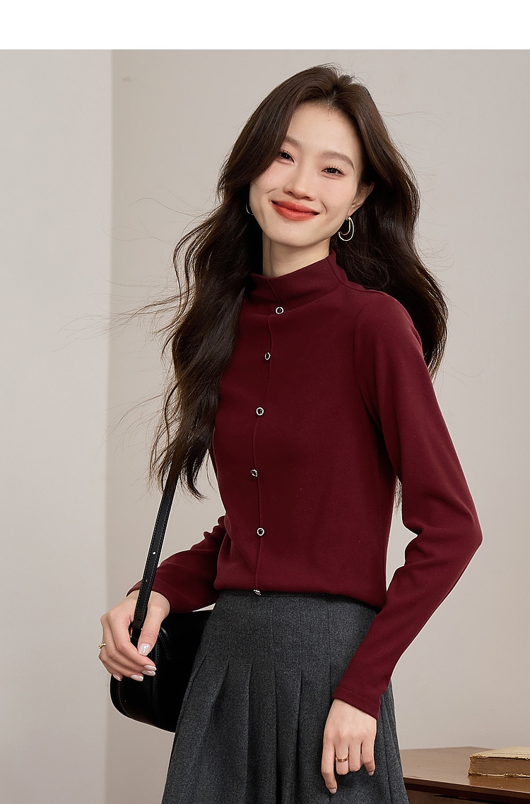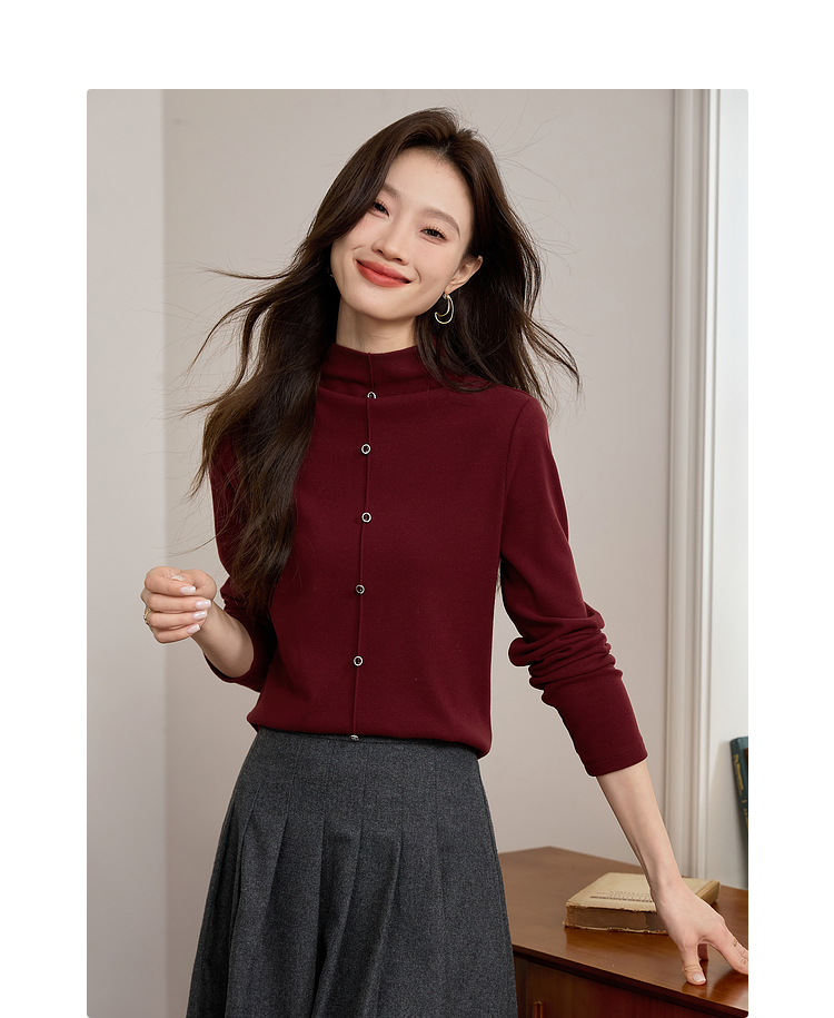 【年终特卖】熙世界安可拉红德绒半高领打底衫女2025秋冬新款内搭保暖t恤上衣