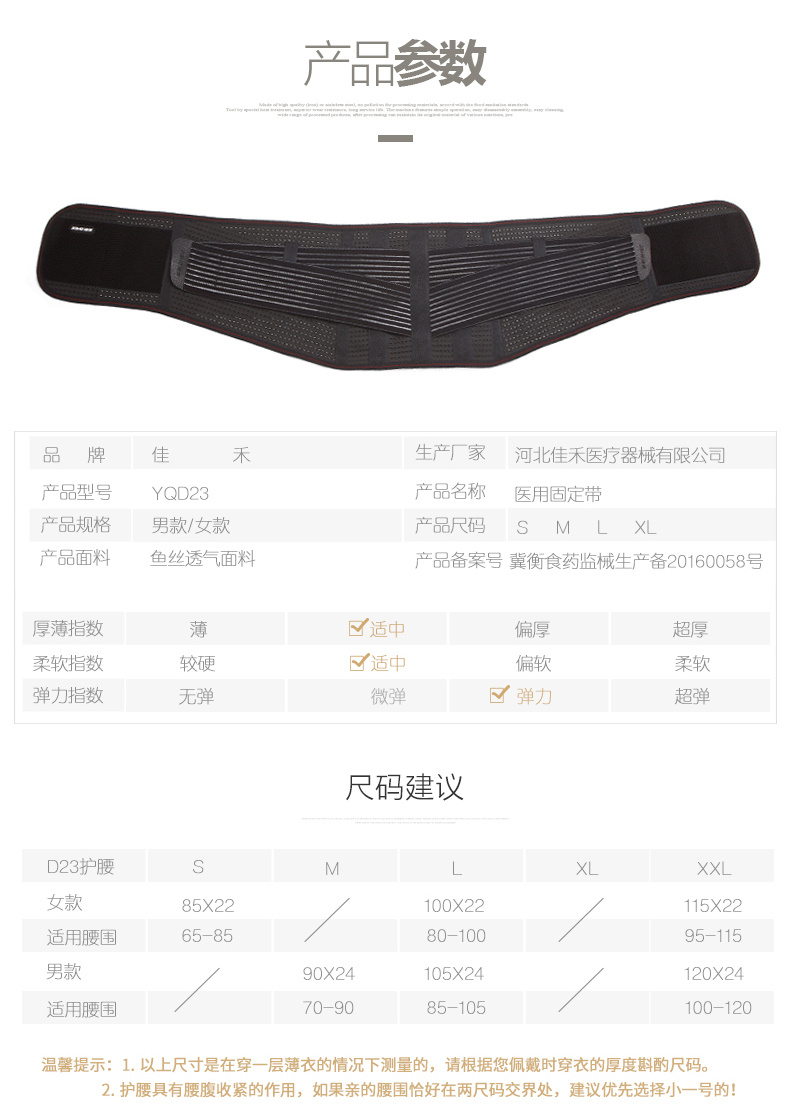 佳禾D23腰围固定带钢板四季通用(本品分男女款与M/L/XL码,下单前请备注用户性别与尺码,如无备注,本店将随机发货)