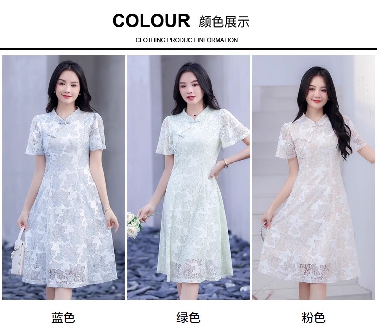 奢姿2025年夏装新款大码女装气质蕾丝旗袍连衣裙胖妹妹复古裙子9932852943