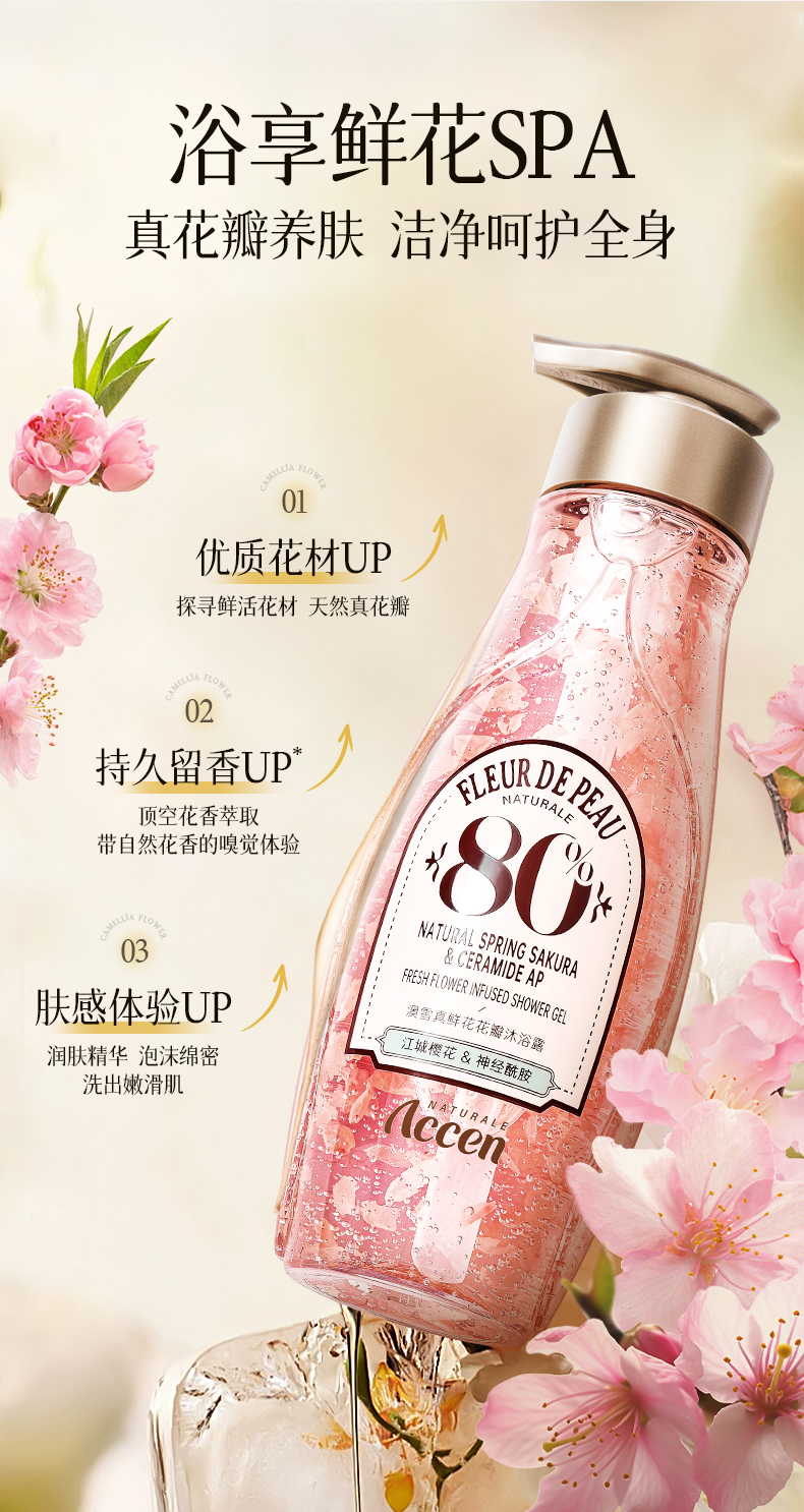 澳雪真鲜花沐浴露400ml*2(春日樱花+清野山茶花)