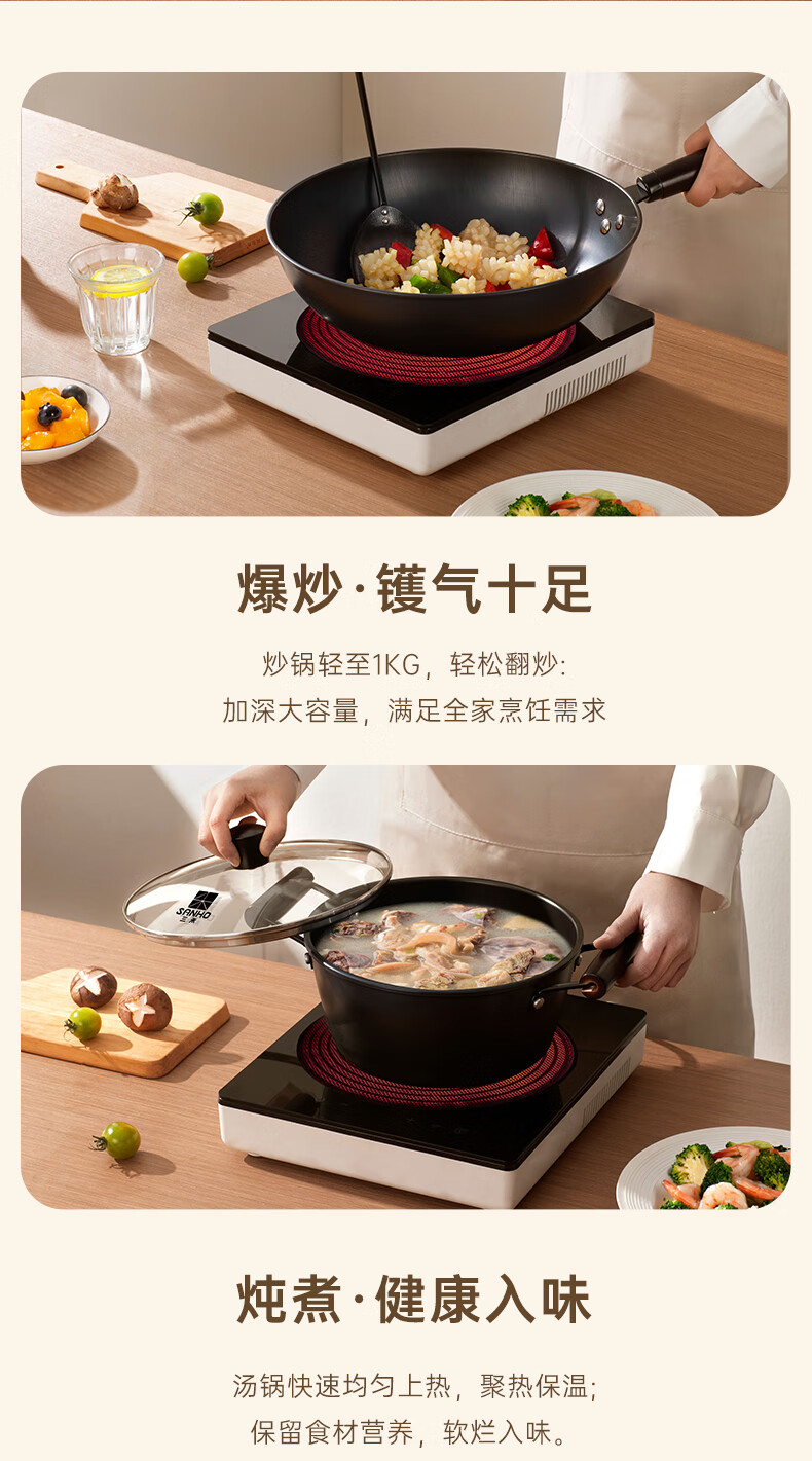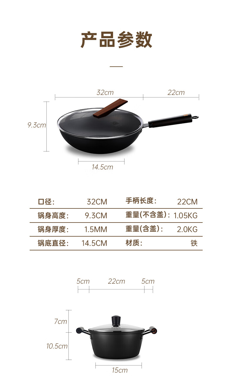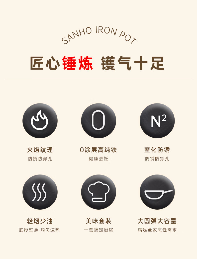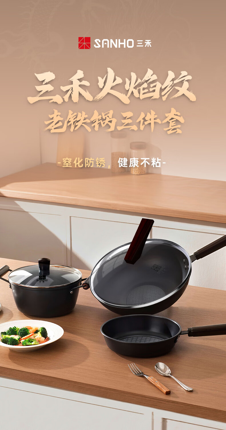 【分仓直发包邮】三禾火焰纹老铁锅三件套T322