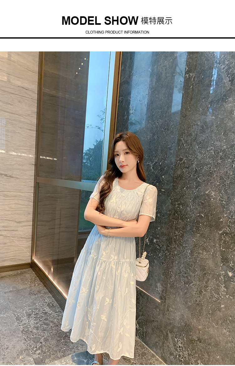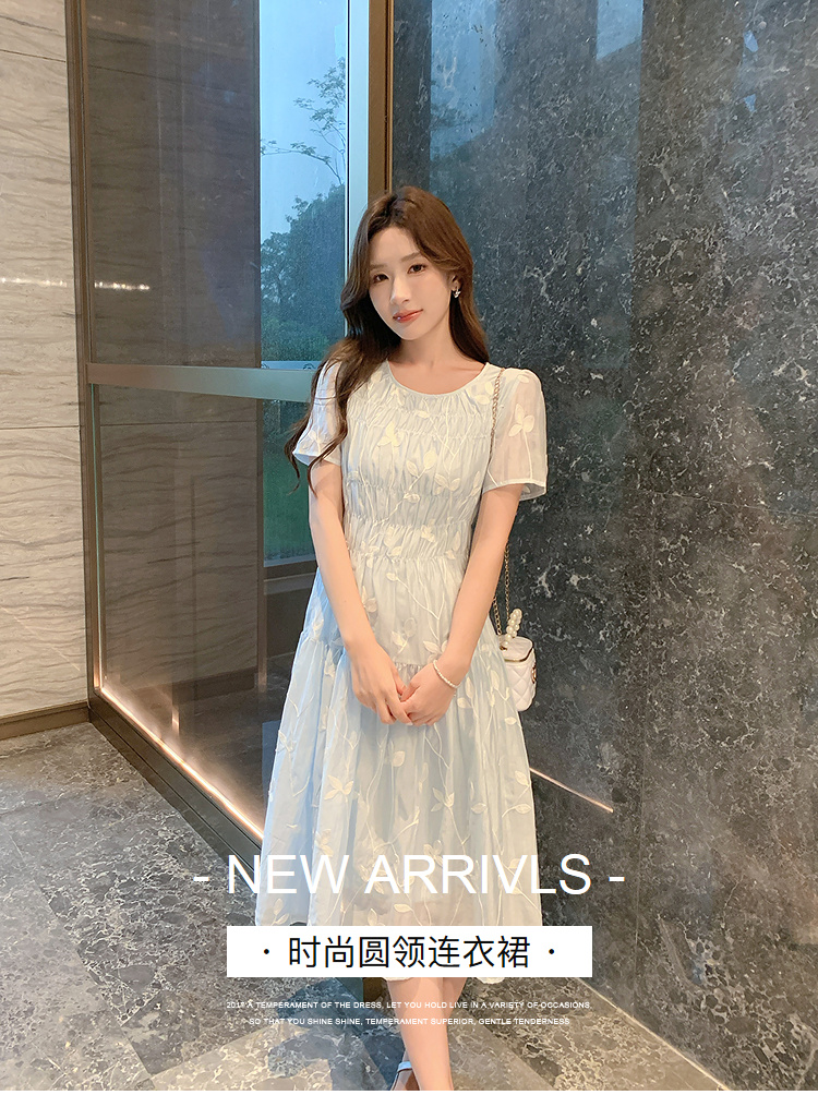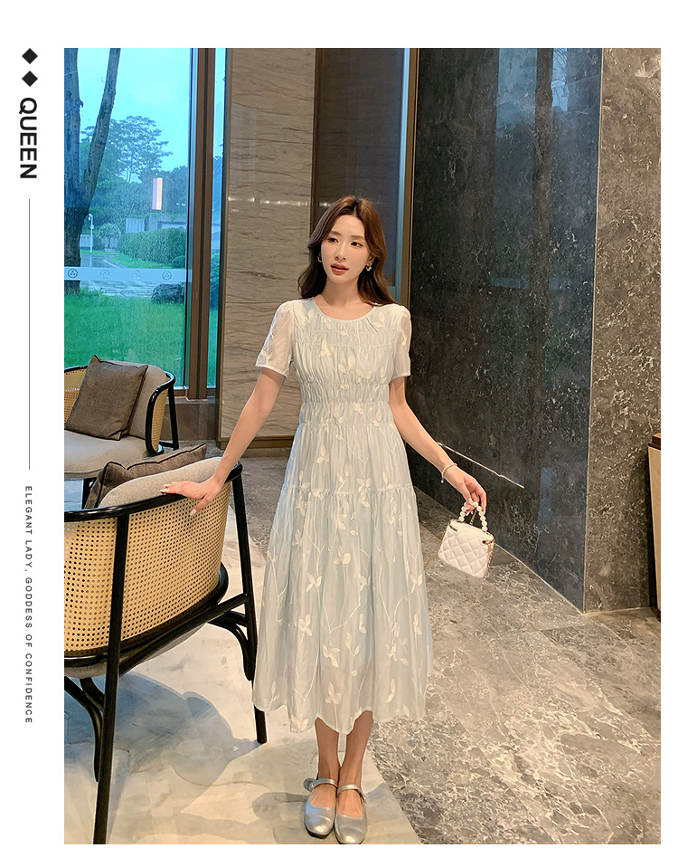 奢姿大码女装2025夏季圆领气质简约连衣裙胖妹妹植物花卉时尚裙子9952822350