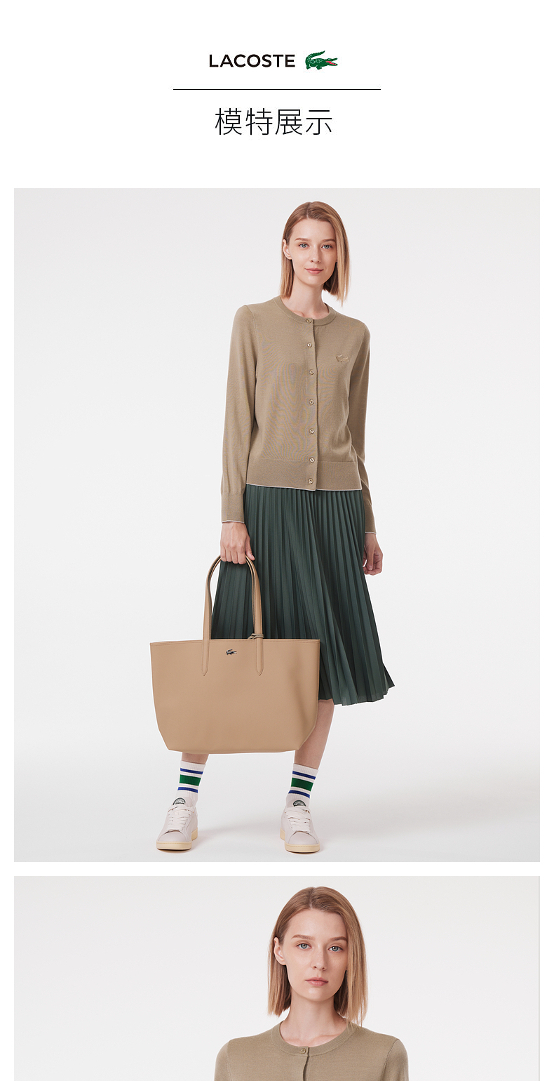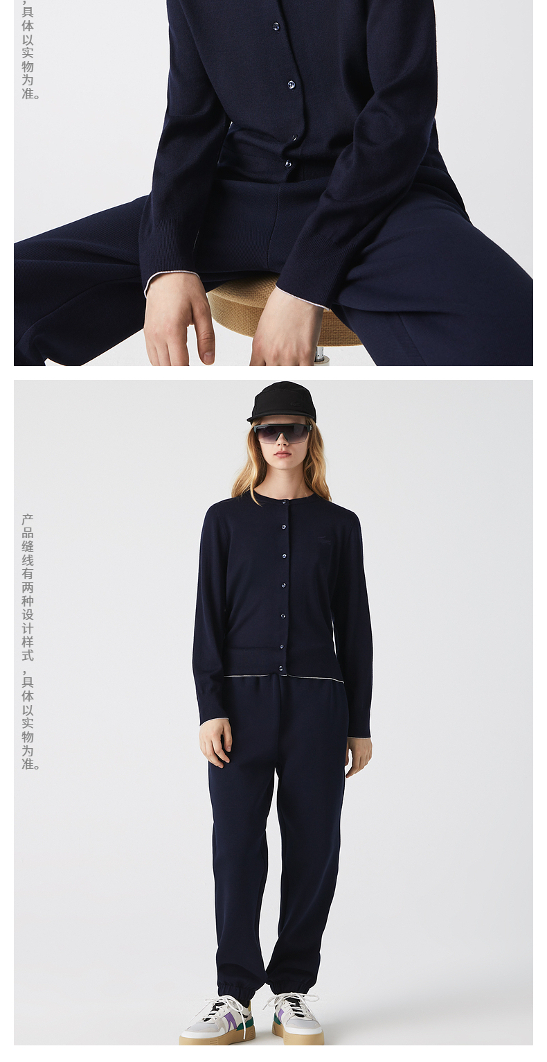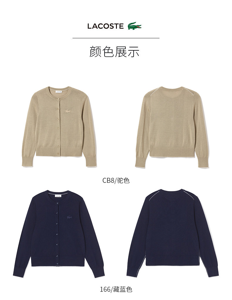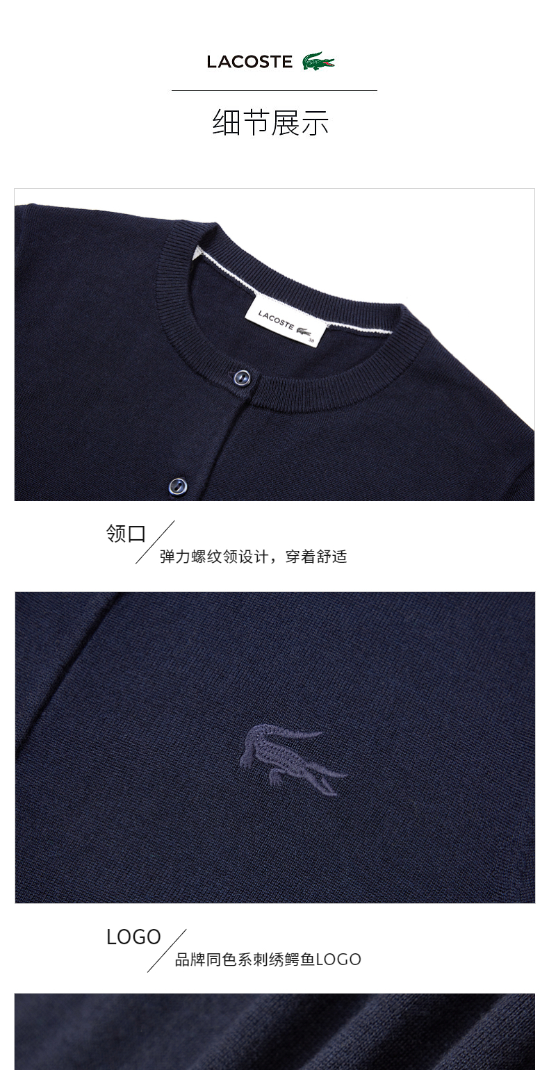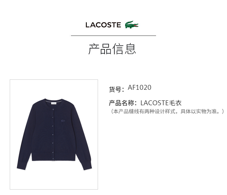 【海南专供价】Lacoste法国鳄鱼女装藏蓝色修身圆领毛衣羊毛衫针织开衫AF1020-98