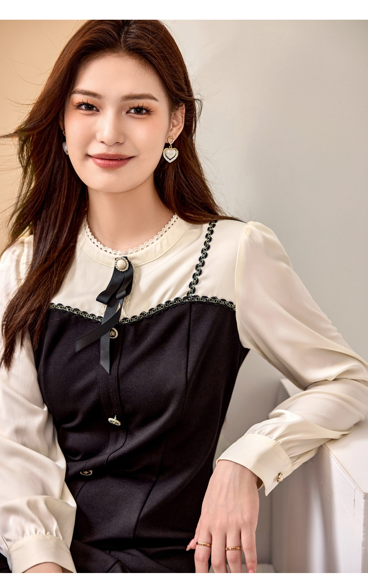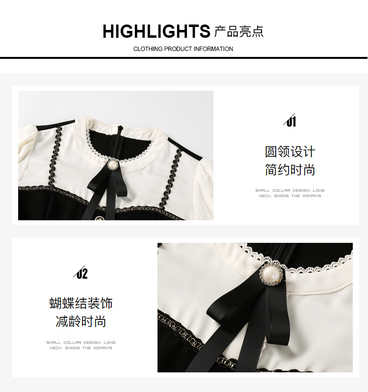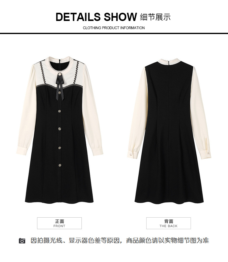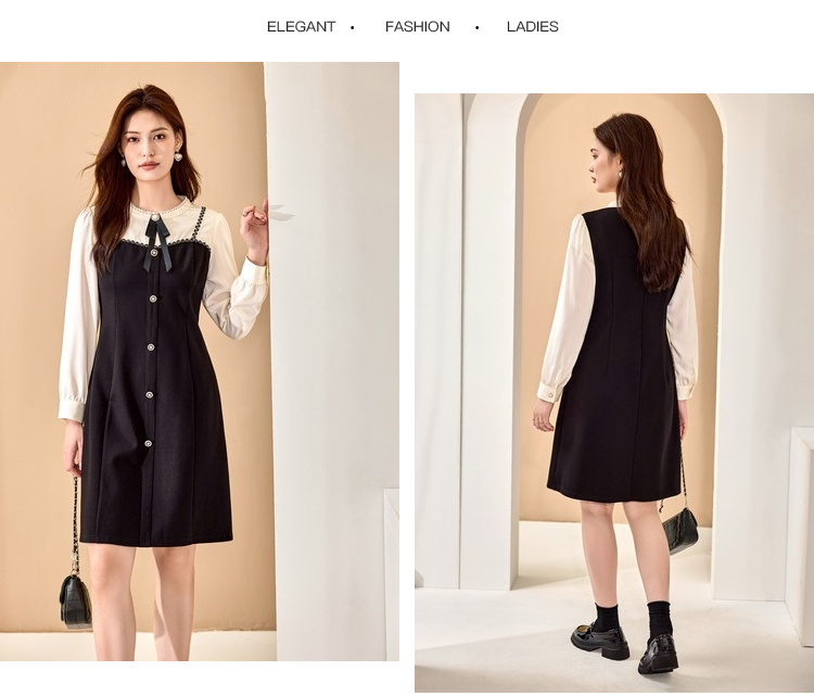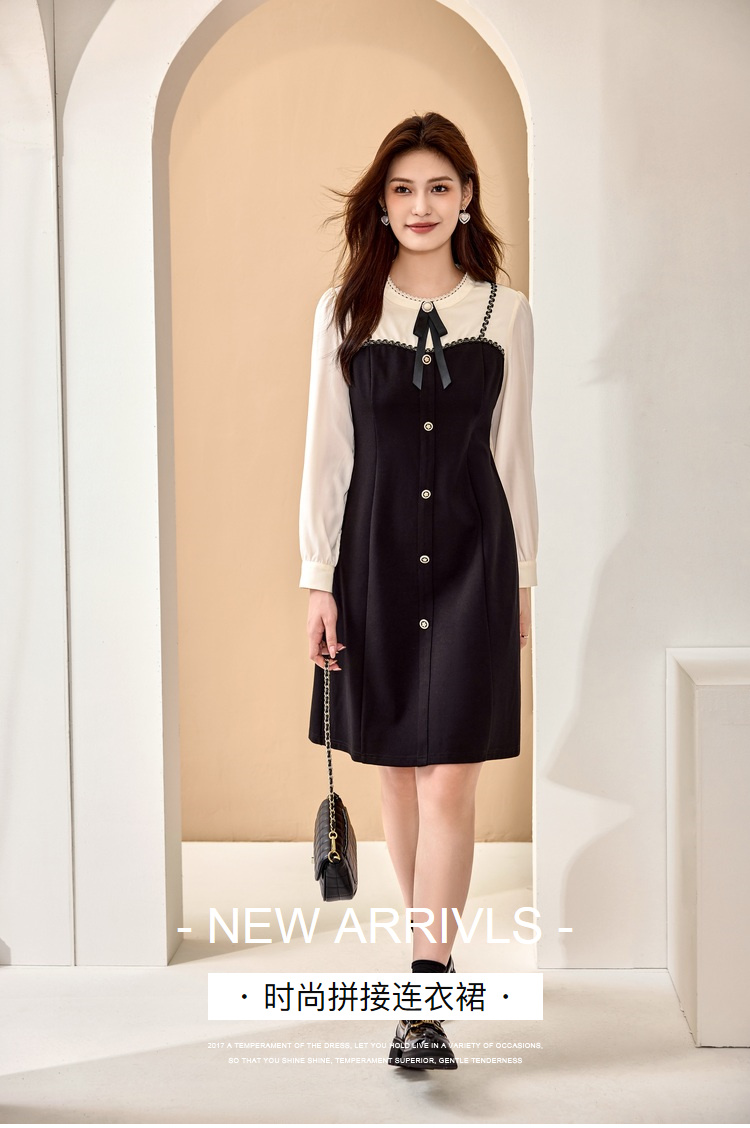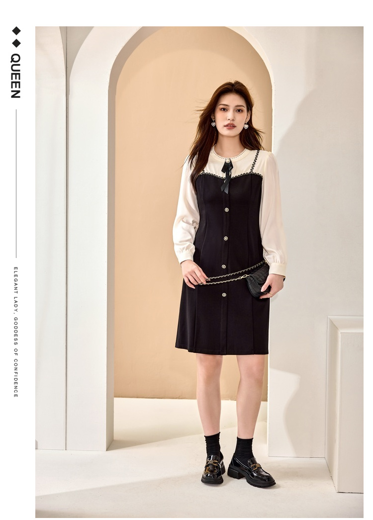 8/3奢姿大码女装2024秋季蝴蝶结减龄裙子胖妹妹拼接假两件时尚连衣裙9943826598