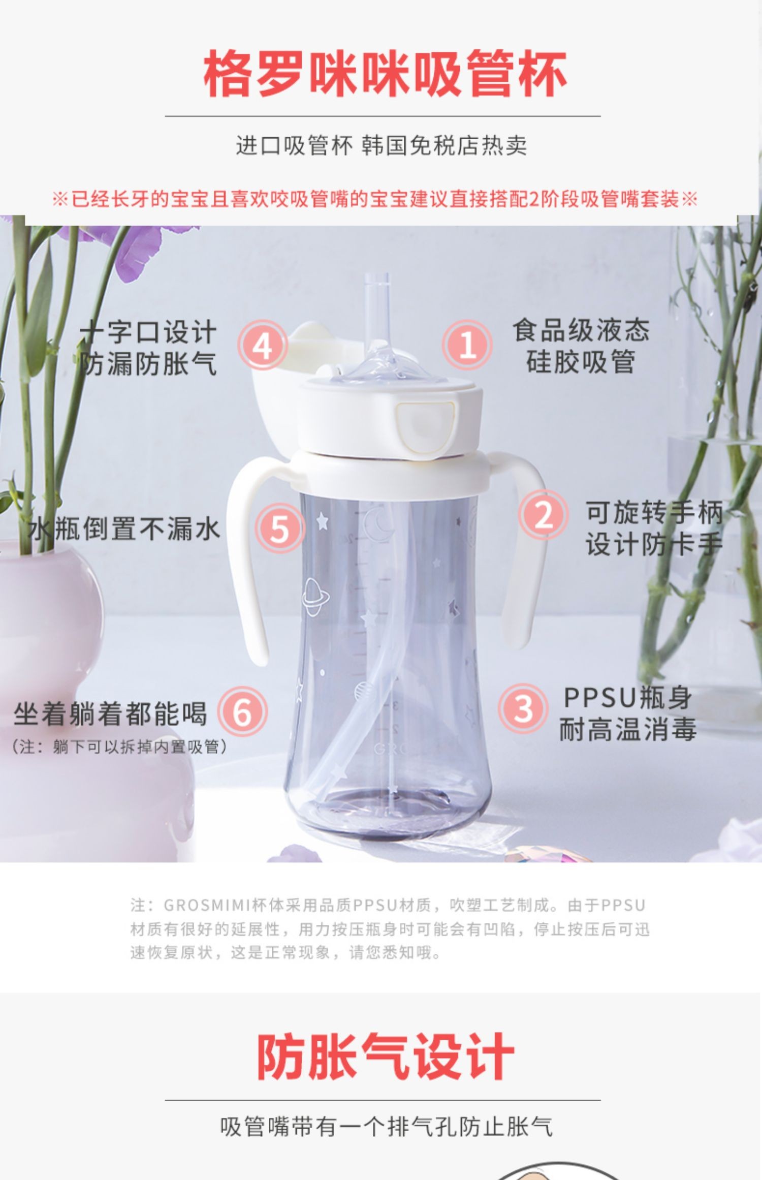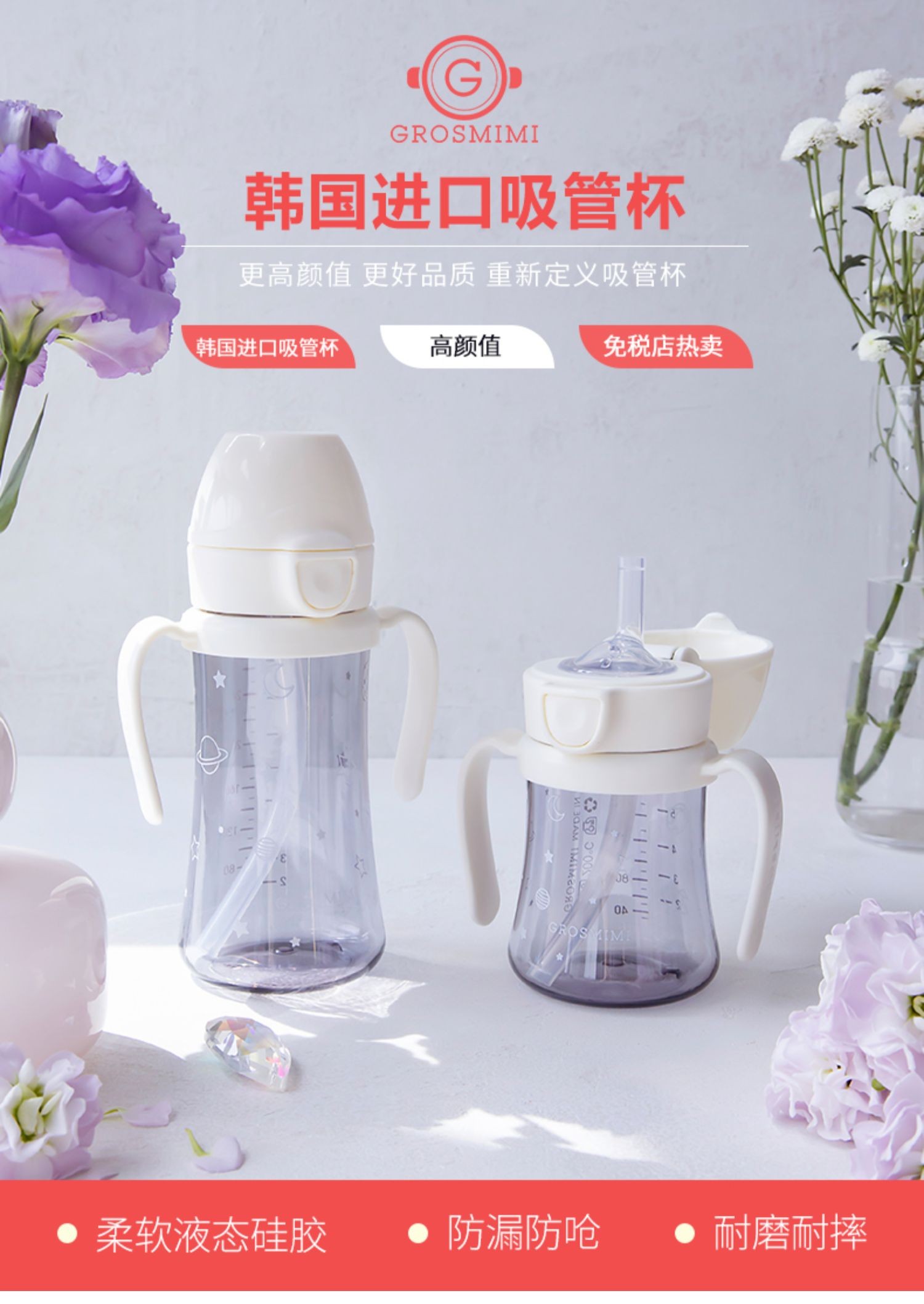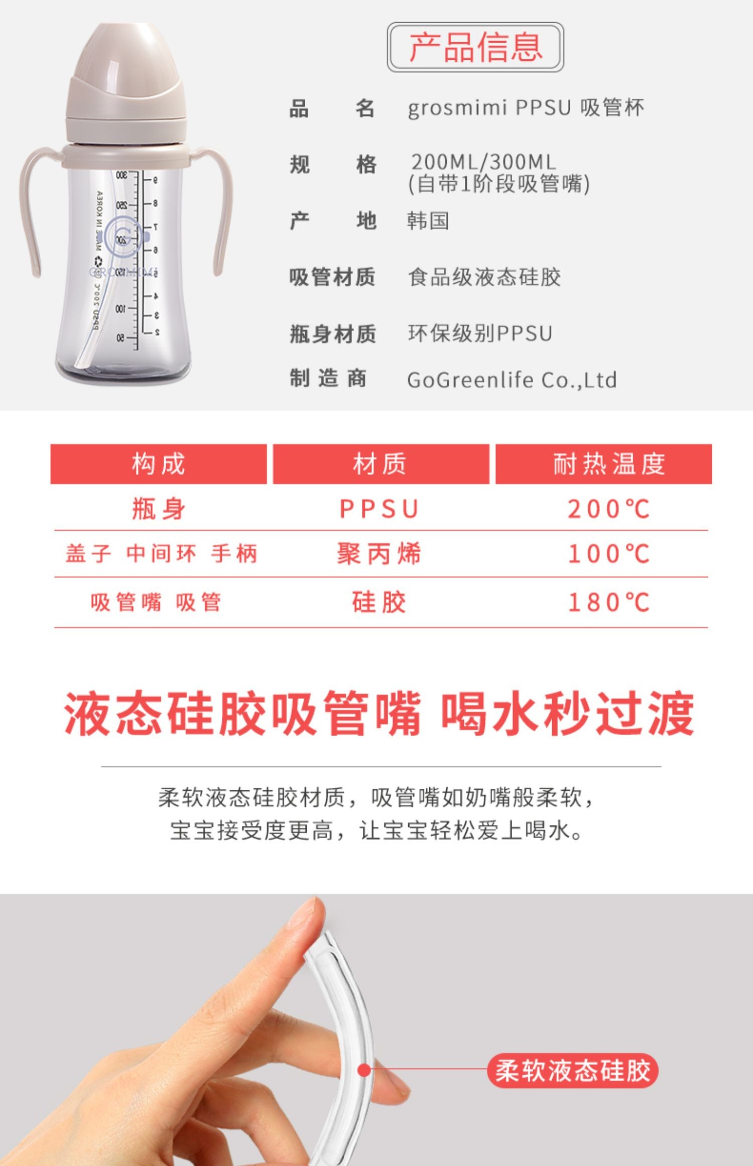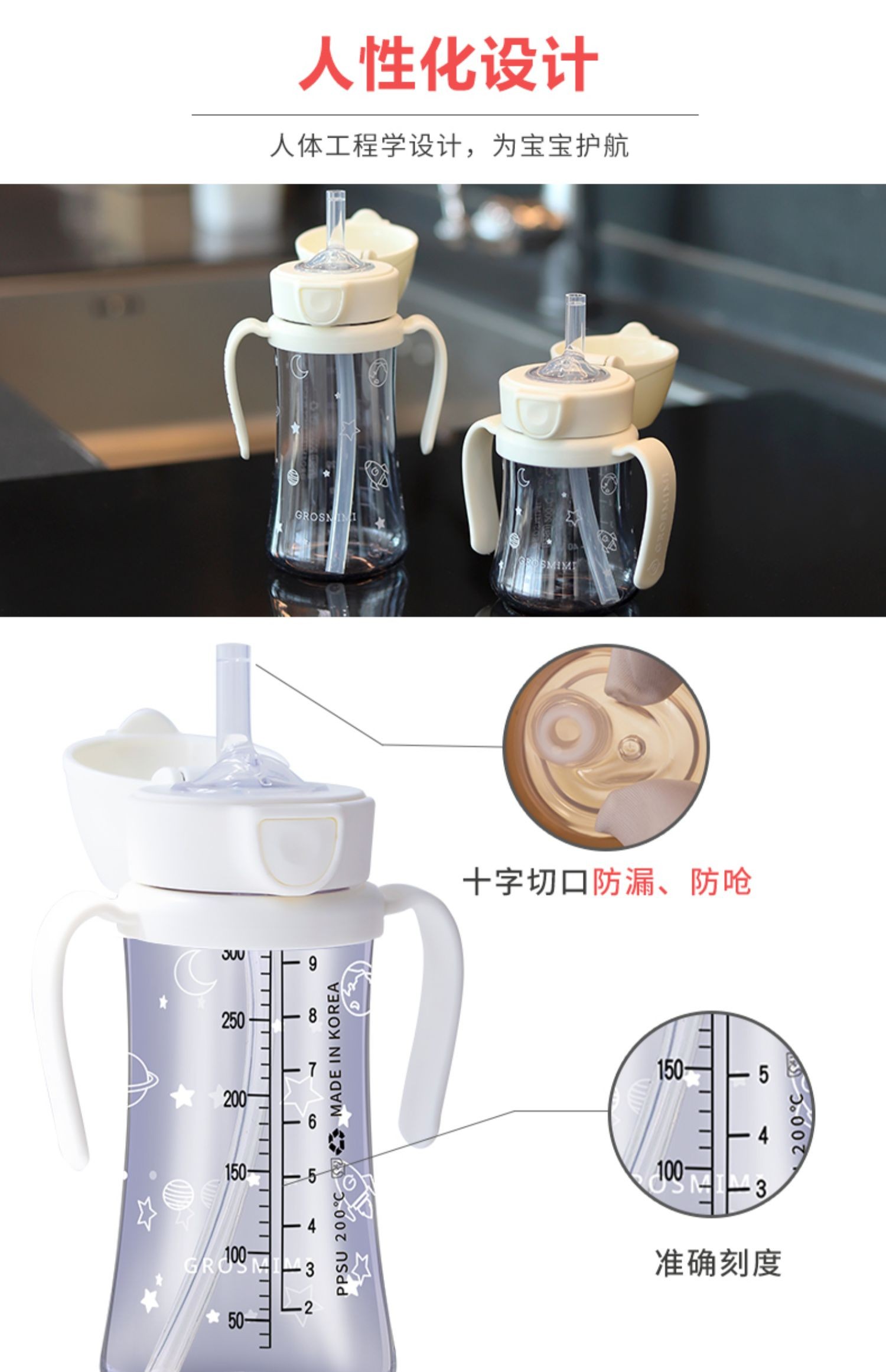 韩国Grosmimi格罗咪咪吸管杯 宝宝婴儿童学饮杯200/300ml L