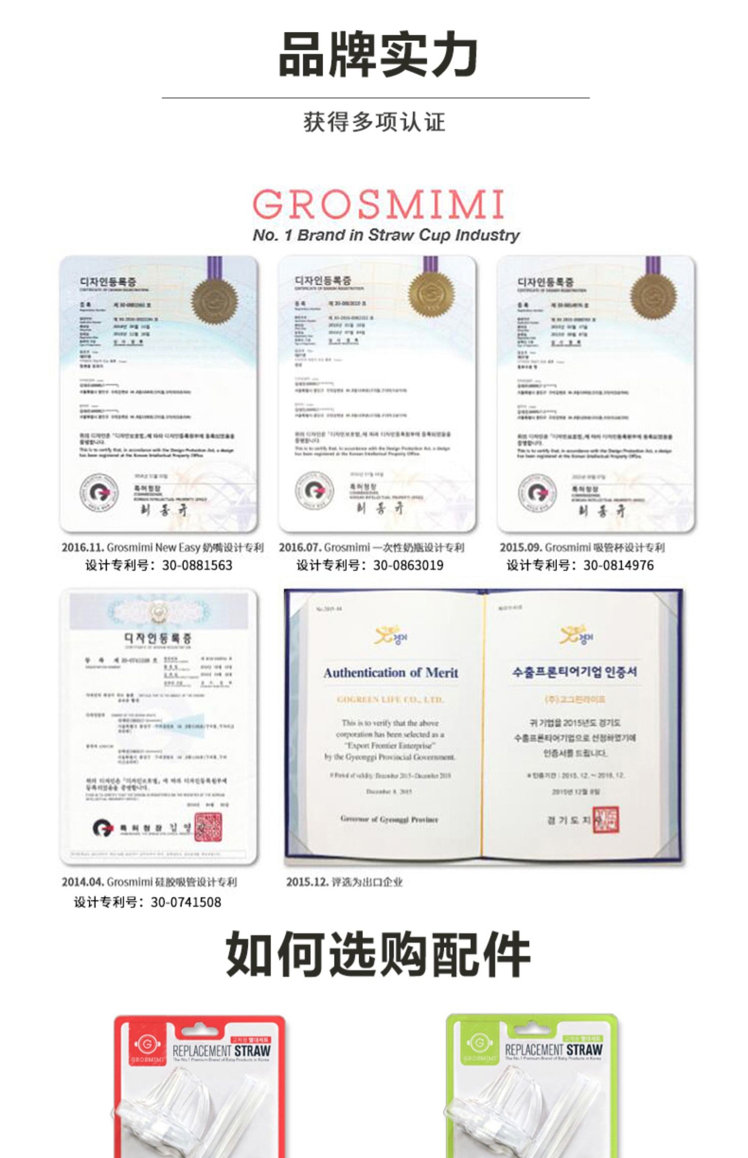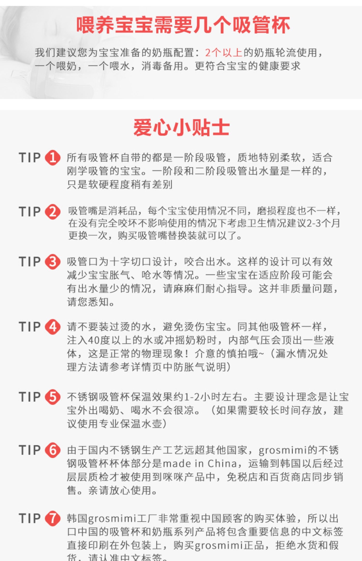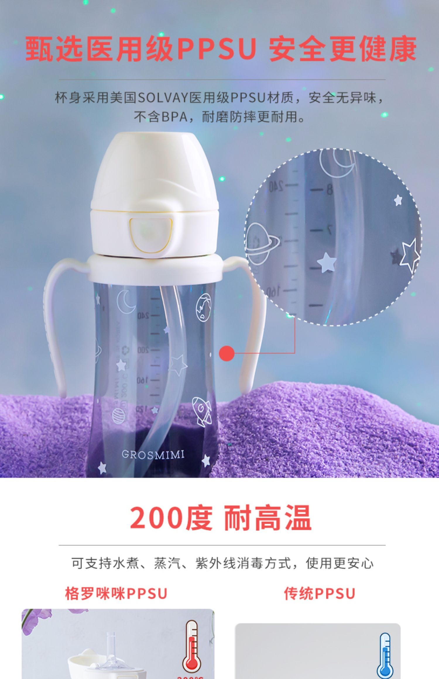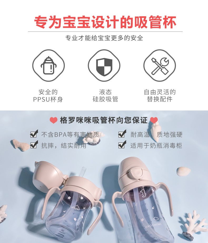 韩国Grosmimi格罗咪咪吸管杯 宝宝婴儿童学饮杯200/300ml L
