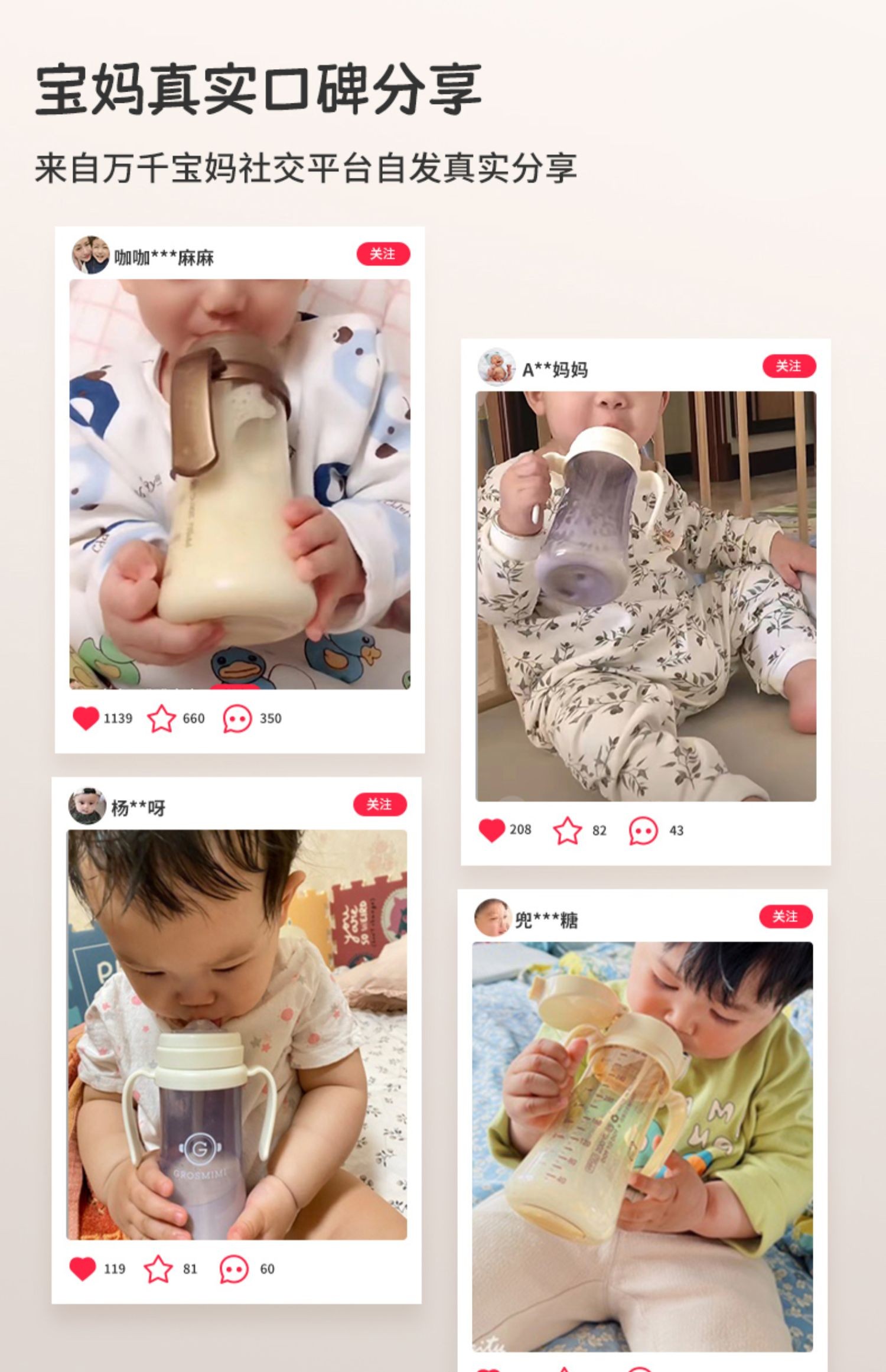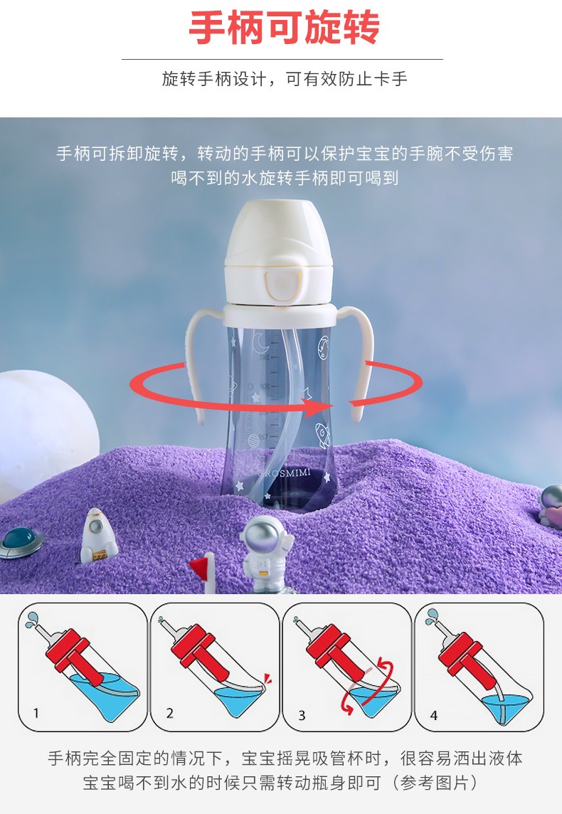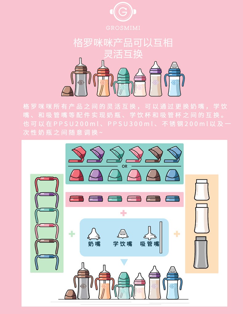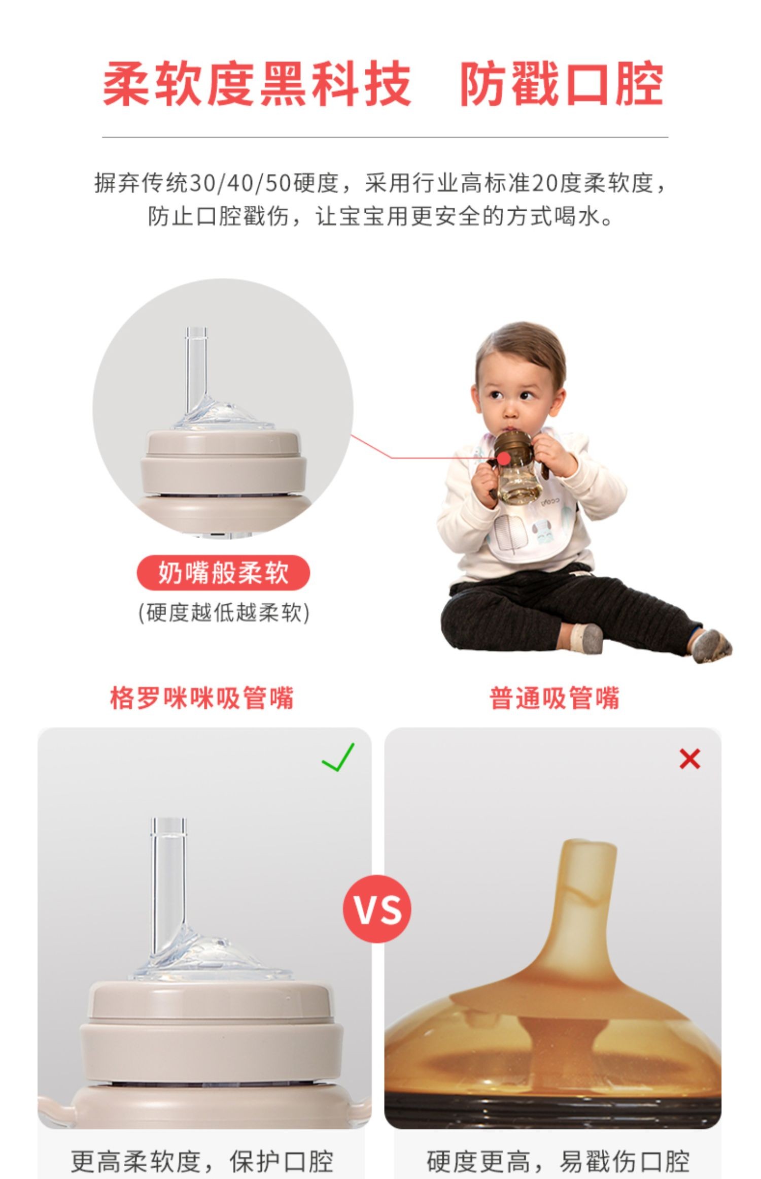 韩国Grosmimi格罗咪咪吸管杯 宝宝婴儿童学饮杯200/300ml L