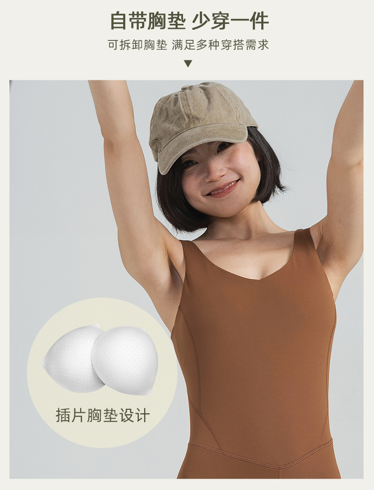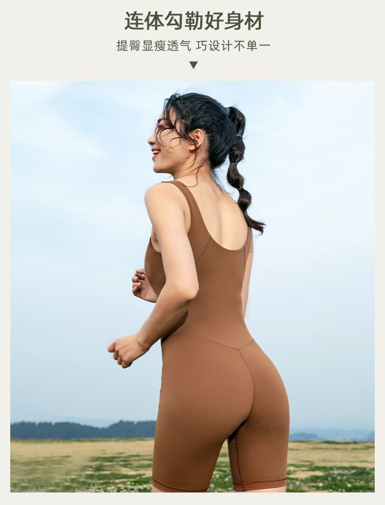 【裸感】自带胸垫 瑜伽 健身连体衣 四分长度,收腹提臀普拉提连体服