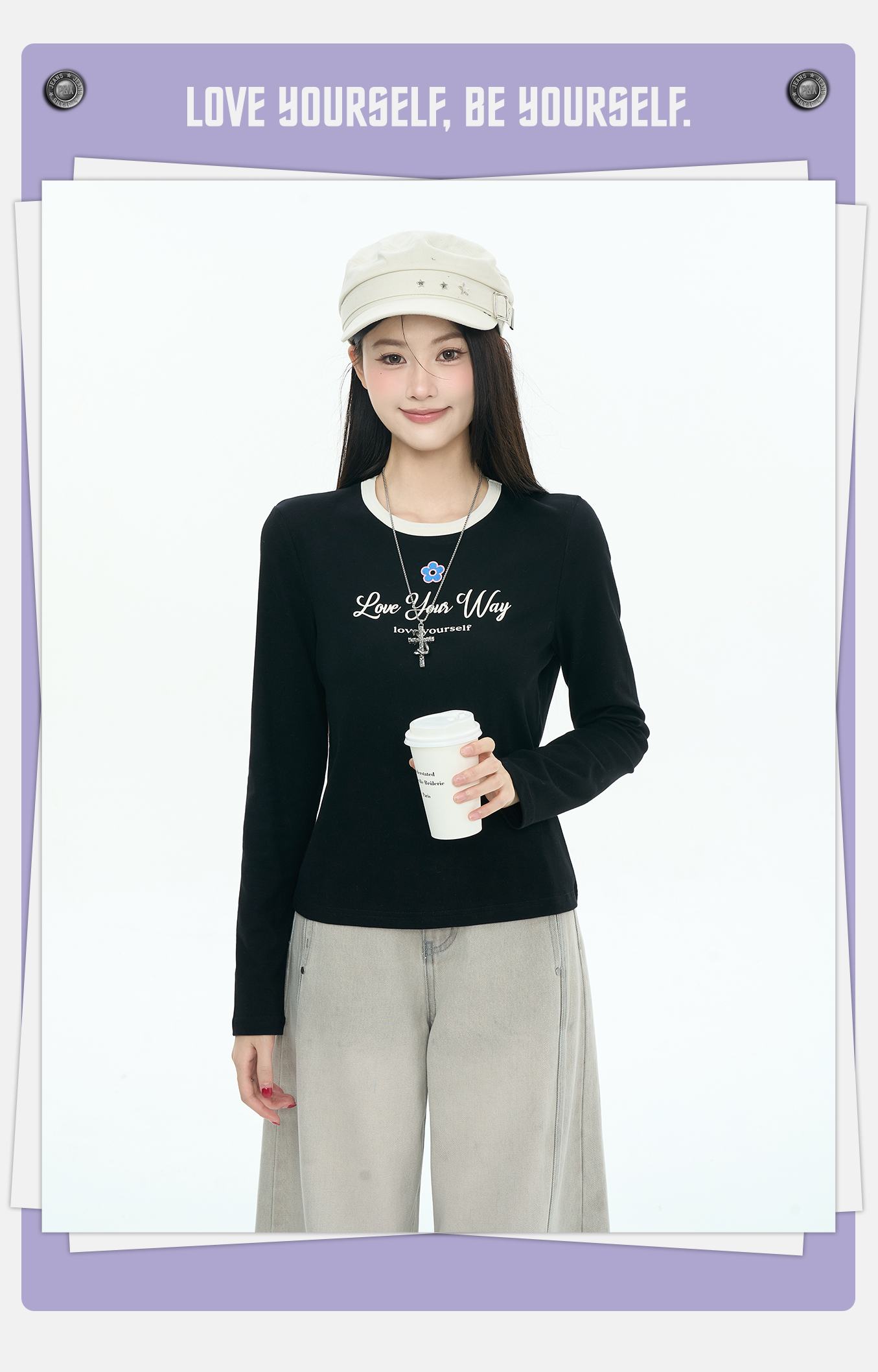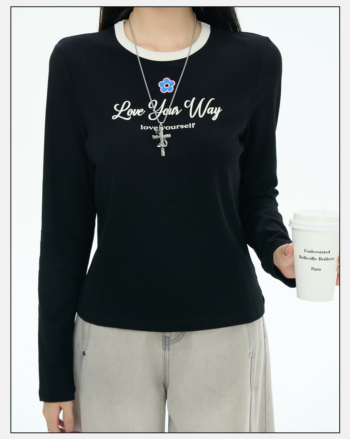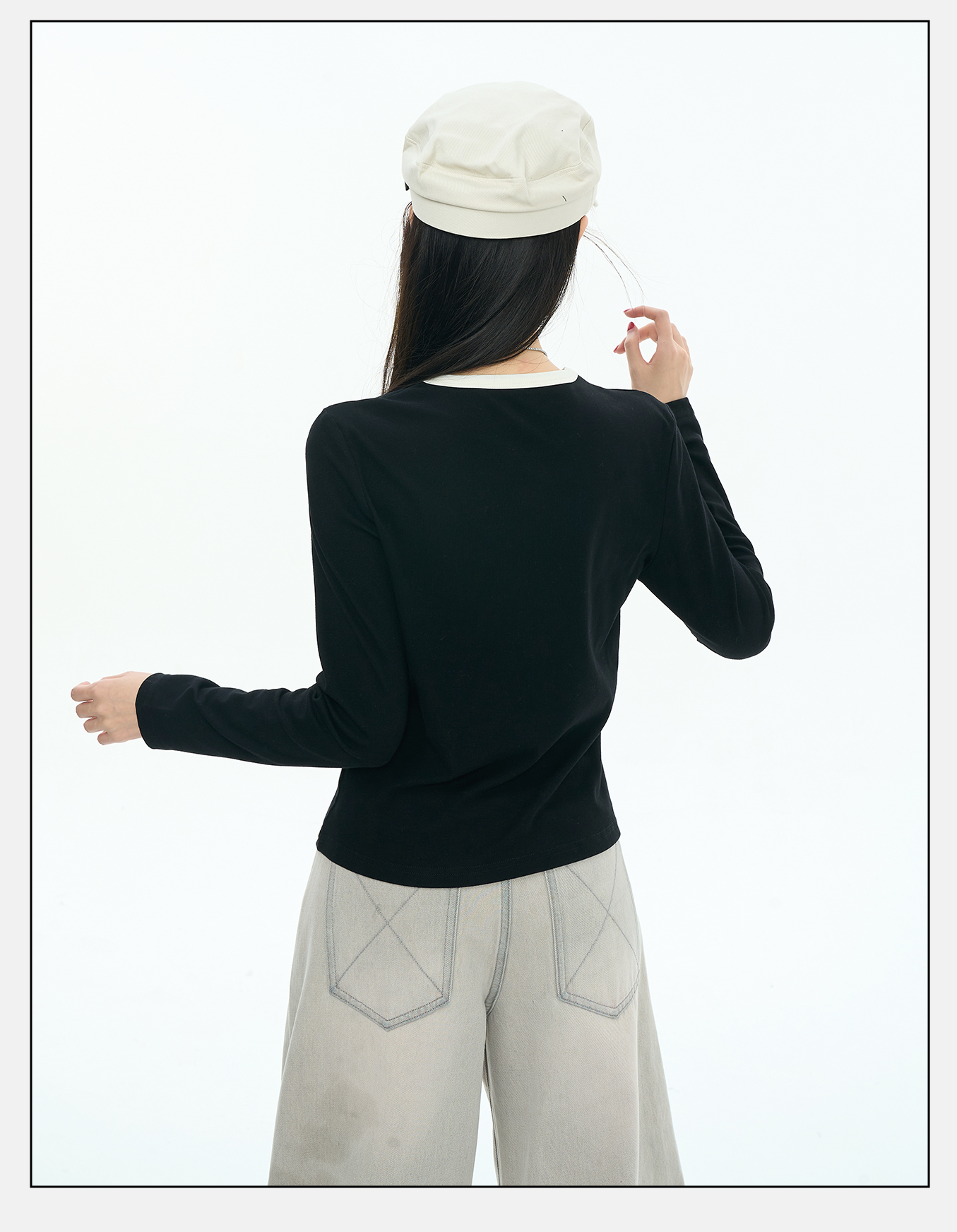 P&X设计师女装2025秋季长袖圆领百搭T恤修身打底衫825302206 黑色