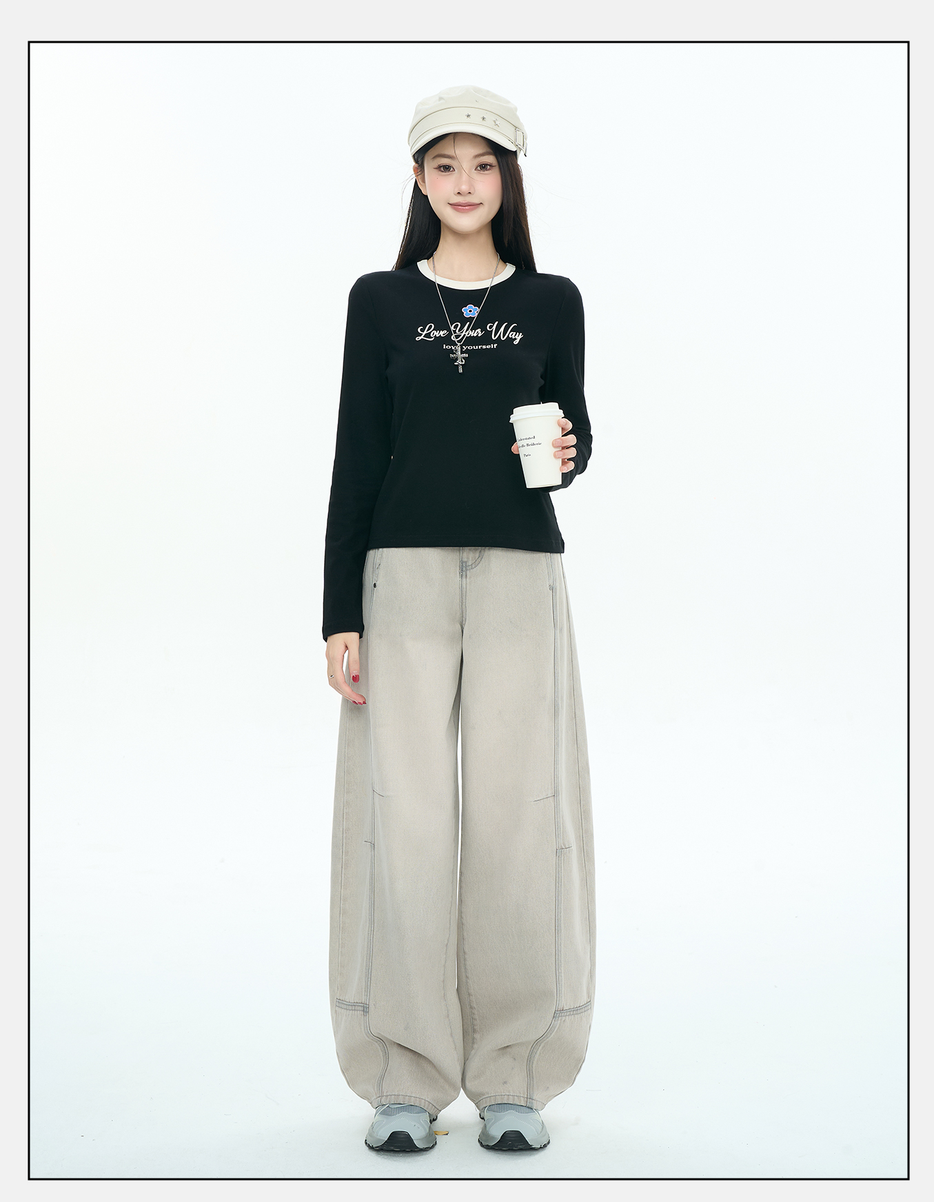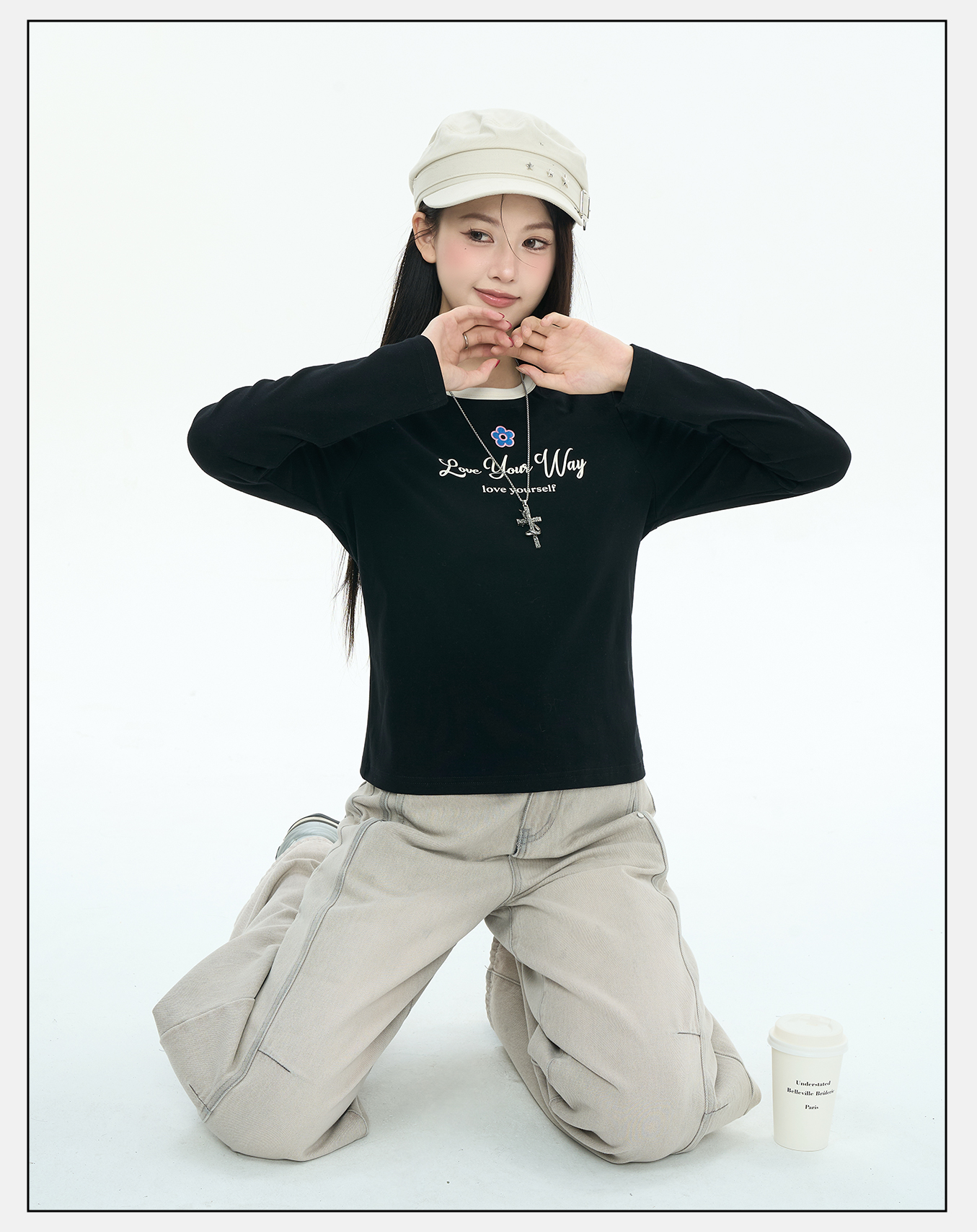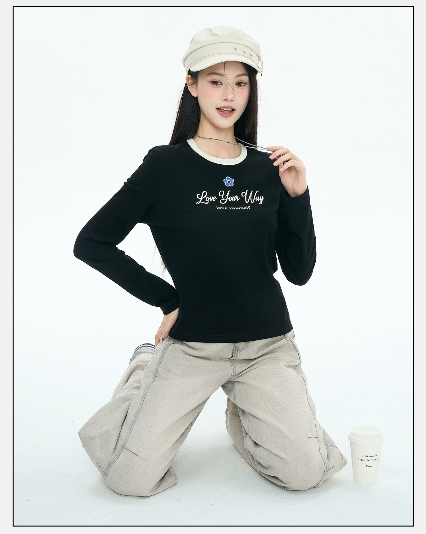 P&X设计师女装2025秋季长袖圆领百搭T恤修身打底衫825302206 黑色