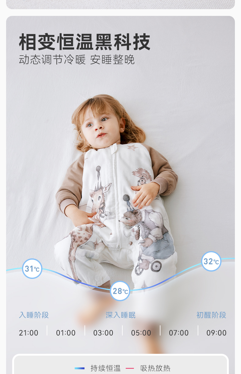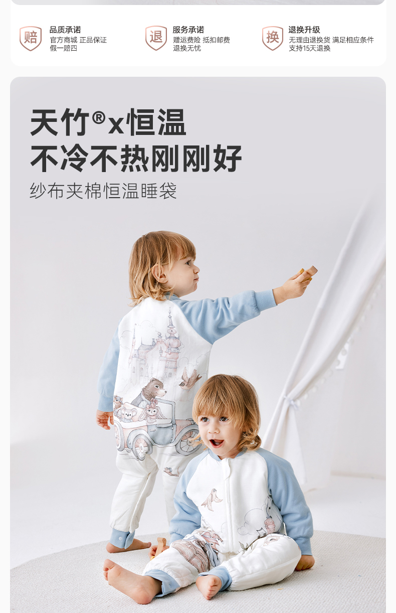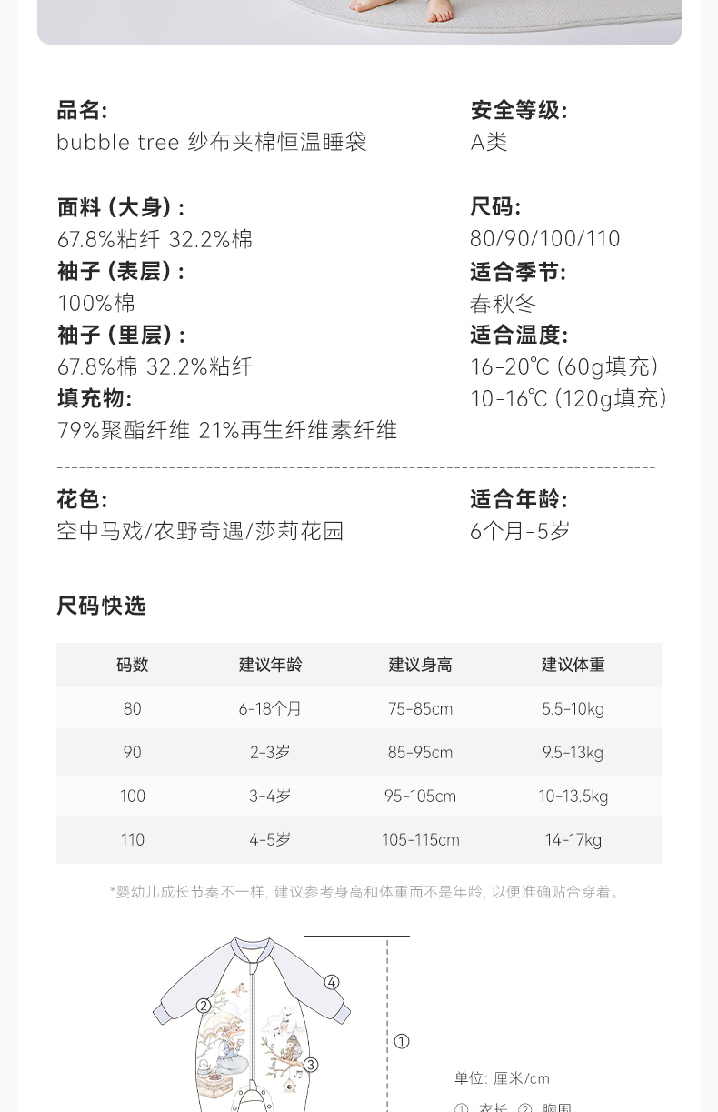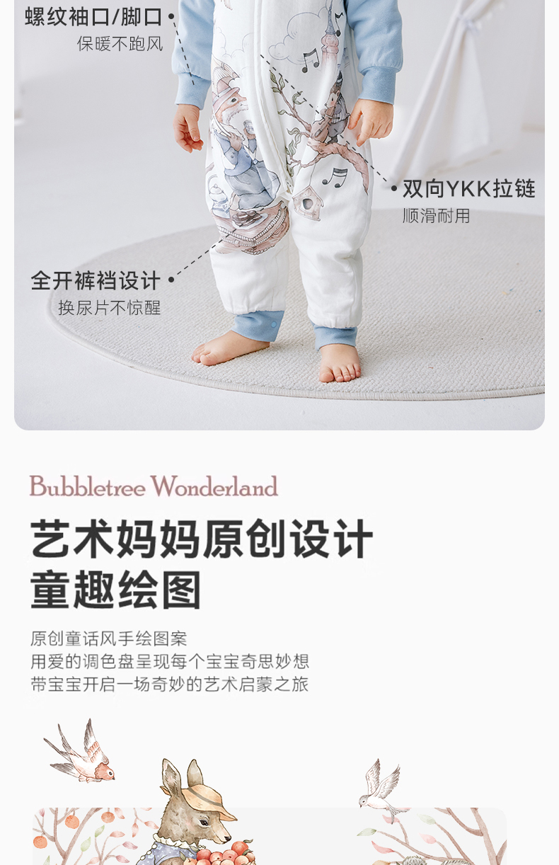 【云优选】BUBBLE TREE睡袋秋冬儿童防踢被神器大龄儿童a类加厚竹棉纱布睡袋礼盒包装送礼必备