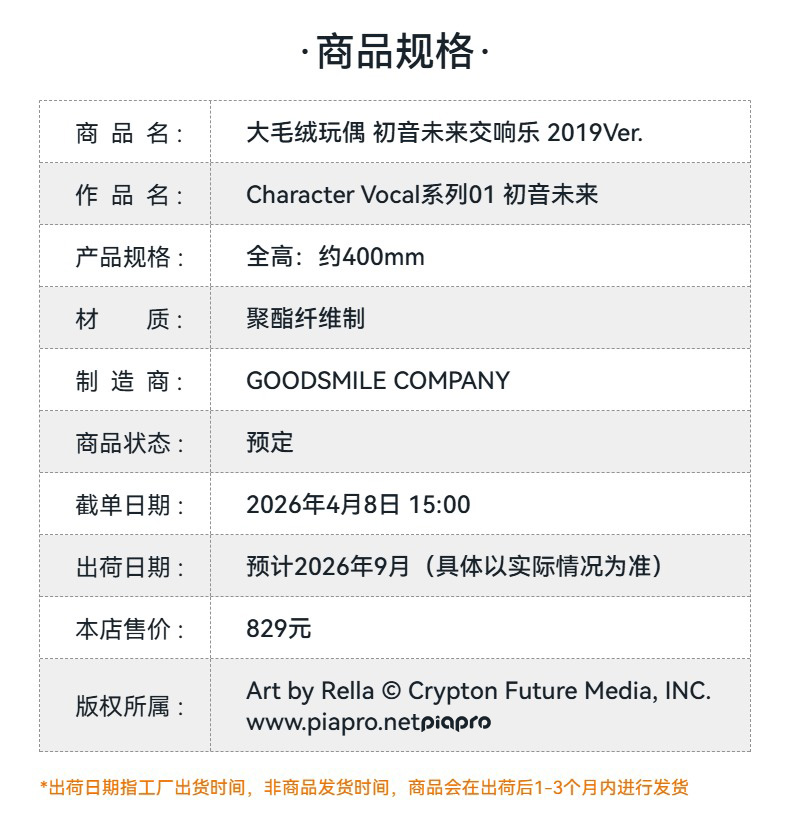 【GSC预售定金】大毛绒玩偶 初音未来交响乐 2019Ver.