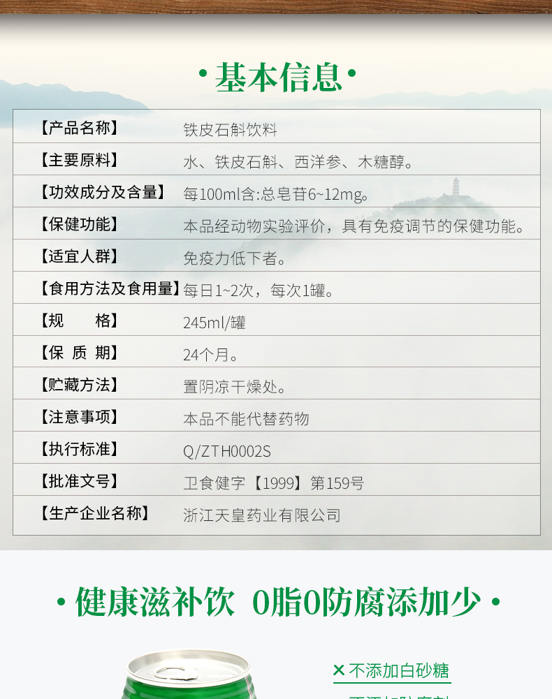 立钻 铁皮石斛饮料245ml*18罐养生饮品免疫调节