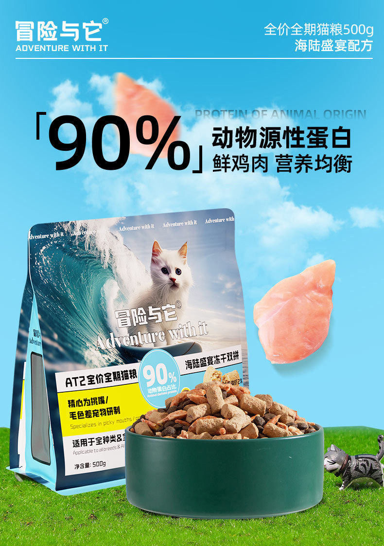 冒险与它全阶段双拼冻干犬猫粮全价鸡肉生骨肉磷猫狗主粮集合批发
