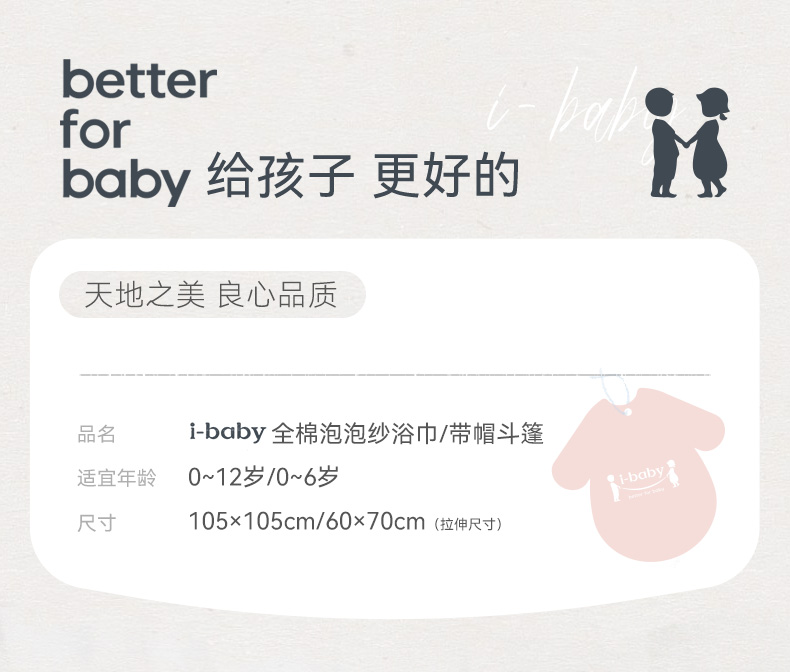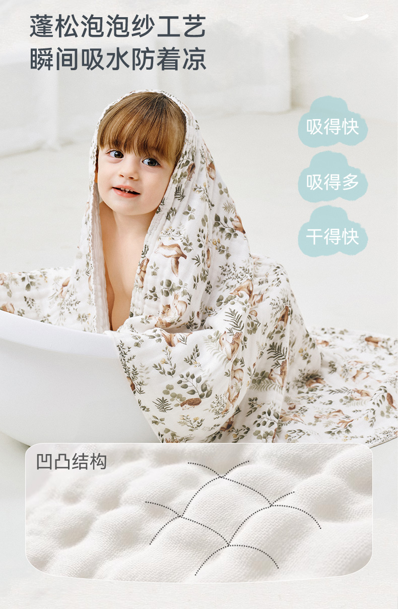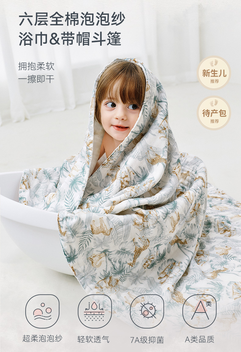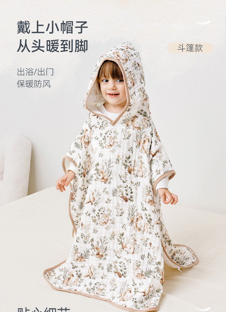 【2025秋冬新品】i-baby全棉泡泡纱六层纱布浴巾斗篷