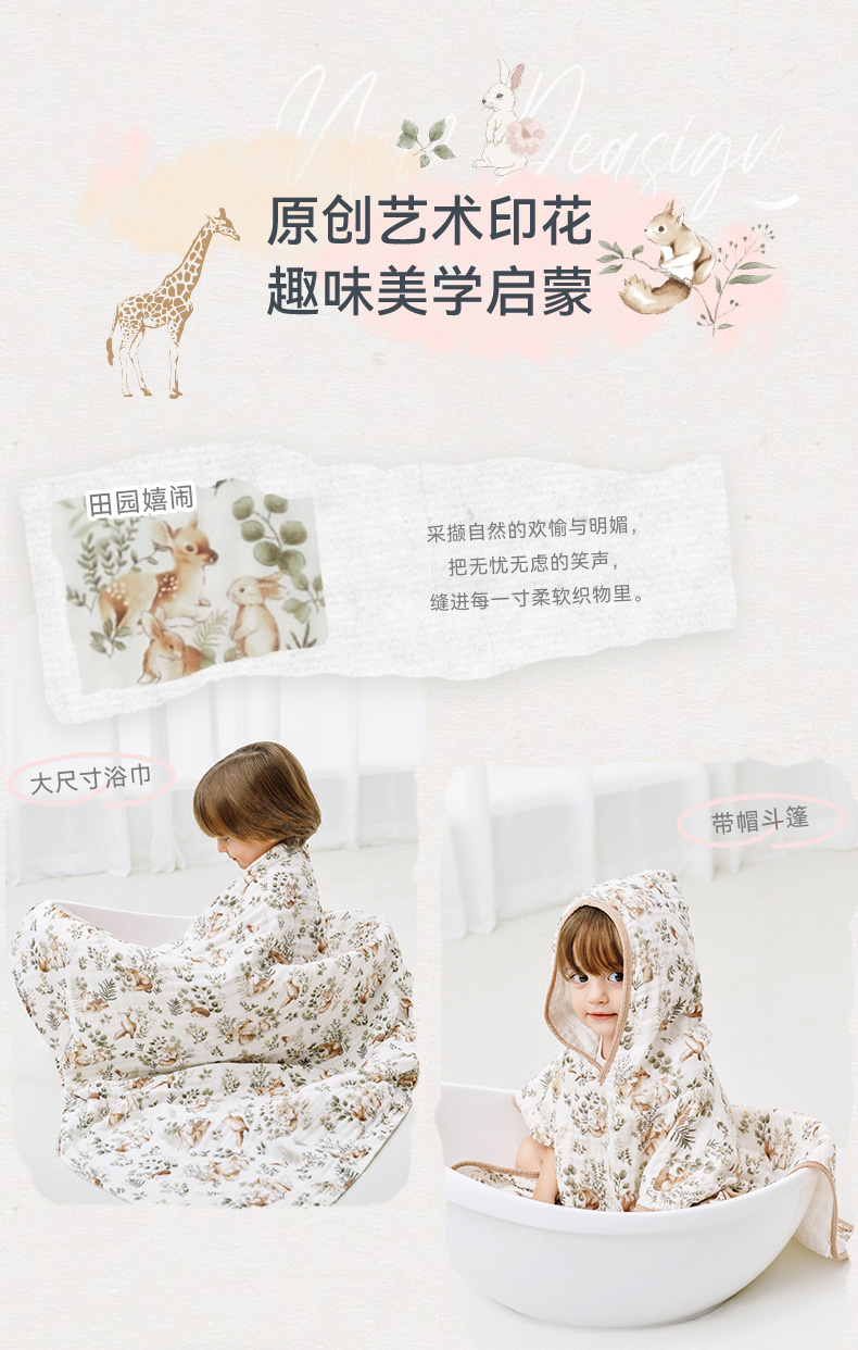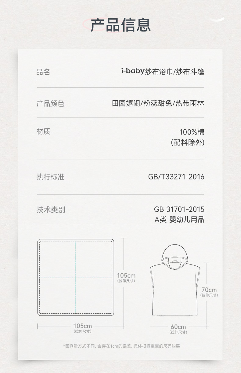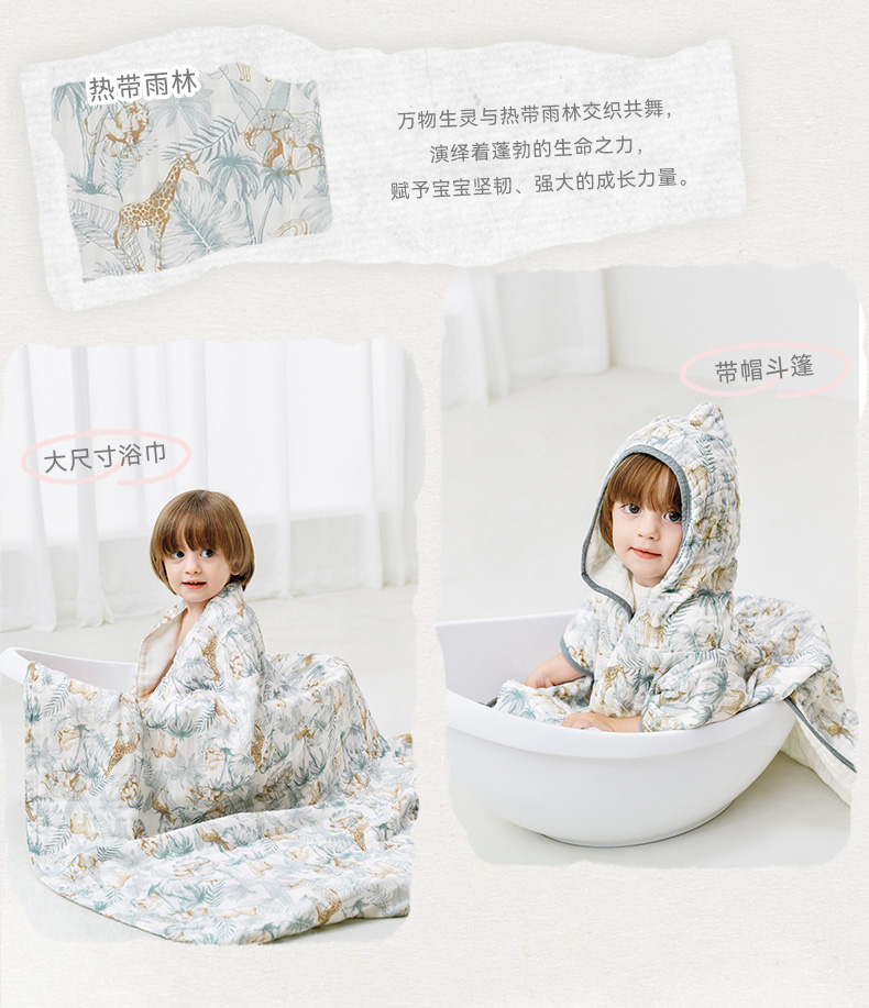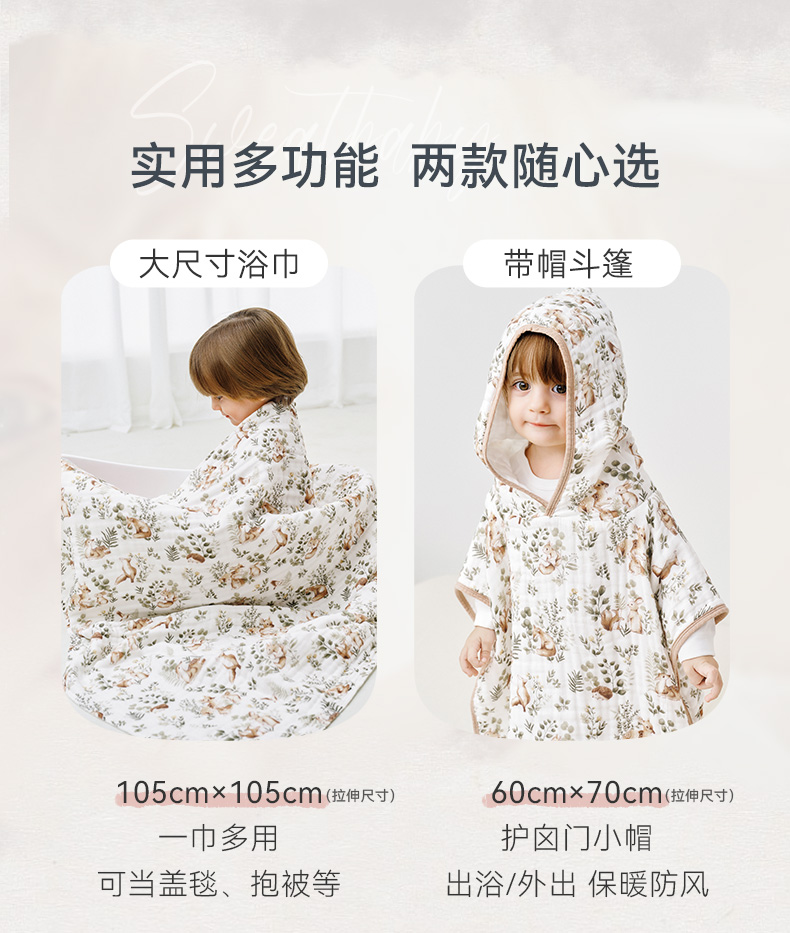 【2025秋冬新品】i-baby全棉泡泡纱六层纱布浴巾斗篷
