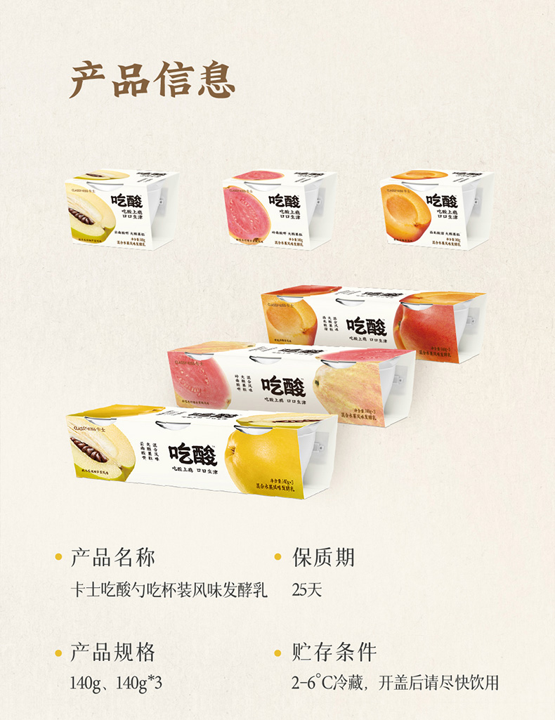 【7天内发出,发出后不支持拦截退货】卡士 吃酸大果粒风味发酵乳(粉芭乐柠檬水蜜桃/黄桃话梅杏/木瓜双柚芦荟)140g 多规格