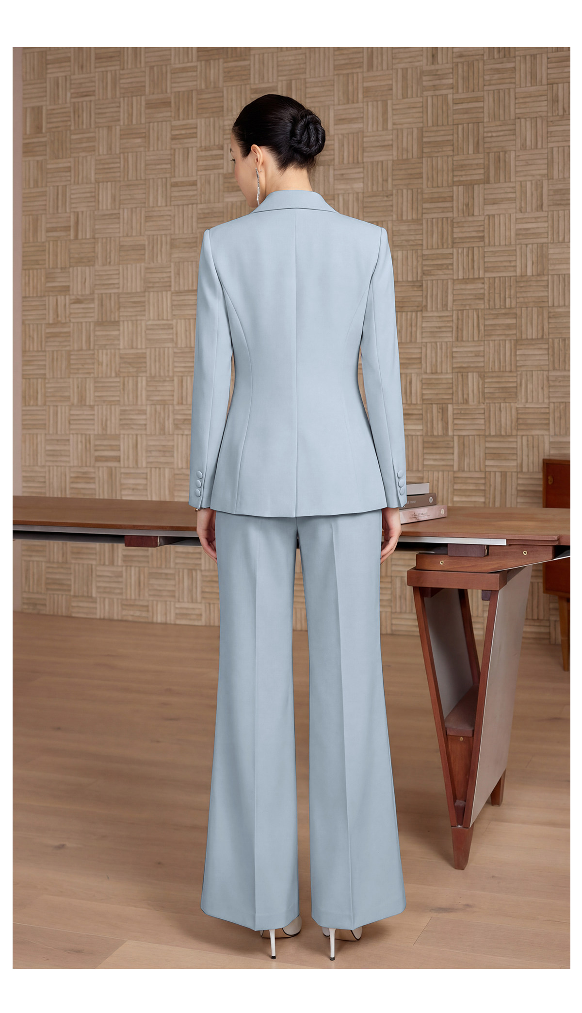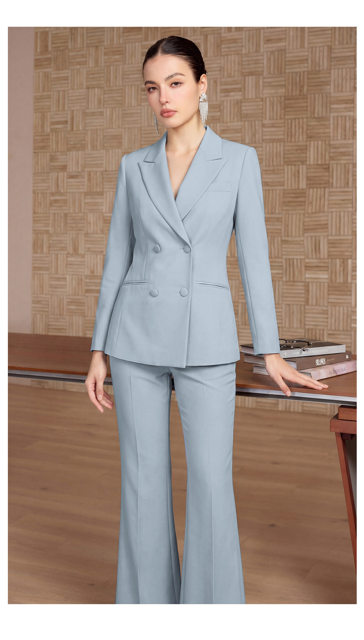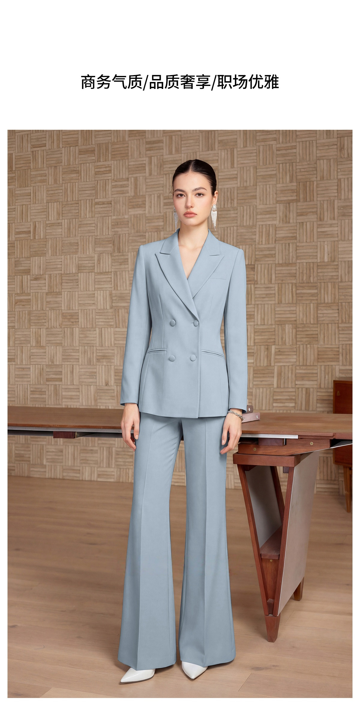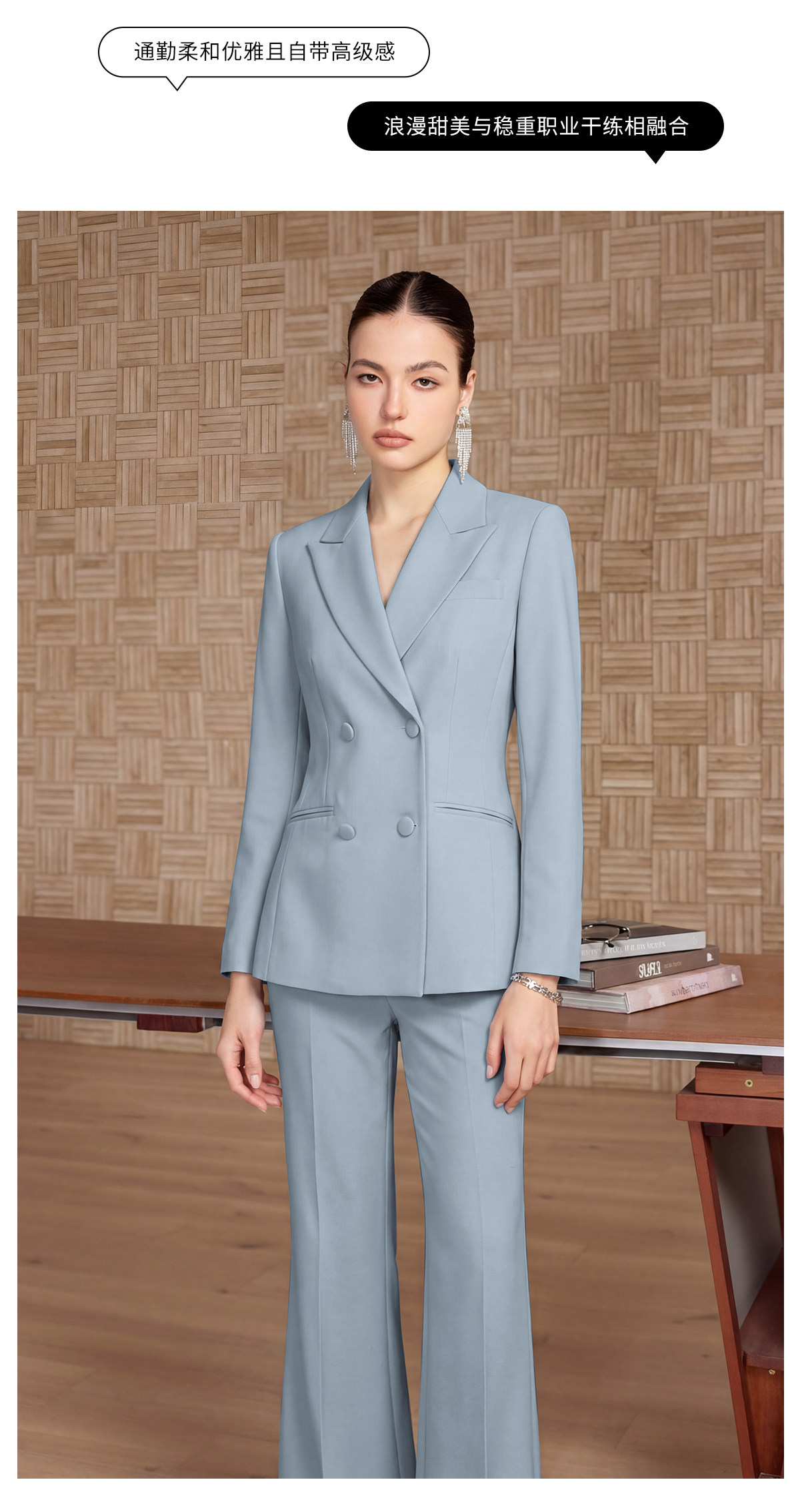 IWY/轻熟简约风雾霾蓝双排扣西装套装女高级感通勤职业装两件套CP2752