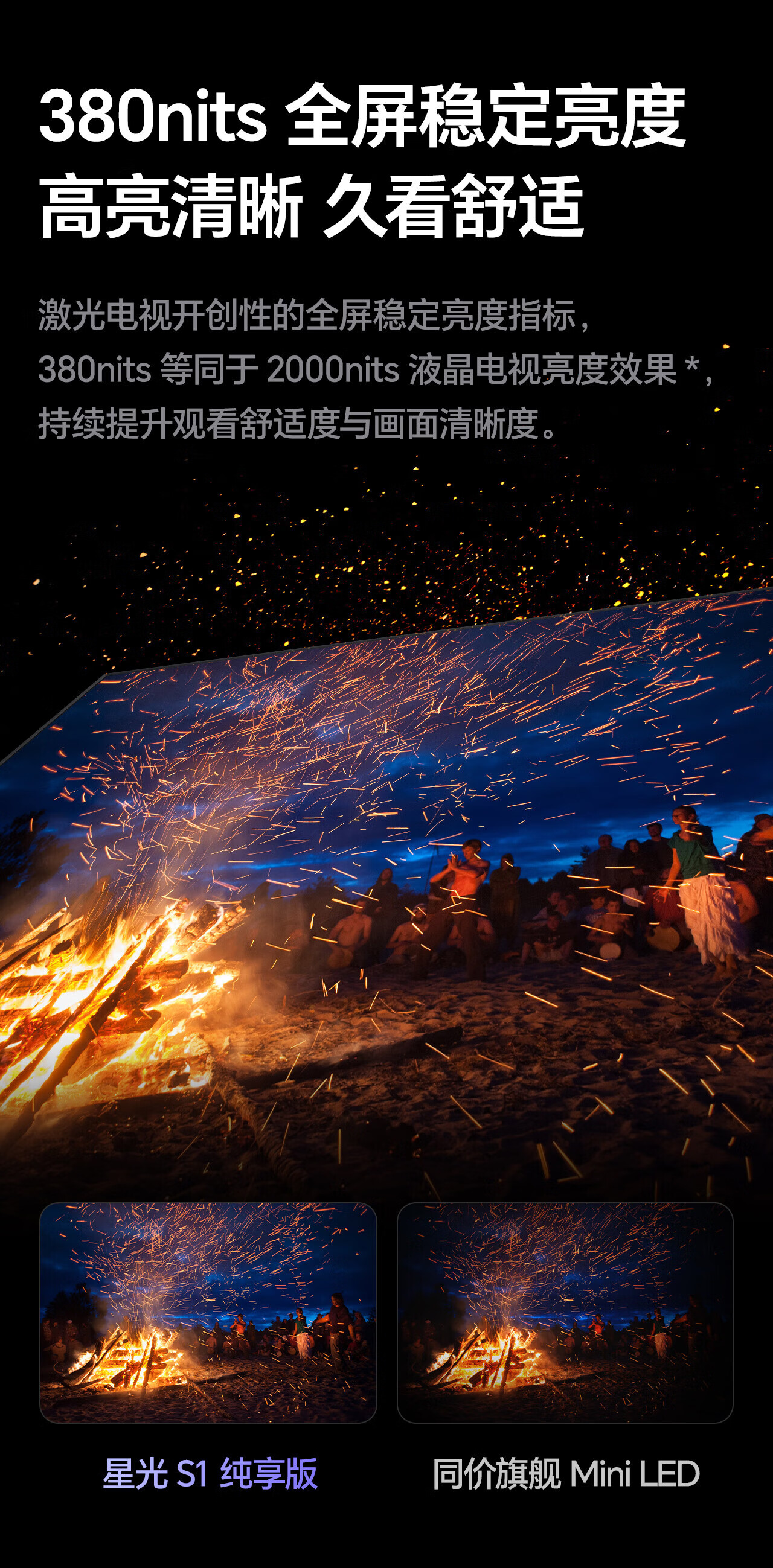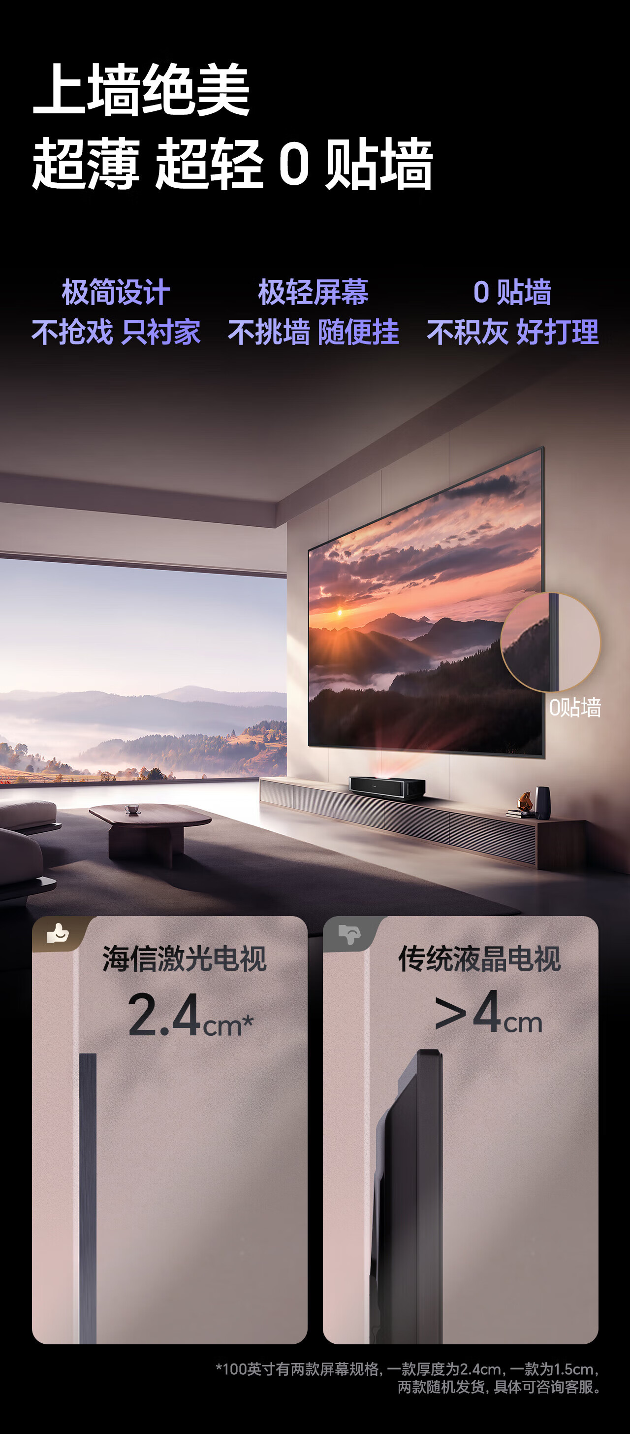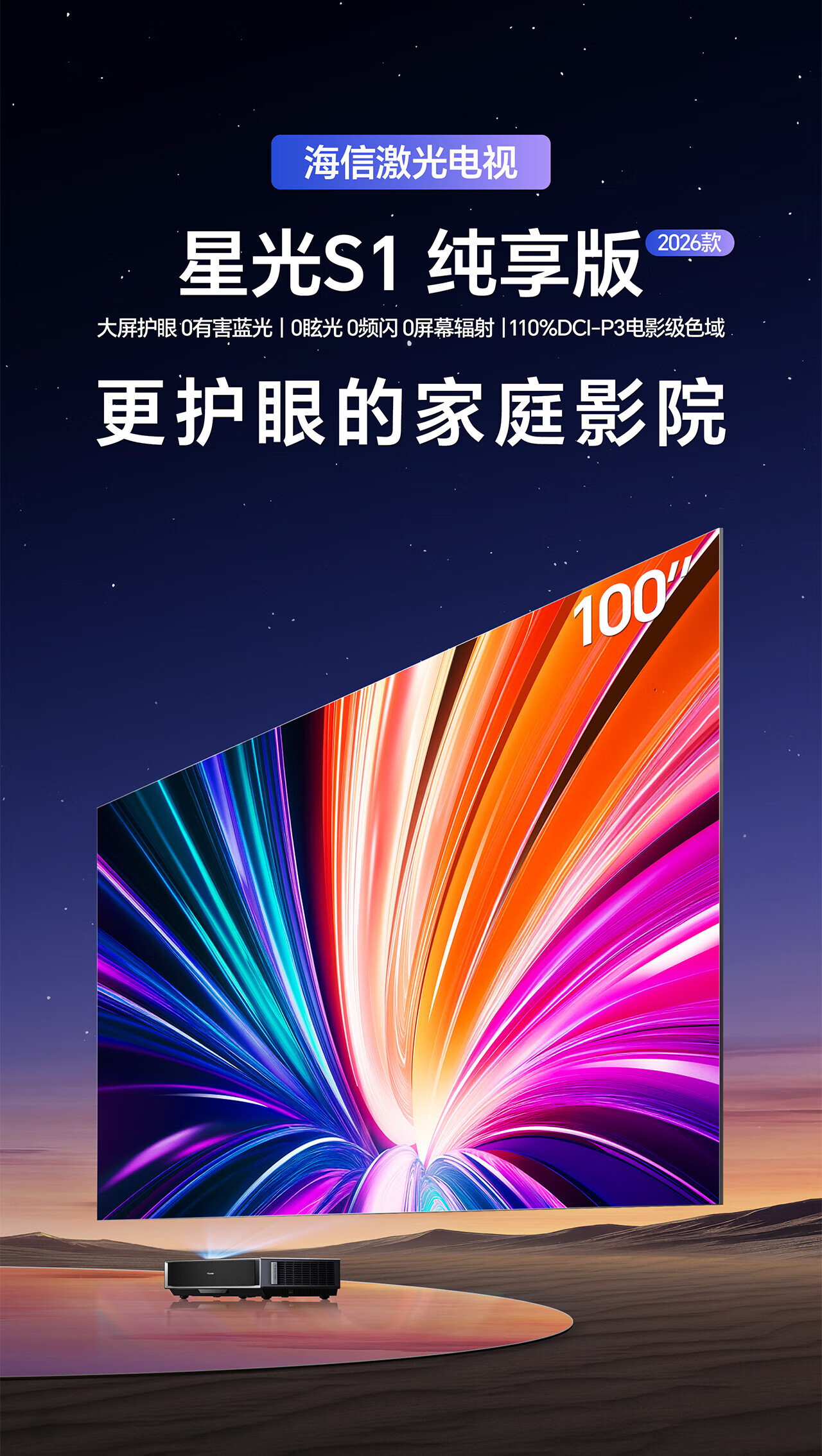 海信璀璨海信激光电视 星光S1 纯享版2026款 100英寸 家庭影院 大屏护眼 电影院同源技术 以旧换新 85-100 100英寸