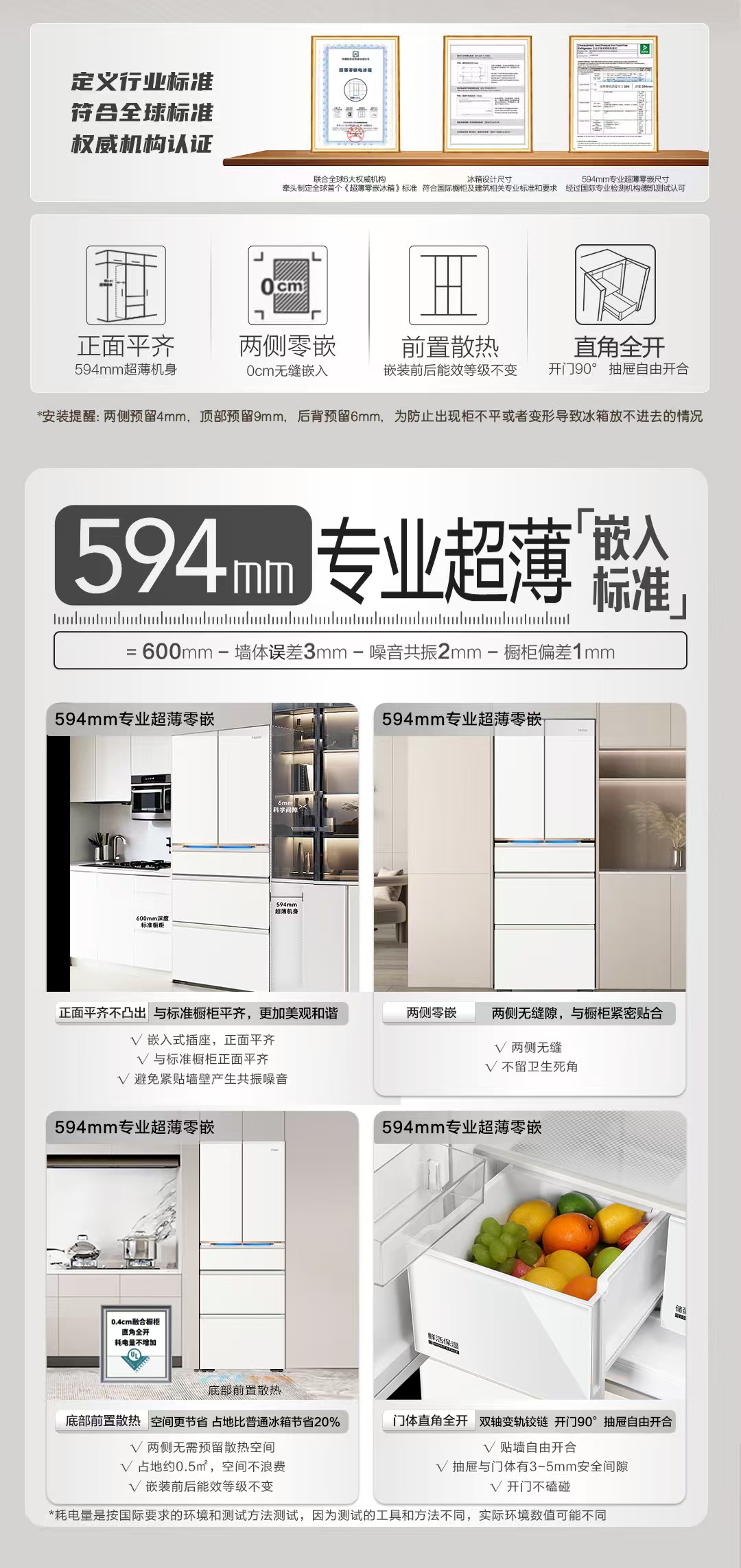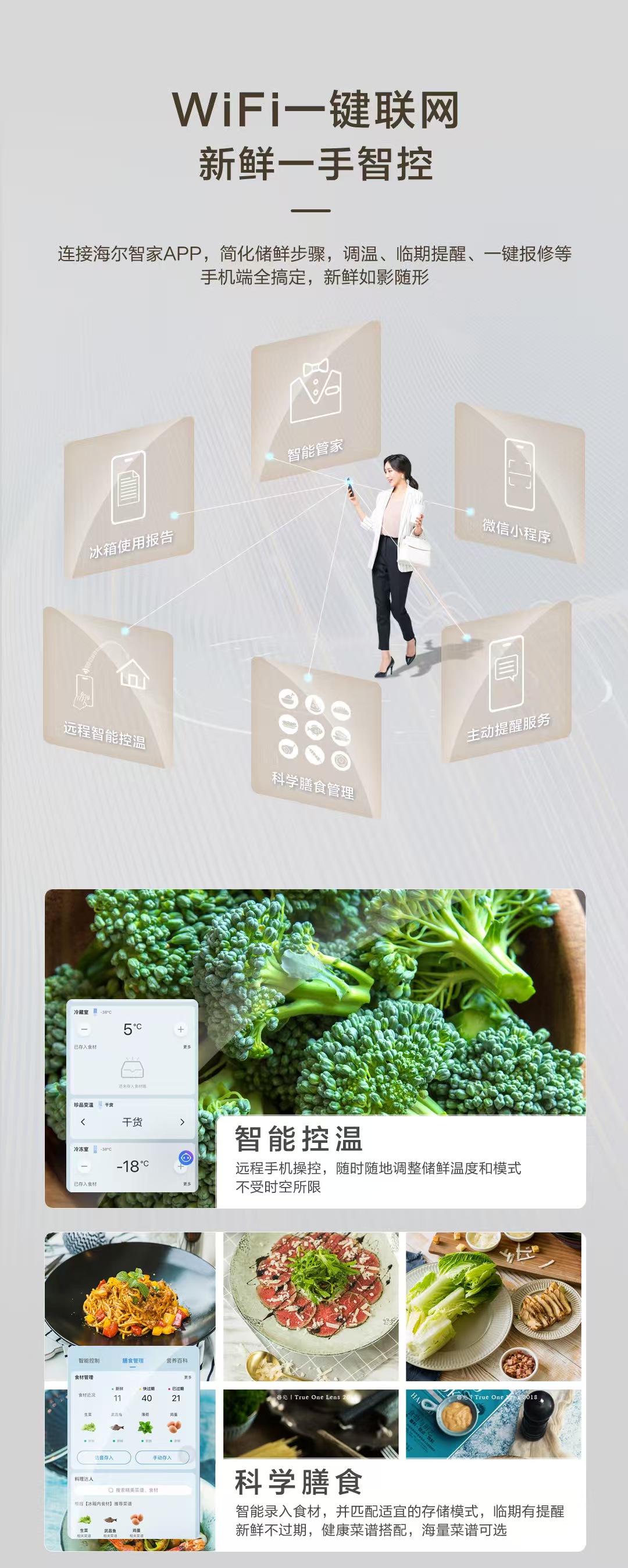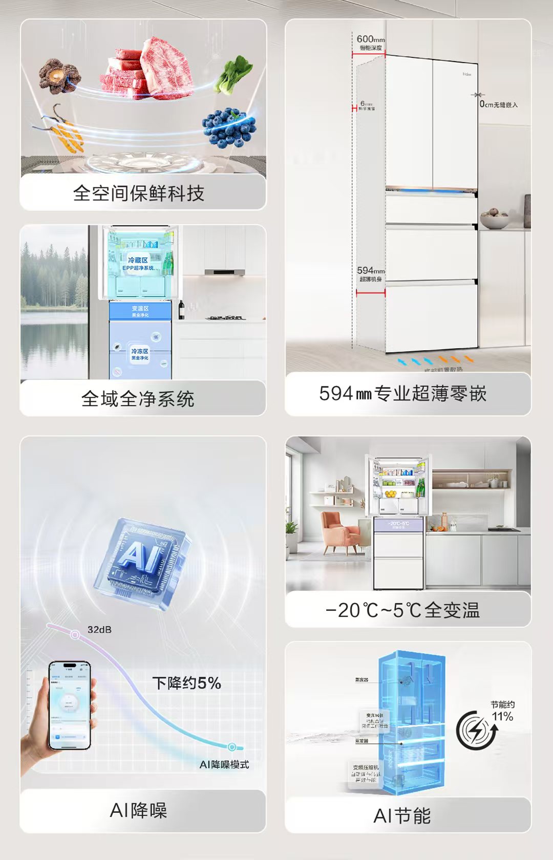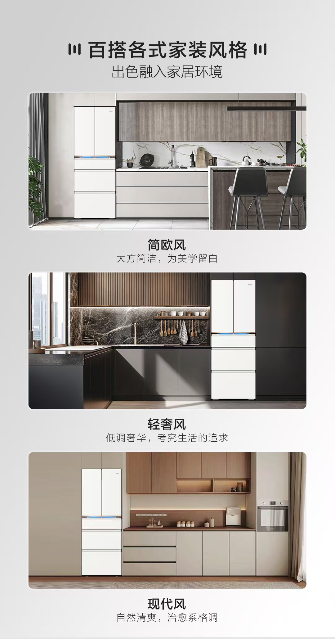 山茶花-海尔冰箱BCD-418WGHMD1BY7U1 全空间保鲜科技 594mm专业超薄零嵌 全温区变温,-20℃~5℃每度可调 多重杀菌,冷藏EPP超净系统,人感把手灯 AI智慧节能 32分贝低噪
