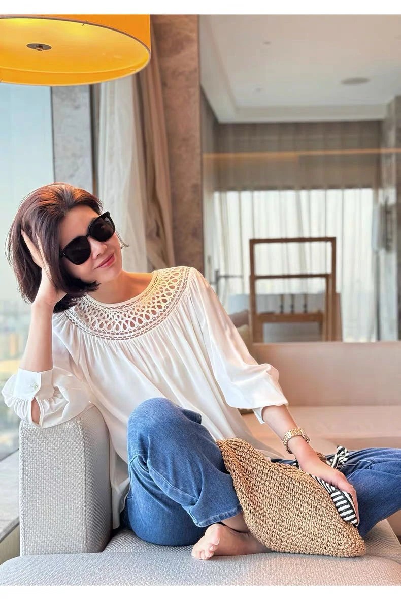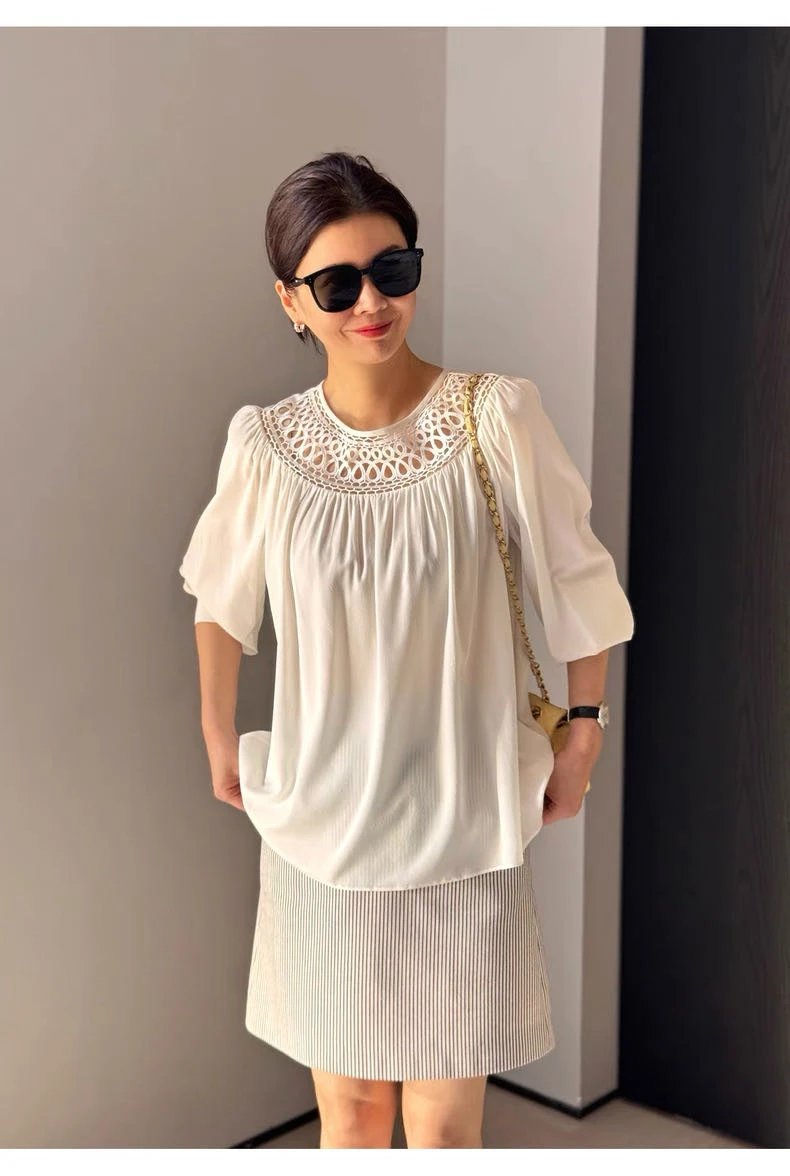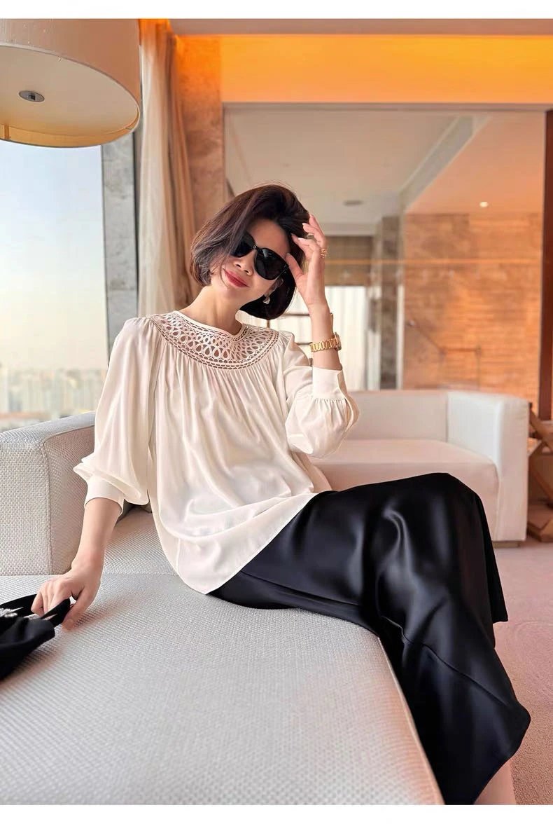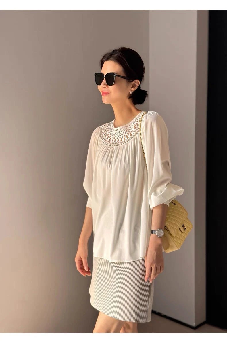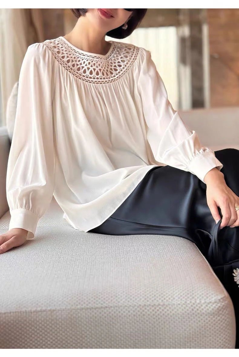 “邂逅优雅”气质开挂神器来啦!这件镂空桑蚕丝衬衫,简直是优雅代名词