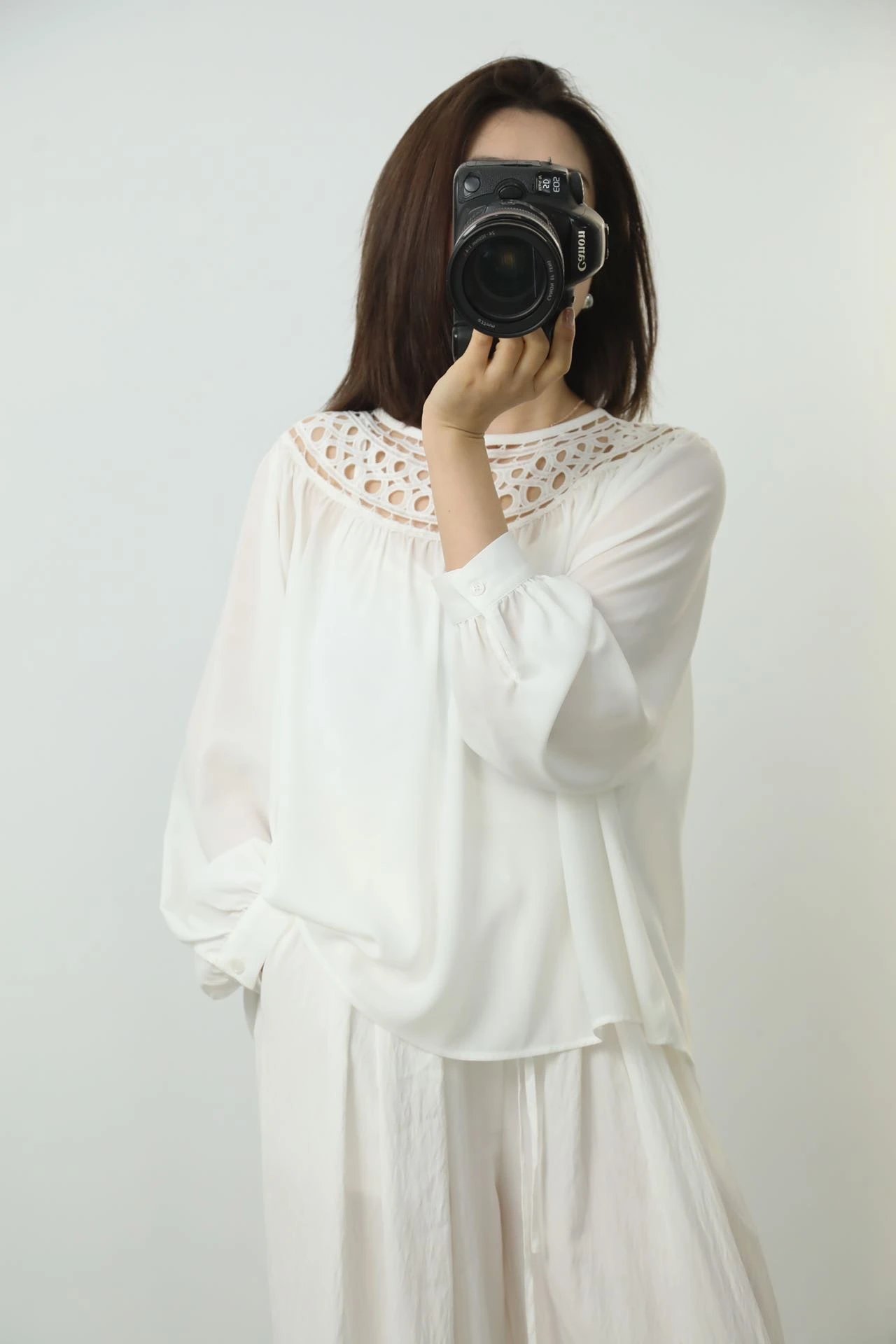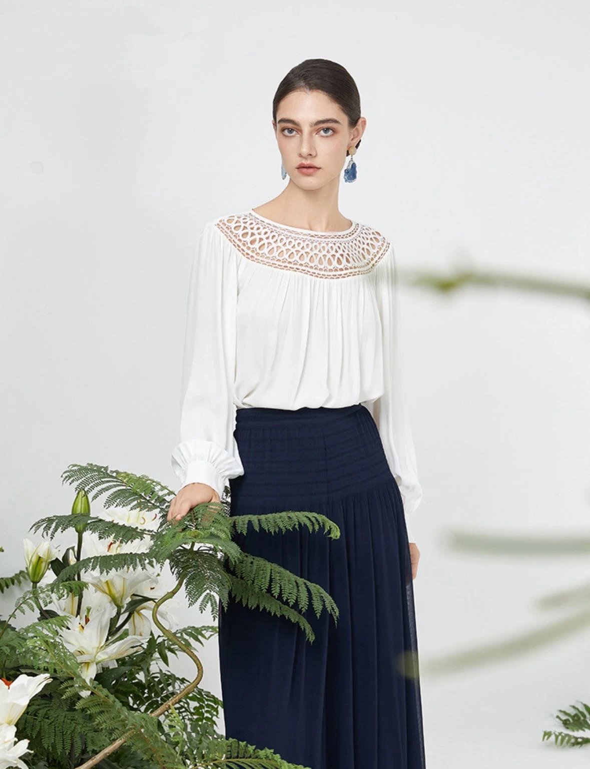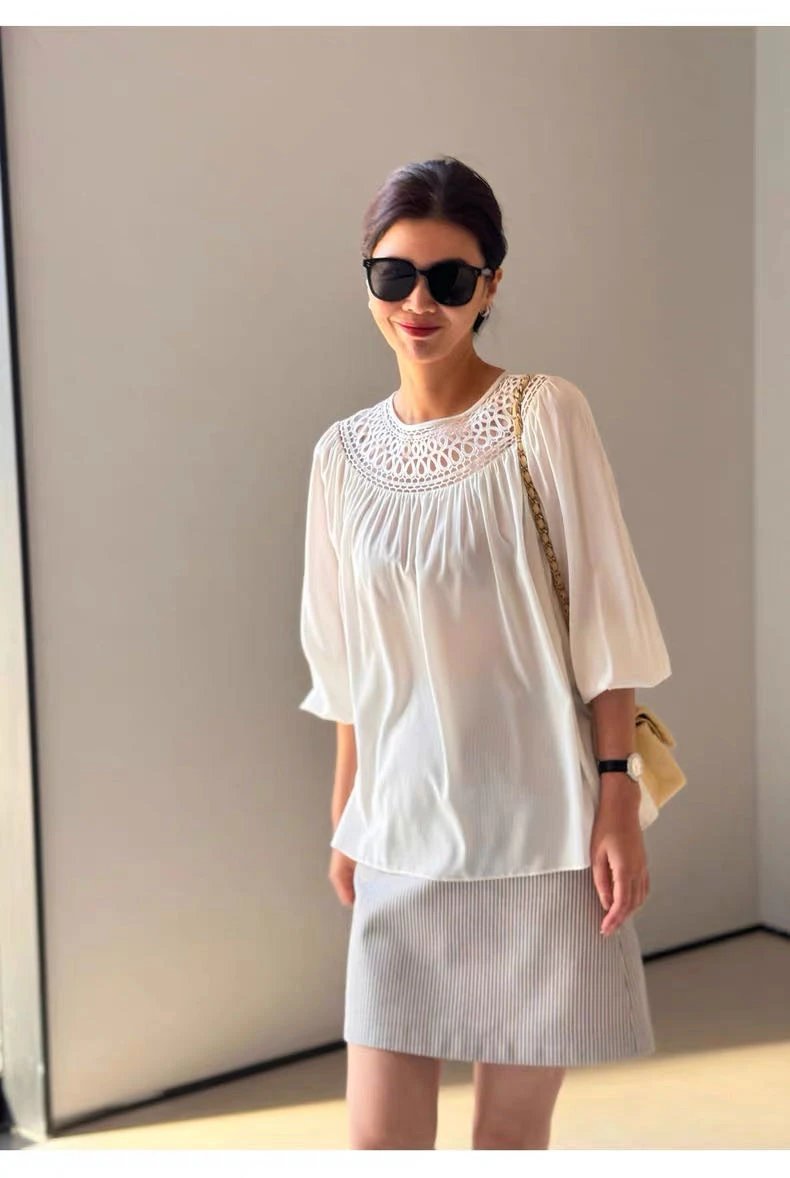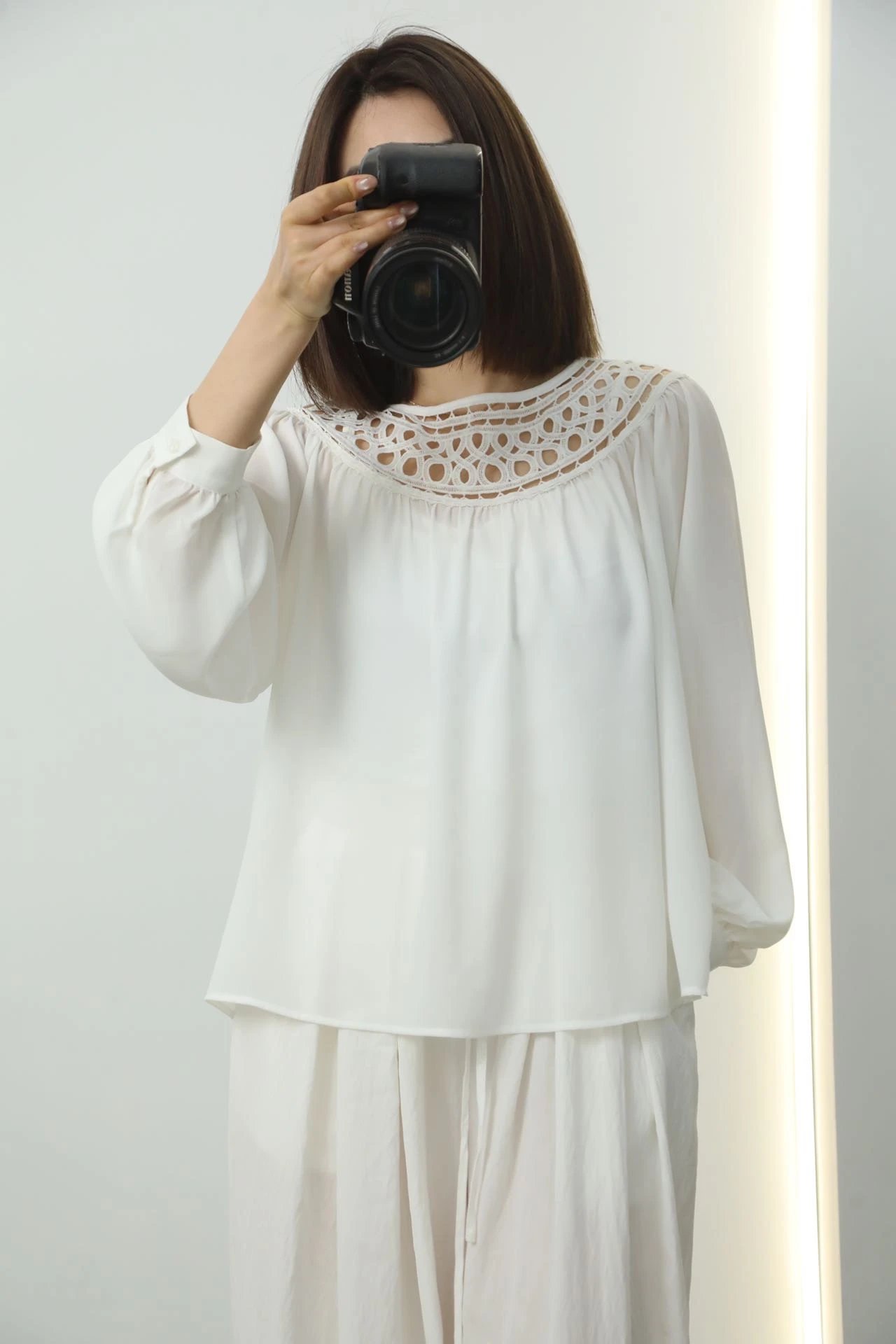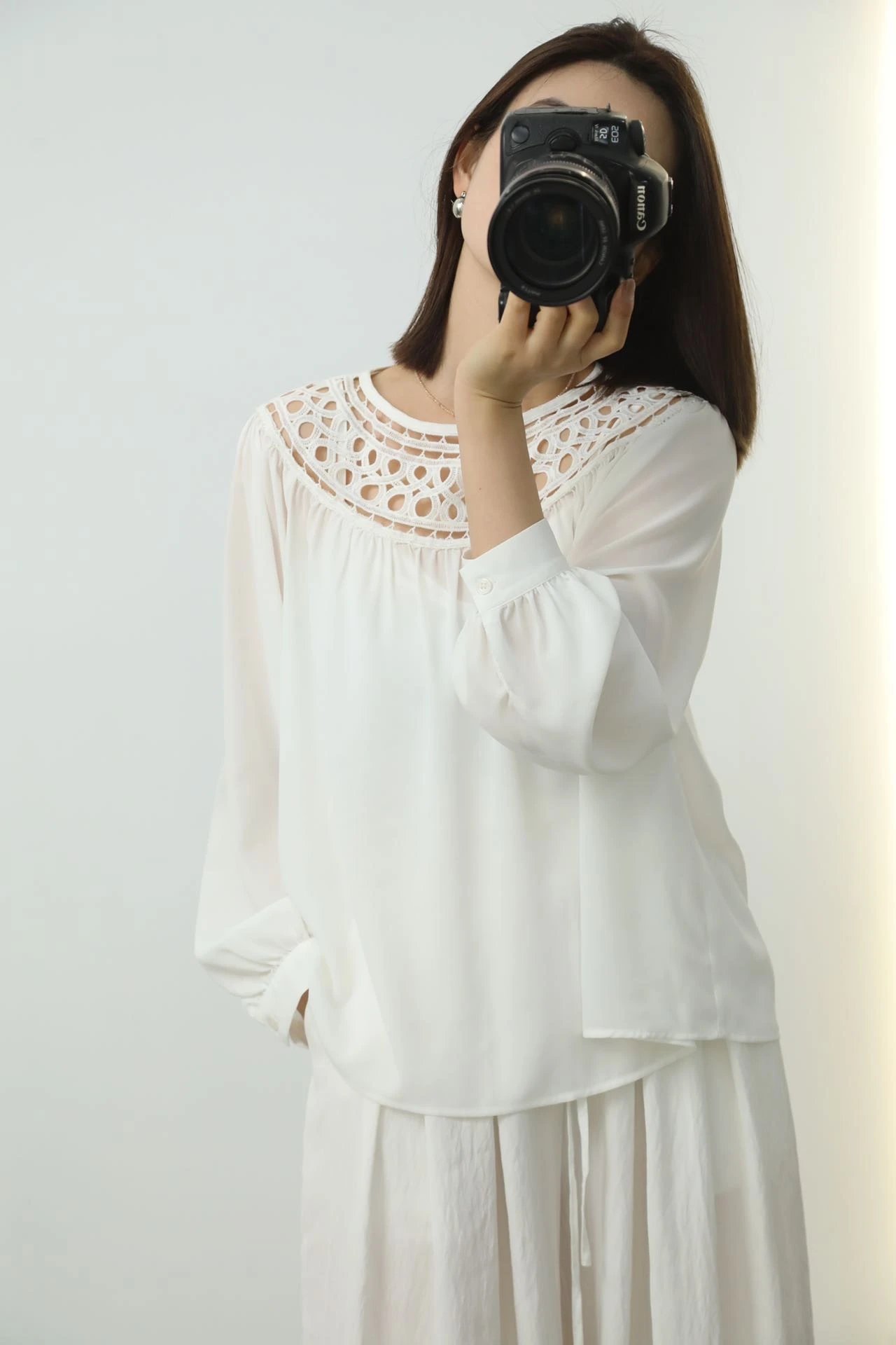 “邂逅优雅”气质开挂神器来啦!这件镂空桑蚕丝衬衫,简直是优雅代名词