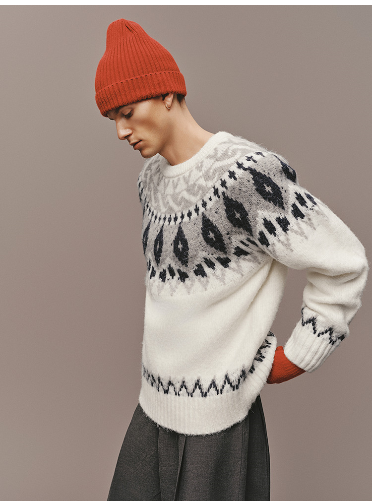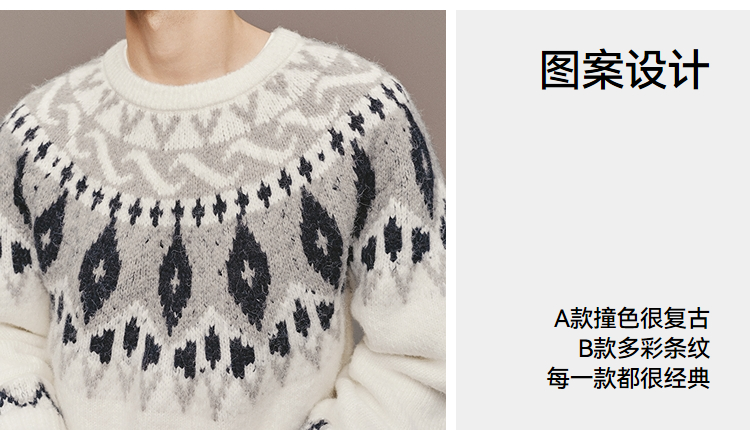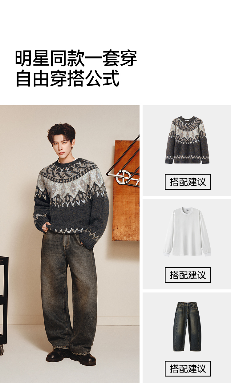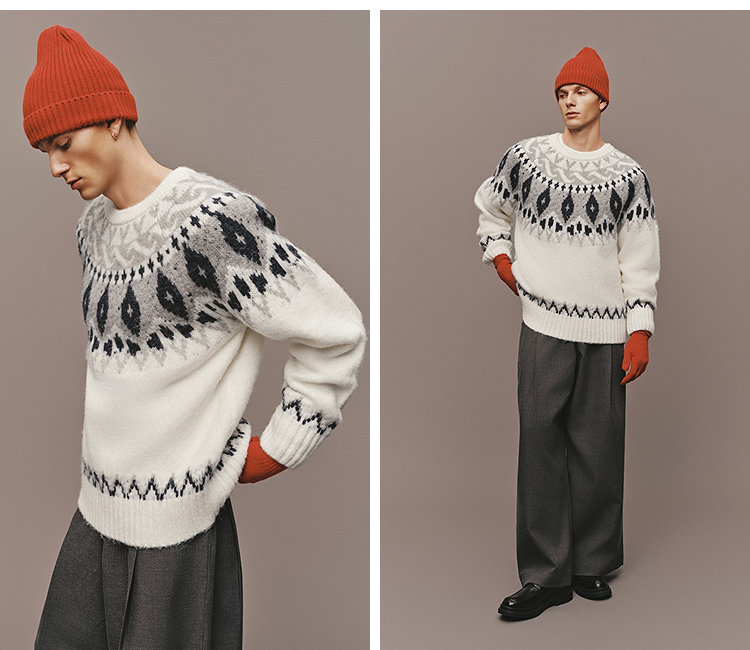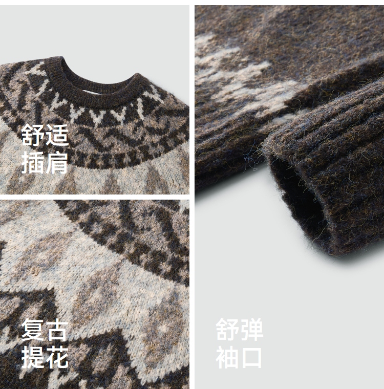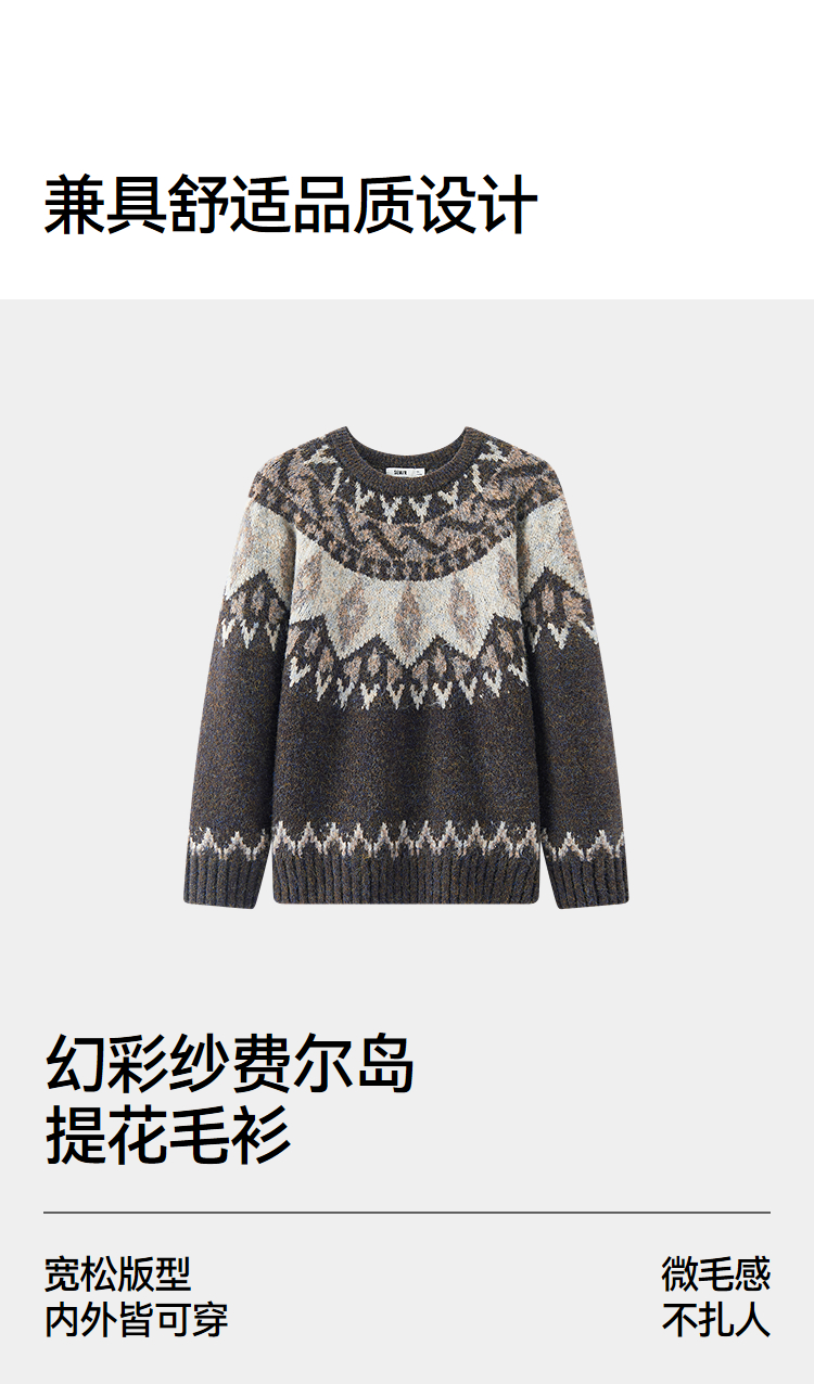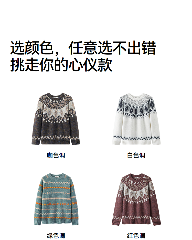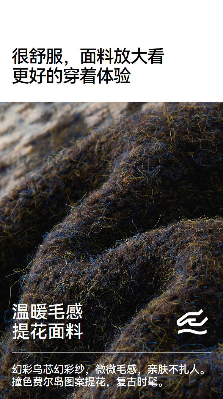 森马毛衫男冬季幻彩纱费尔岛提花针织衫2025新款情侣复古套头毛衣