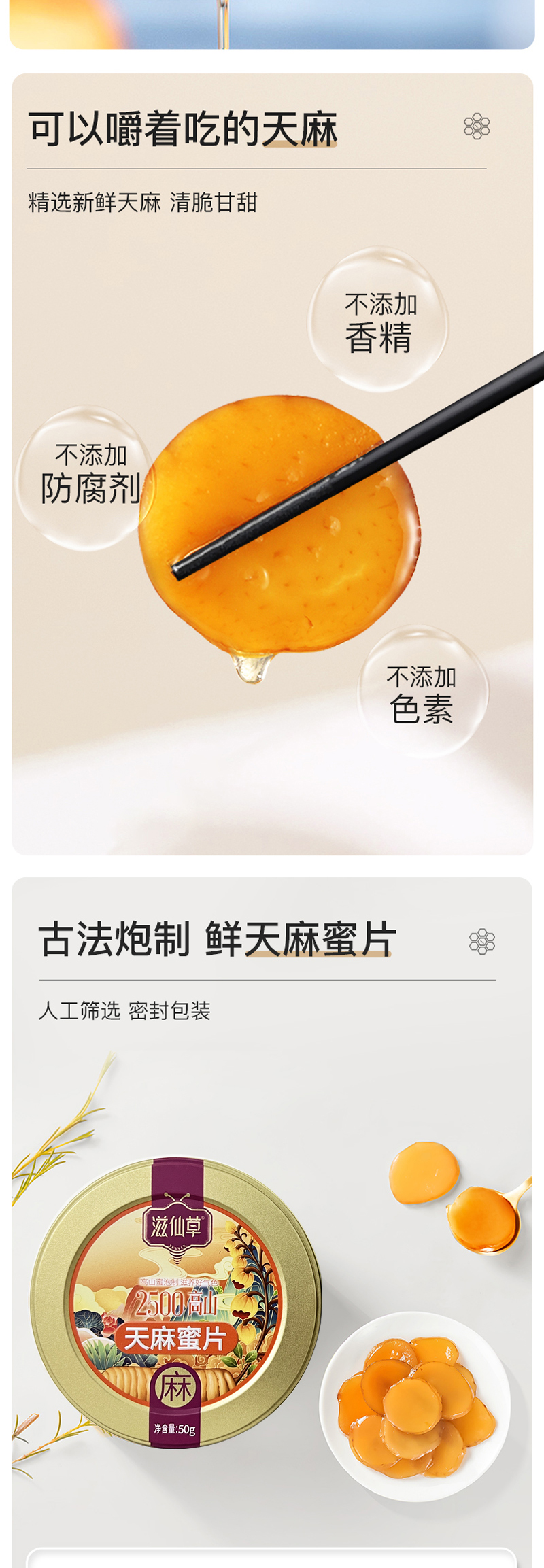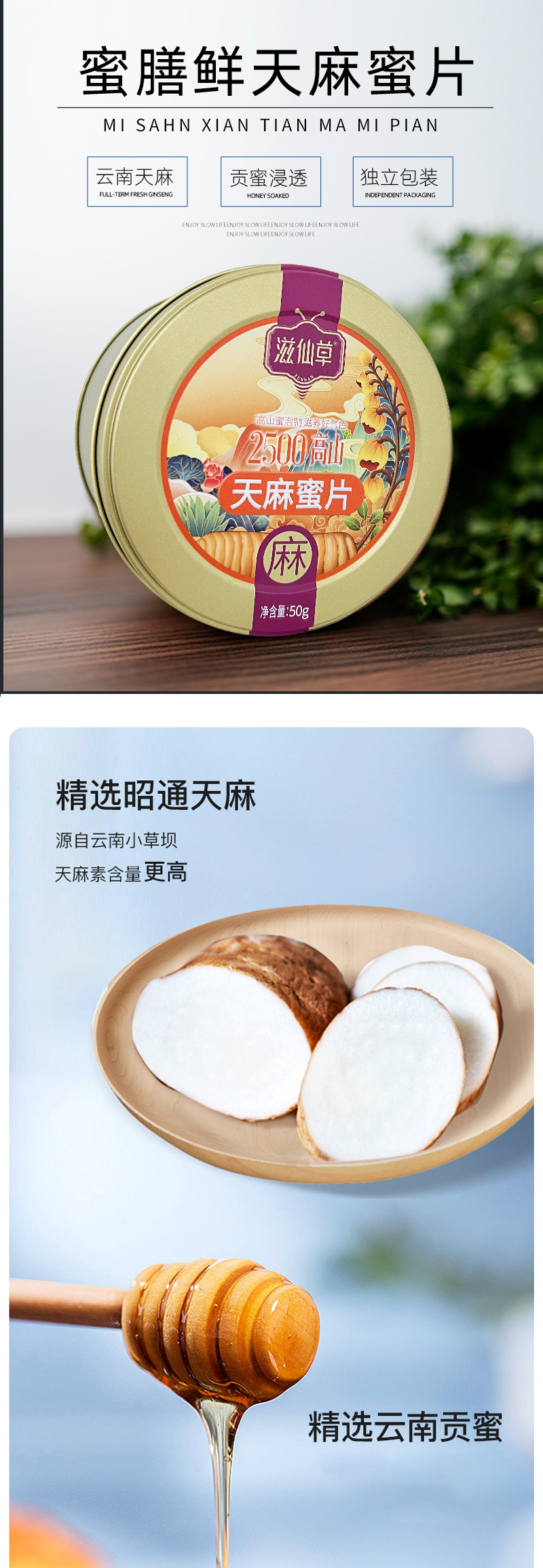滋仙草来自云南昭通的天麻蜜片50g/罐
