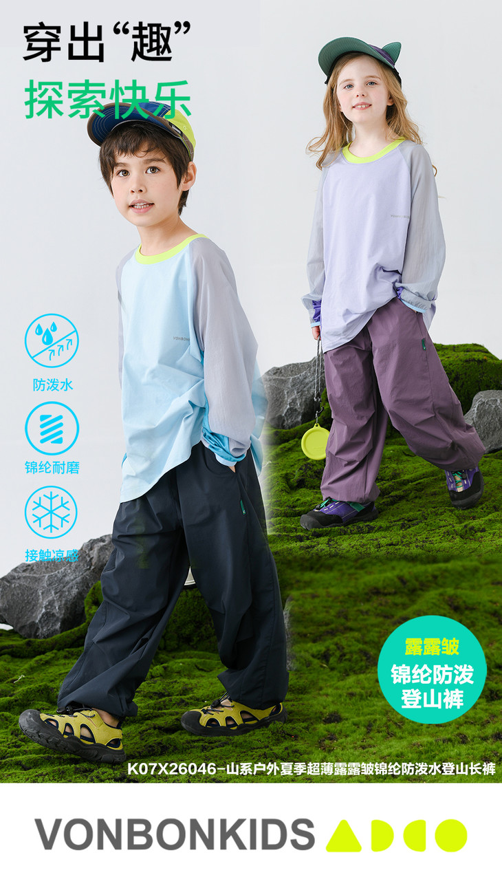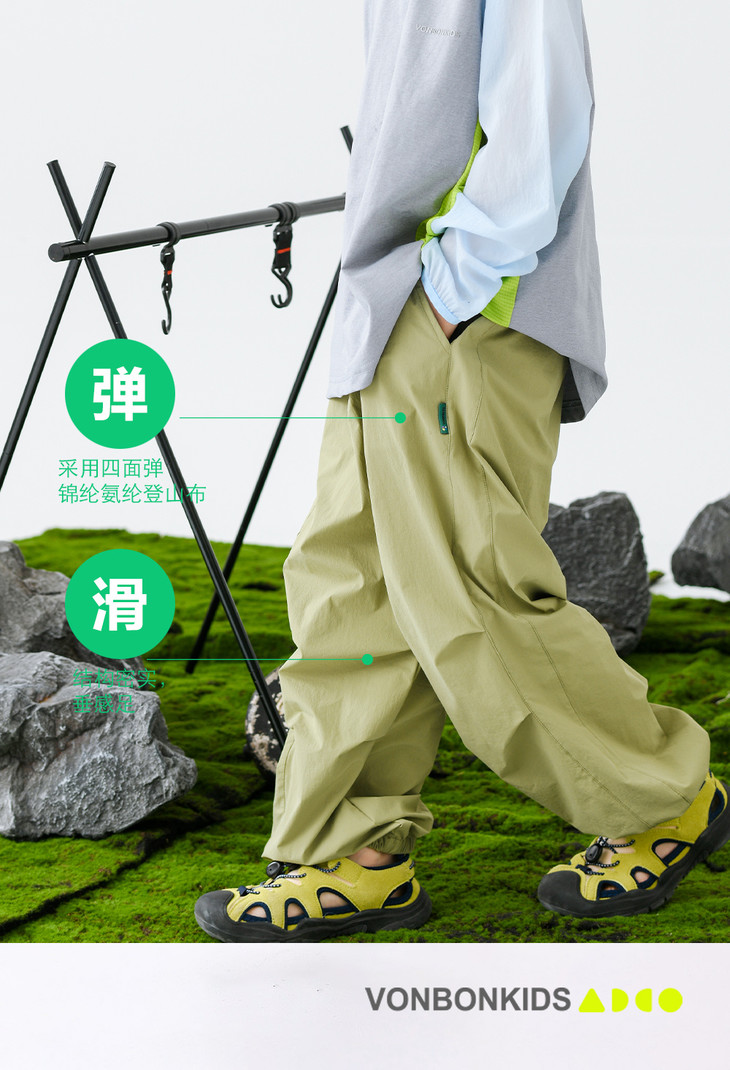 🌟给娃选夏季裤子,舒服、透气、实用真的太重要啦✨这款【 vonbonkids 山系户外夏季超薄露露皱锦纶防泼水登山长裤K07X26046款】,真的挖到宝~