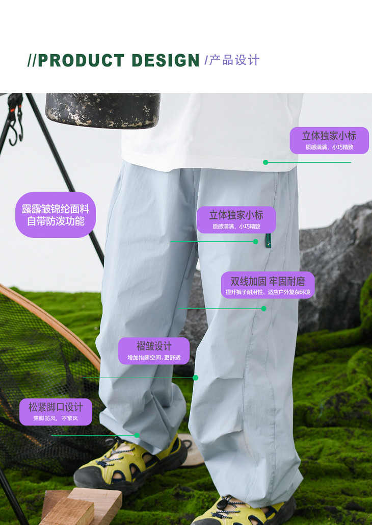 vonbonkids 山系户外夏季超薄露露皱锦纶防泼水登山长裤K07X26046款