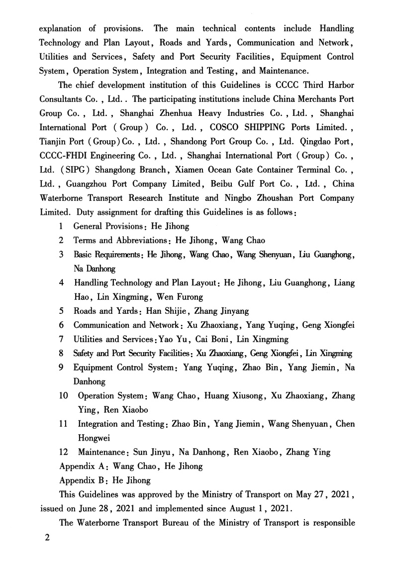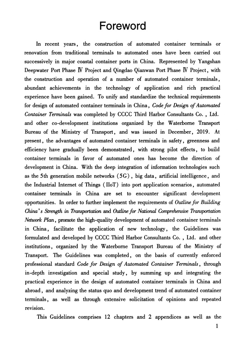 Guidelines for the Construction of Automated Container Terminals(JTS/T 199-2021)《自动化集装箱码头建设指南》英文版
