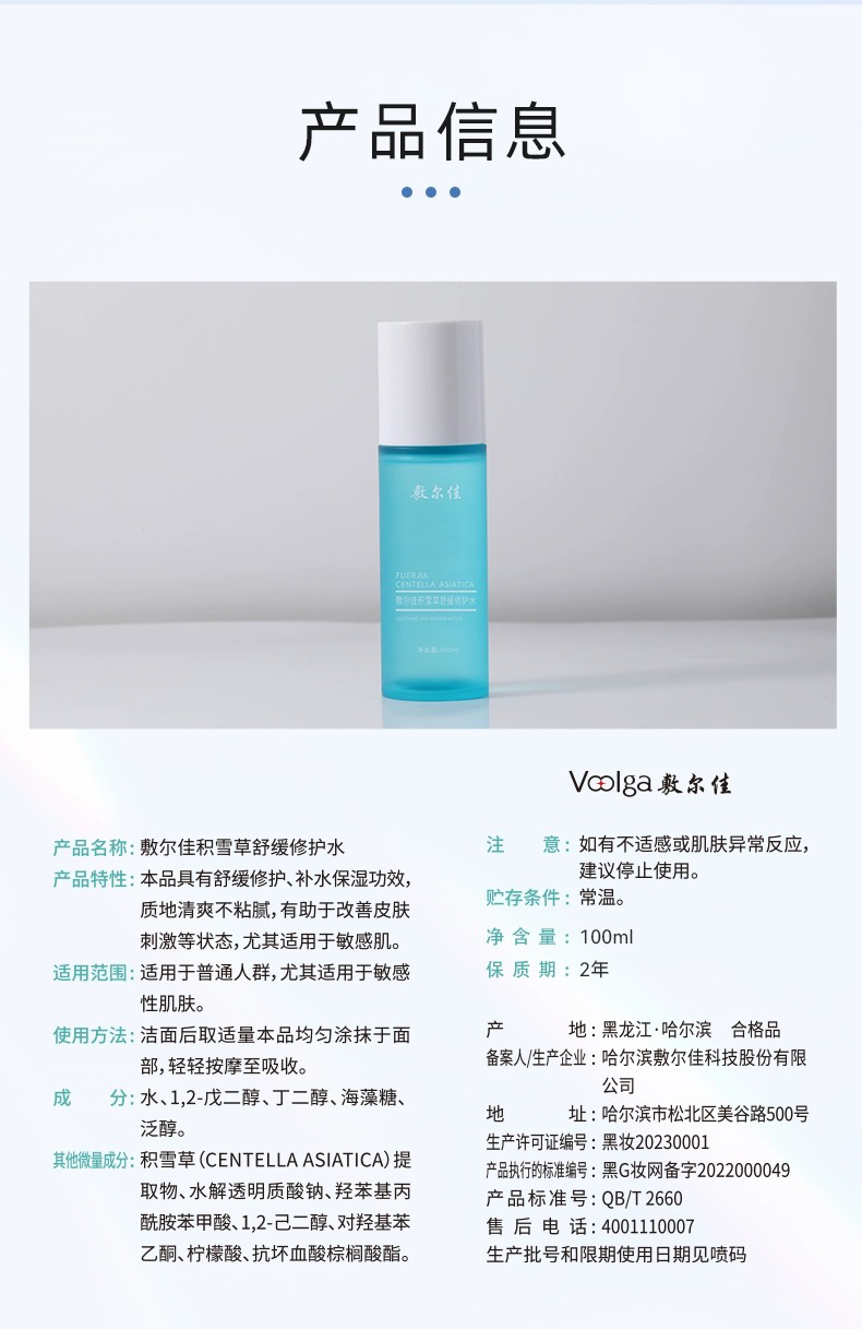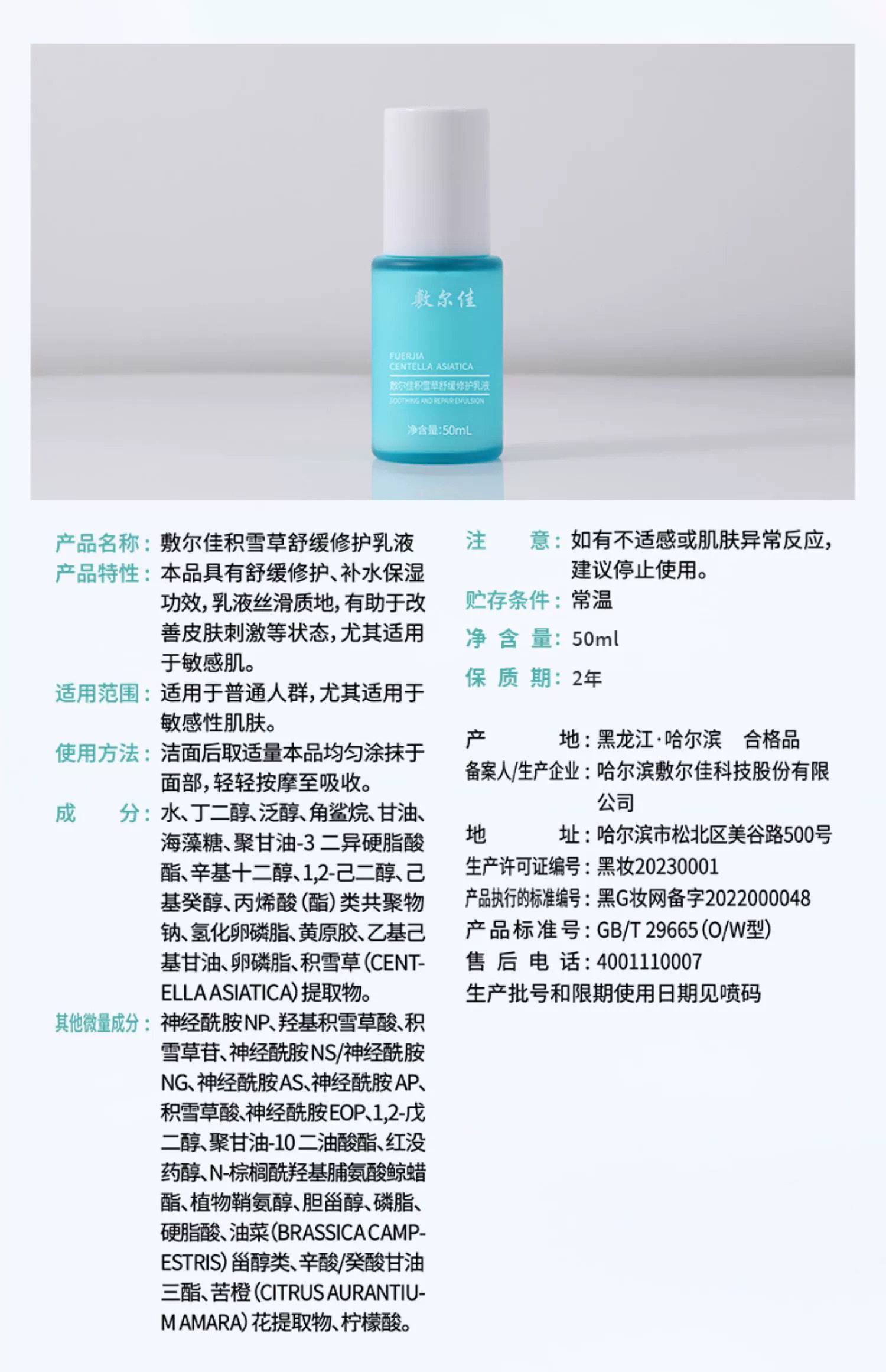 【敏感肌首选】敷尔佳 积雪草修护爽肤水/乳液 100ml+50ml