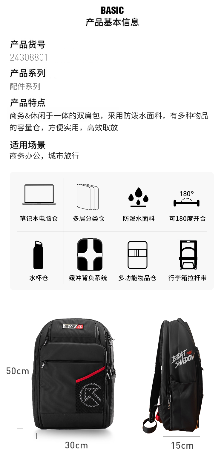 BigK 大K 多功能商务休闲双肩包 商务人士 城市出勤 防泼水